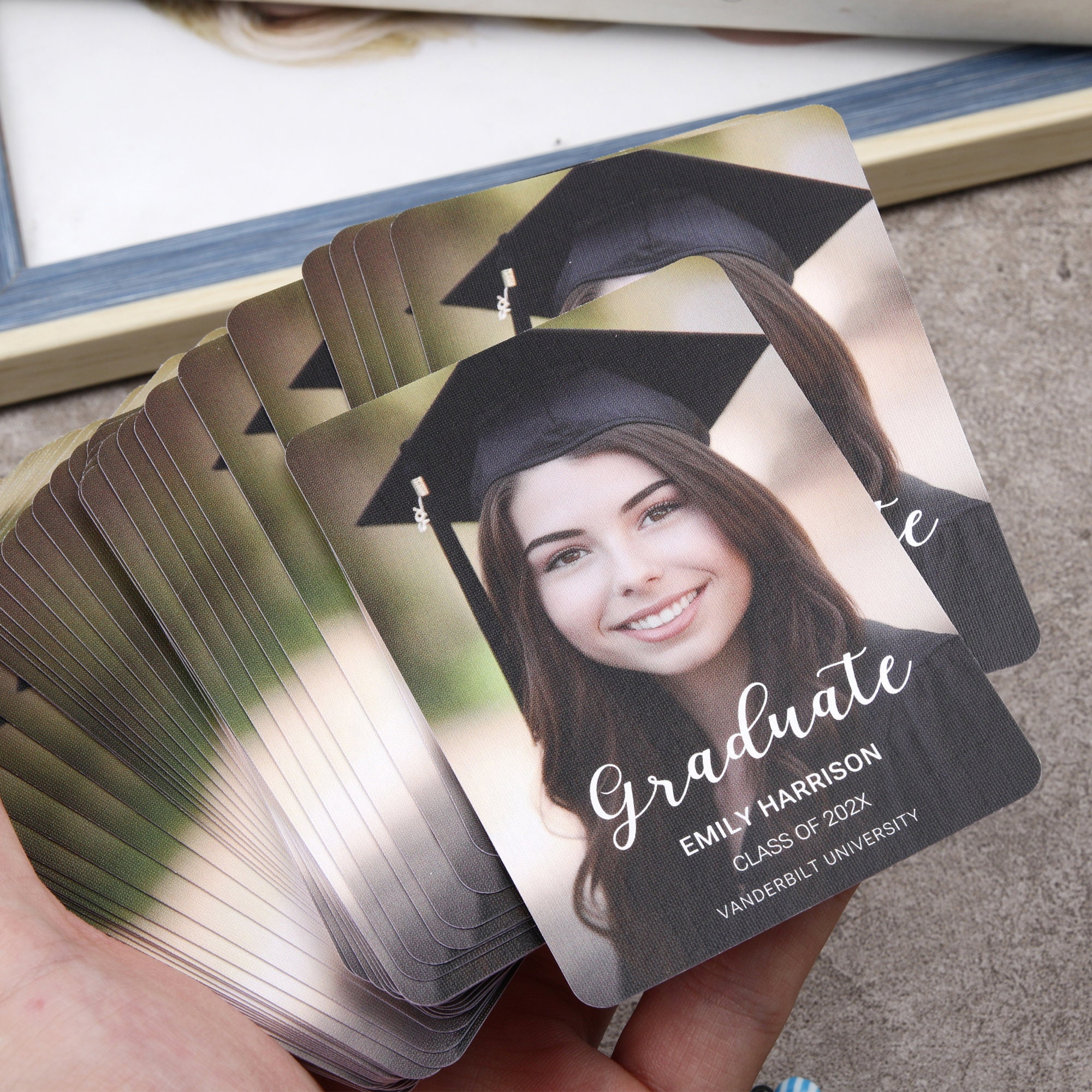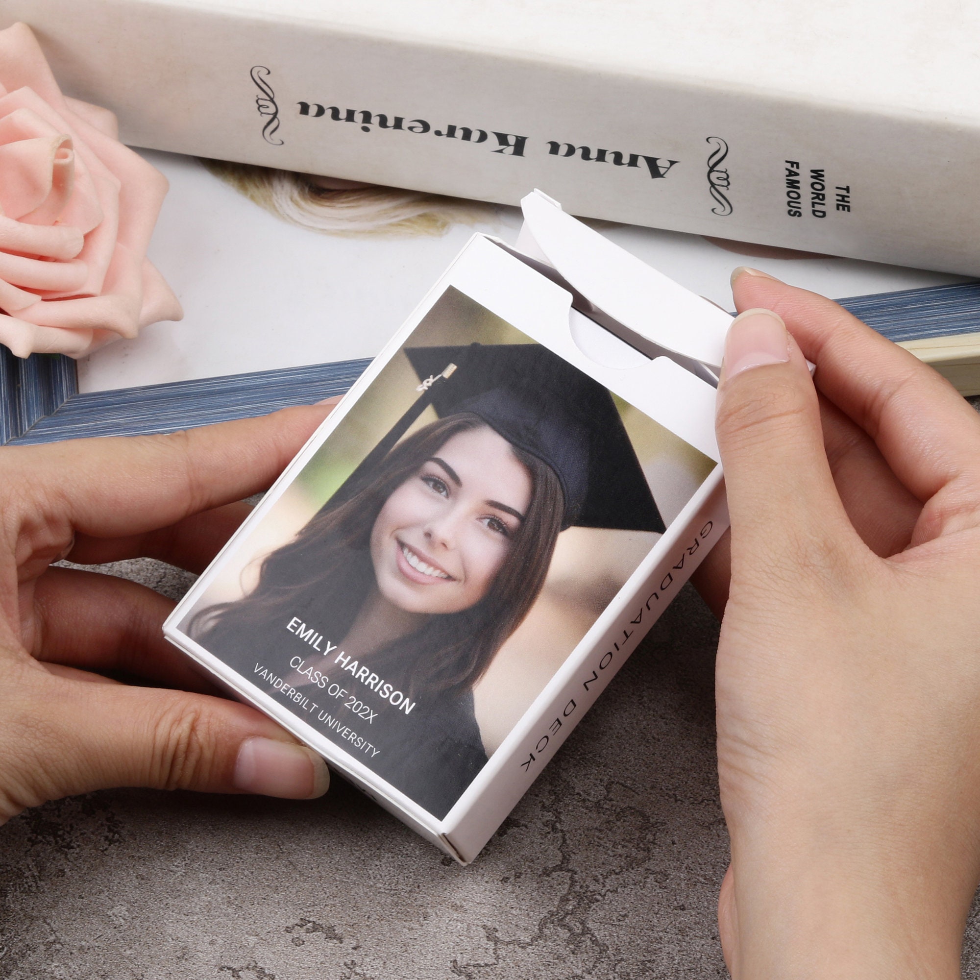 Commemorate the Class of 2025 with our personalized poker cards. Cherish graduation memories on the back, while writing heartfelt messages on the front. The perfect gift and guest book alternative for graduates!