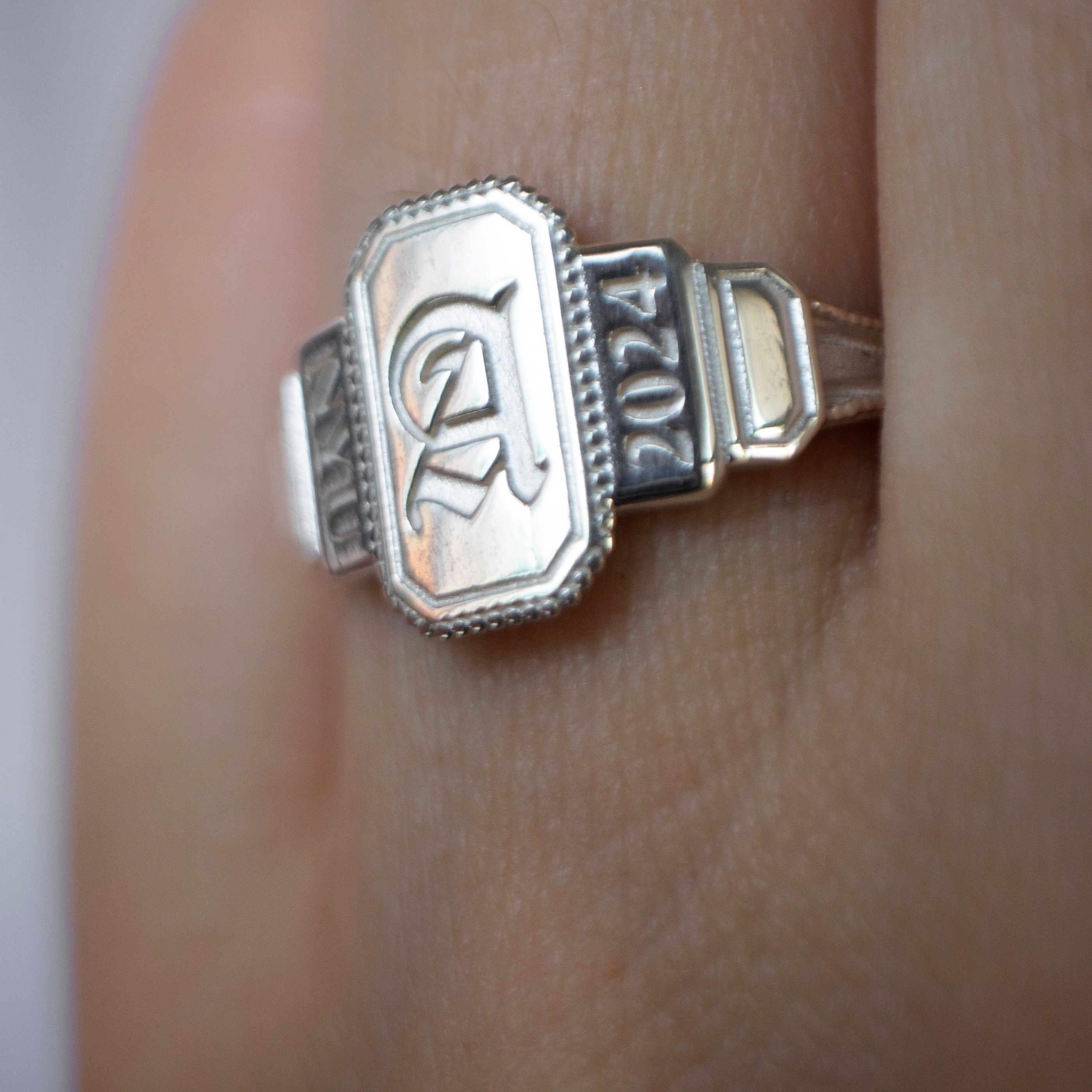 This vintage style signet ring is inspired the Art Deco style and is a perfect vintage-style graduation ring for high school or college grads! A truly stand-out ring to last forever - and makes a perfect gift!
