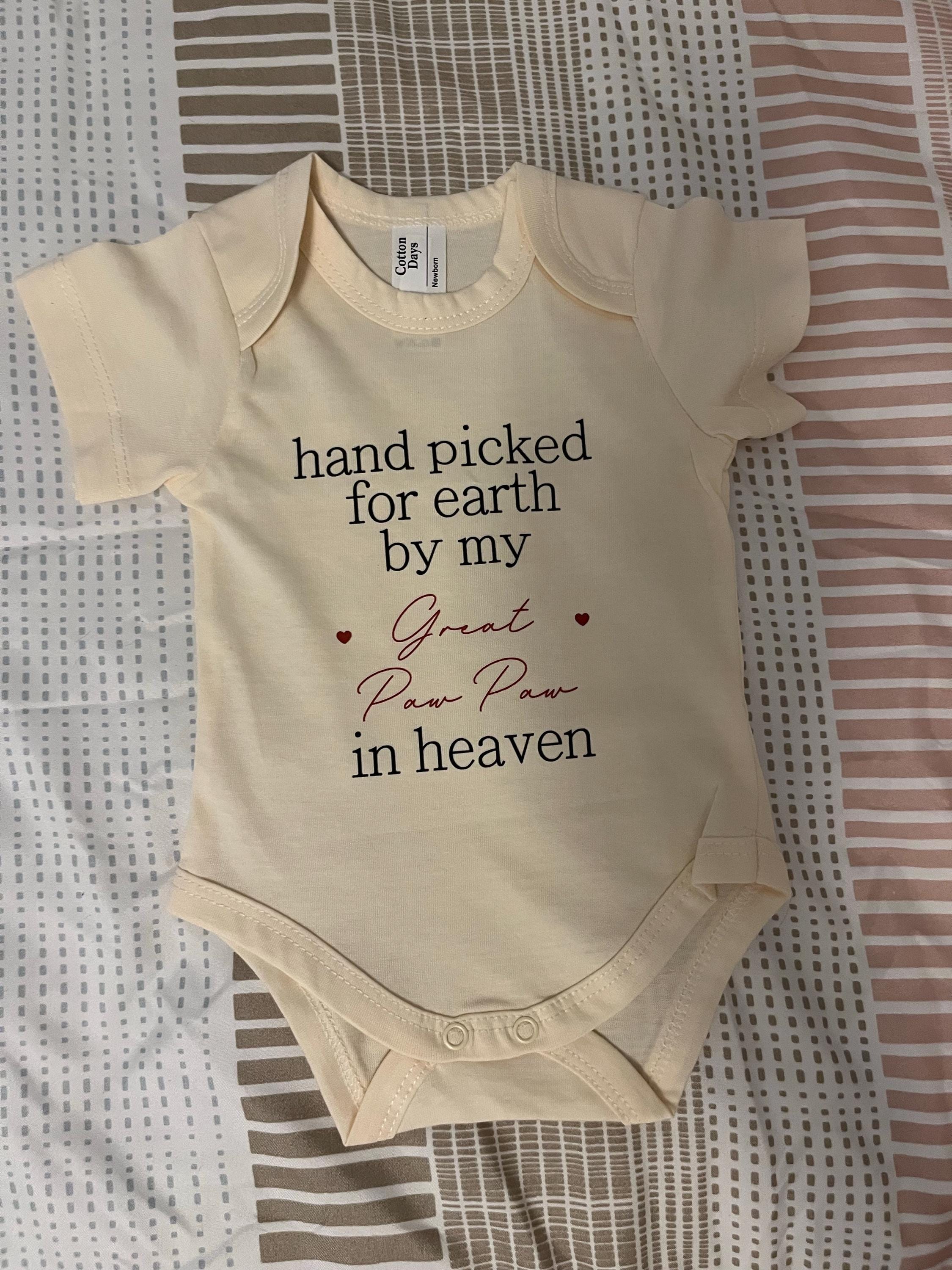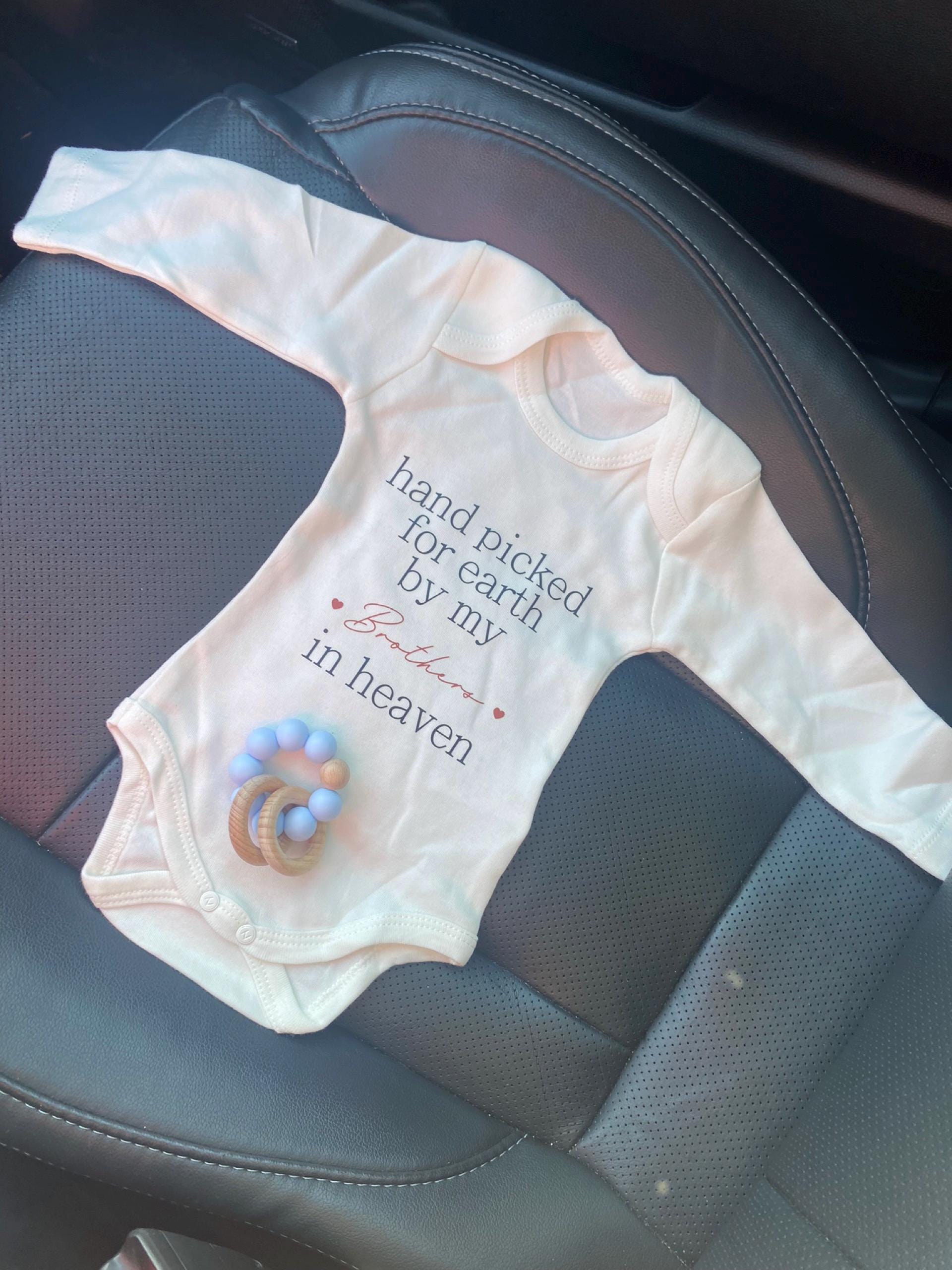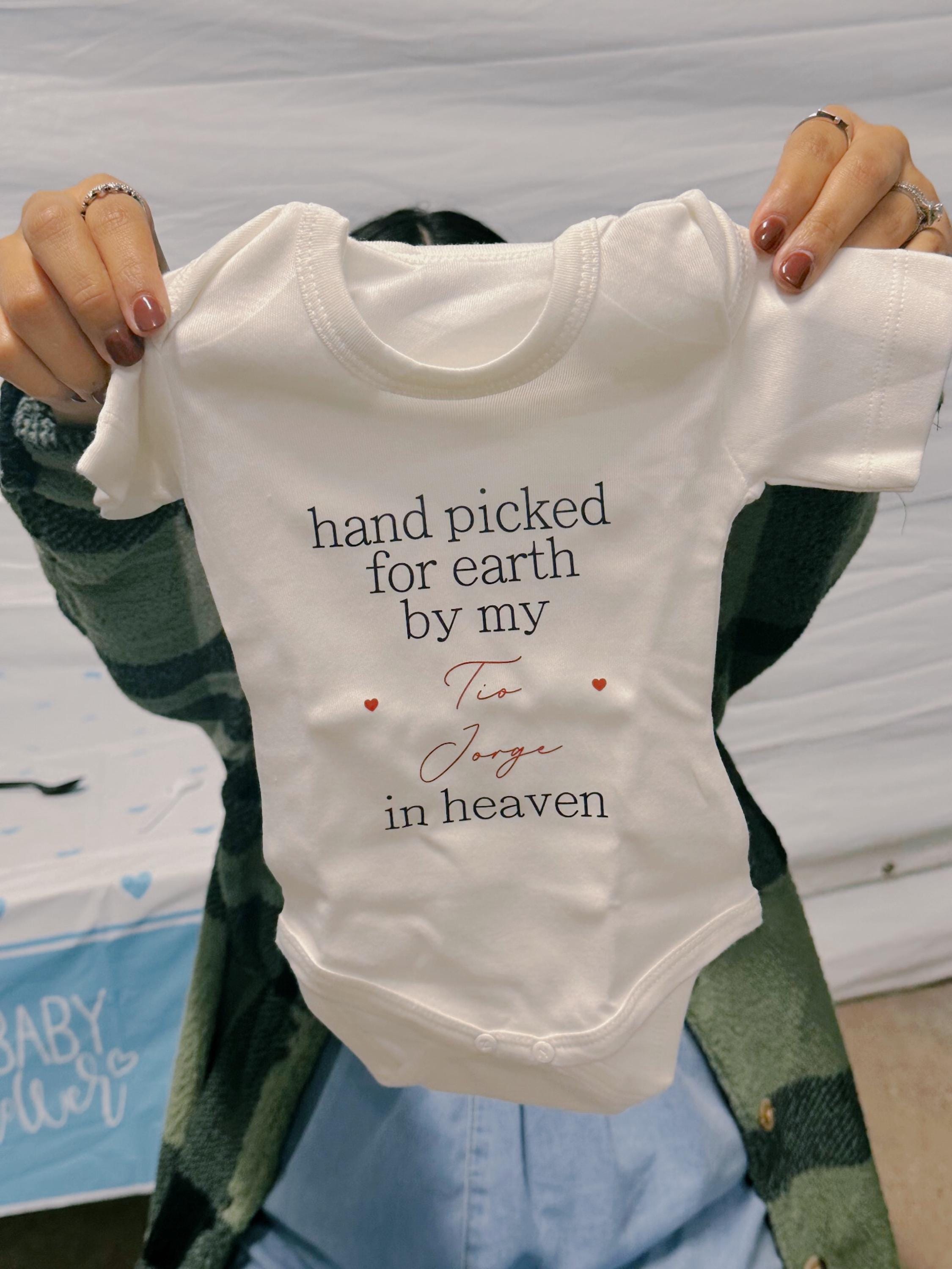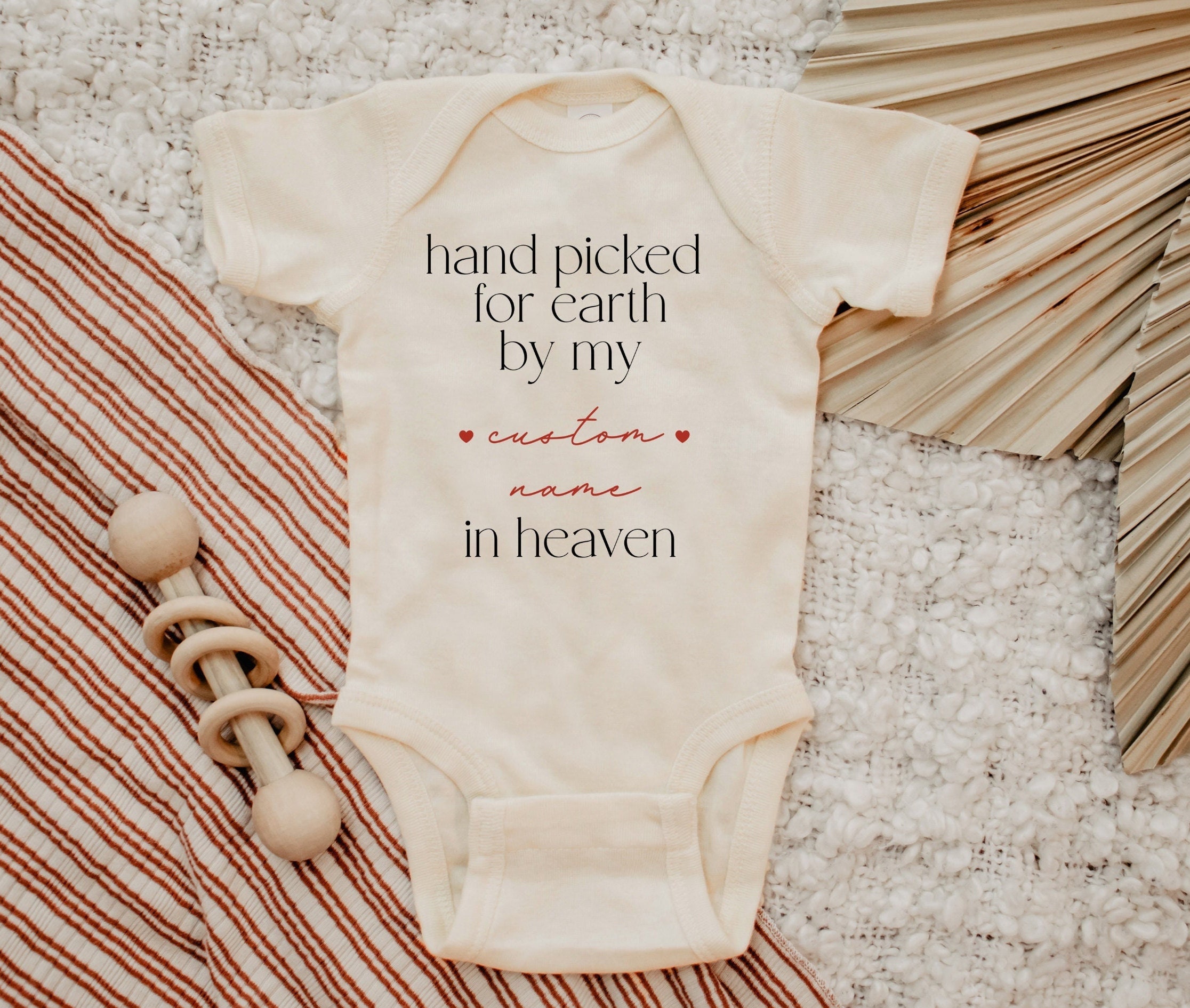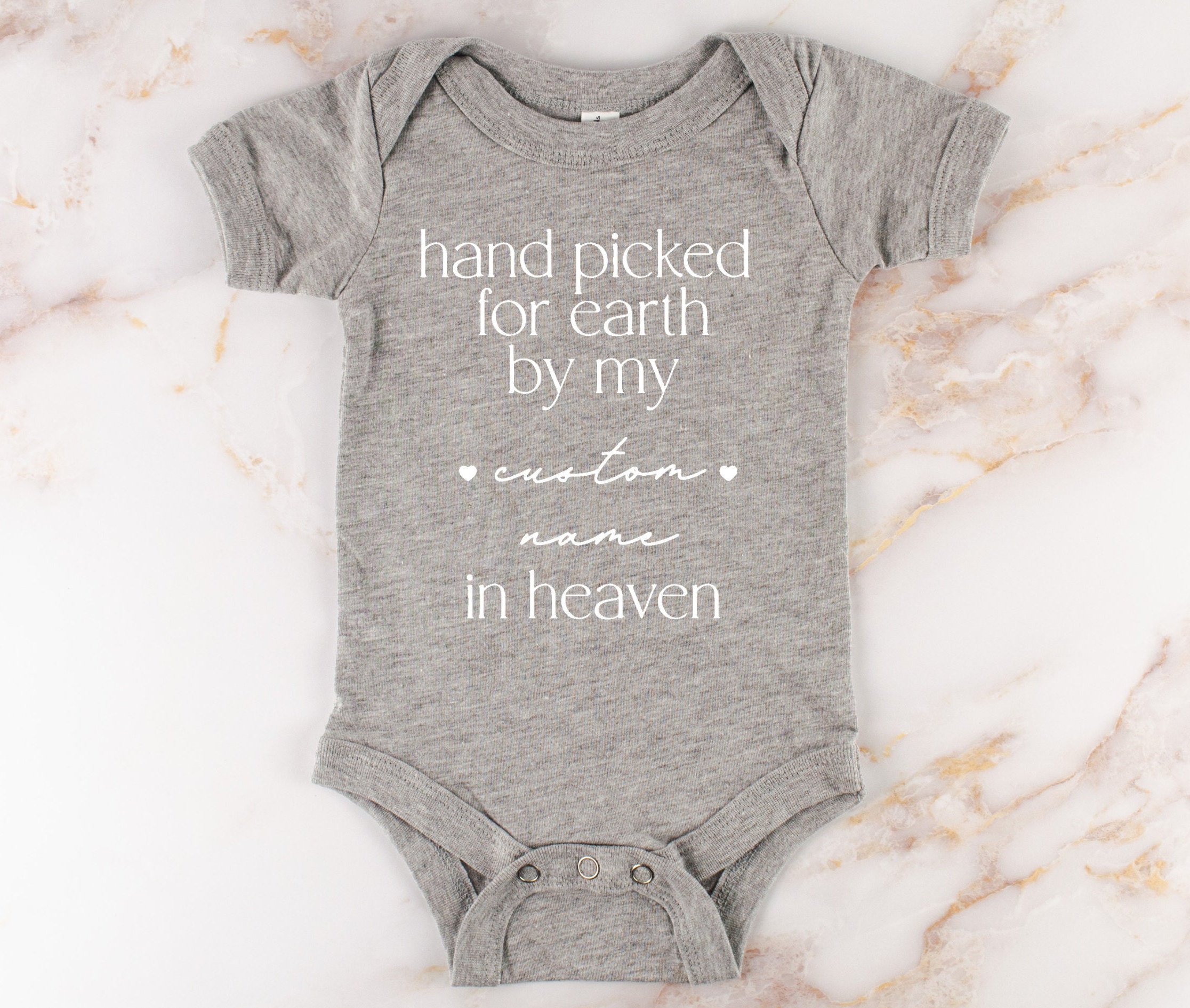 Handpicked For Earth Custom Onesie®, In Heaven Onesie®, Baby Announcement Onesie®, Custom Baby Onesies®, Baby Shower Gift, Baby In Heaven, New Baby Gift, New MoM Gift, Pregnancy Reveal, Coming Home Outfit, Baby Boy Clothes, Baby Girl Clothes