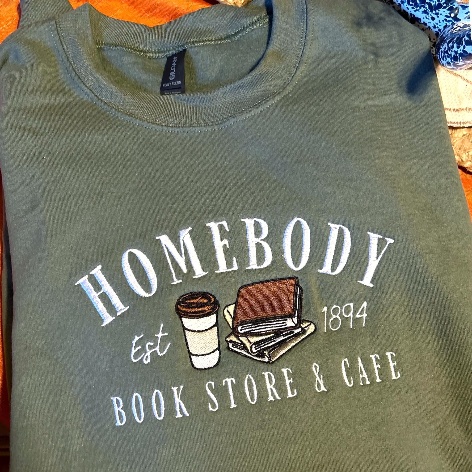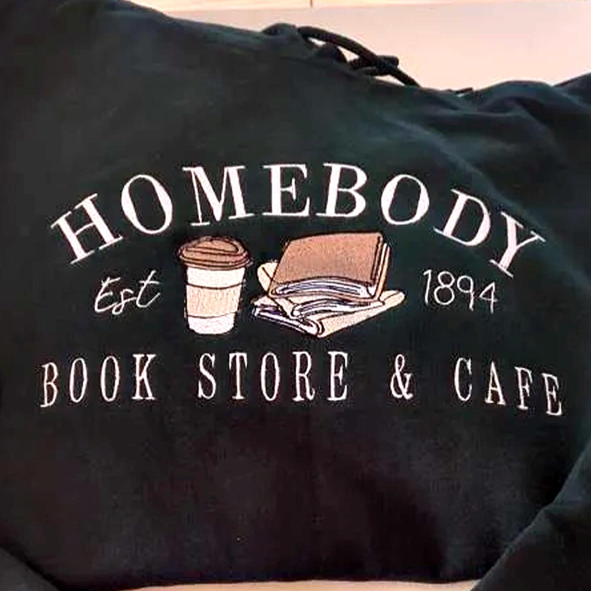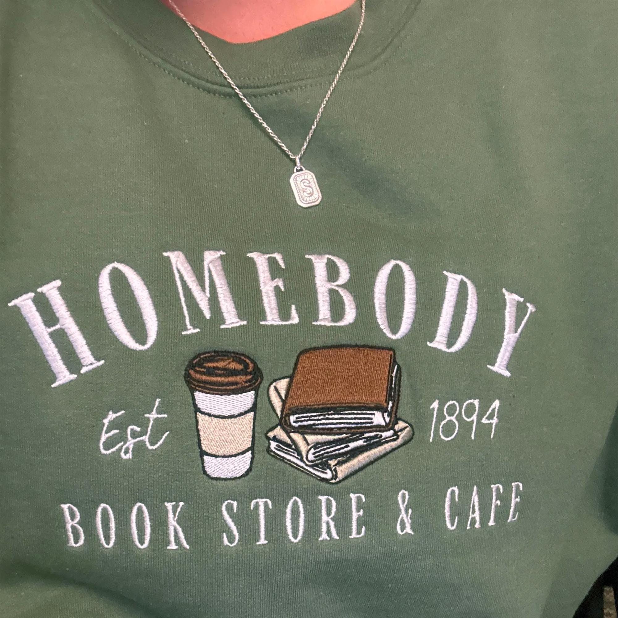 Cozy up in our Homebody Book Store & Cafe Embroidered Sweatshirt, perfect for quiet reading sessions, coffee dates, or your next book club meet-up. Designed for book lovers and proud bookworms, this soft crewneck pairs classic style with literary charm. A thoughtful book club gift or everyday favorite for anyone who finds comfort between the pages and a warm cup in hand.