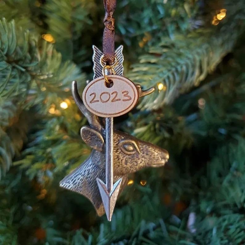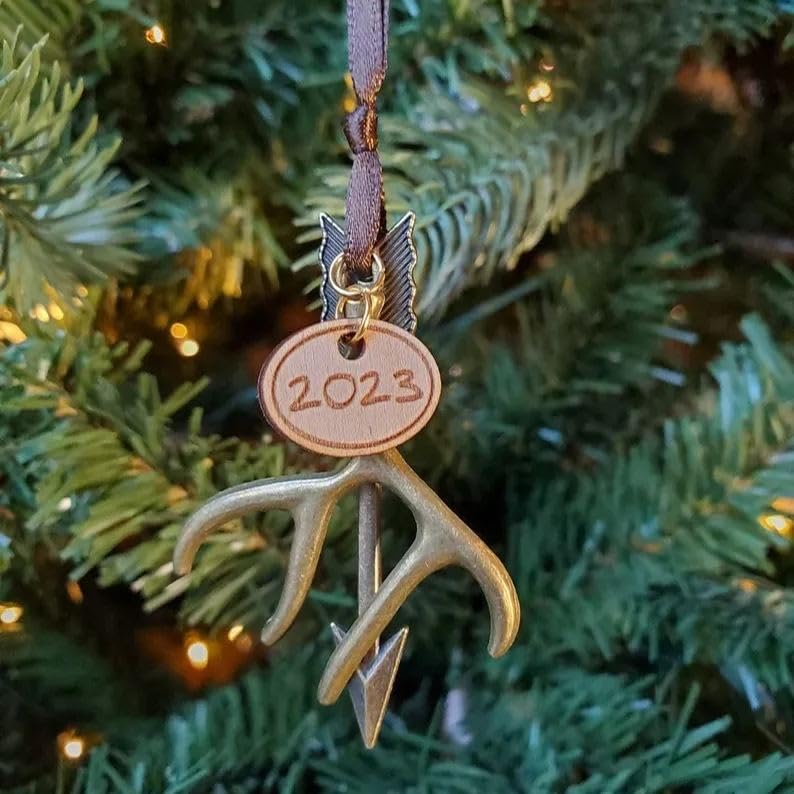 Christmas Tree Ornament ---- Deer Hunt Ornament are made from bronze toned deer head and bronze or silver toned arrow charms and an accent color ribbon with which to hang it from the Christmas tree! Elevate your holiday décor with this one-of-a-kind Christmas tree ornament.