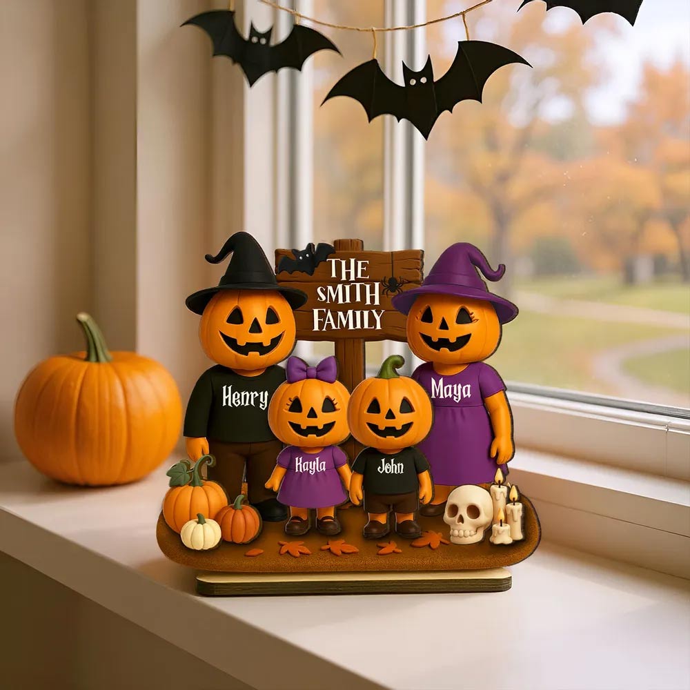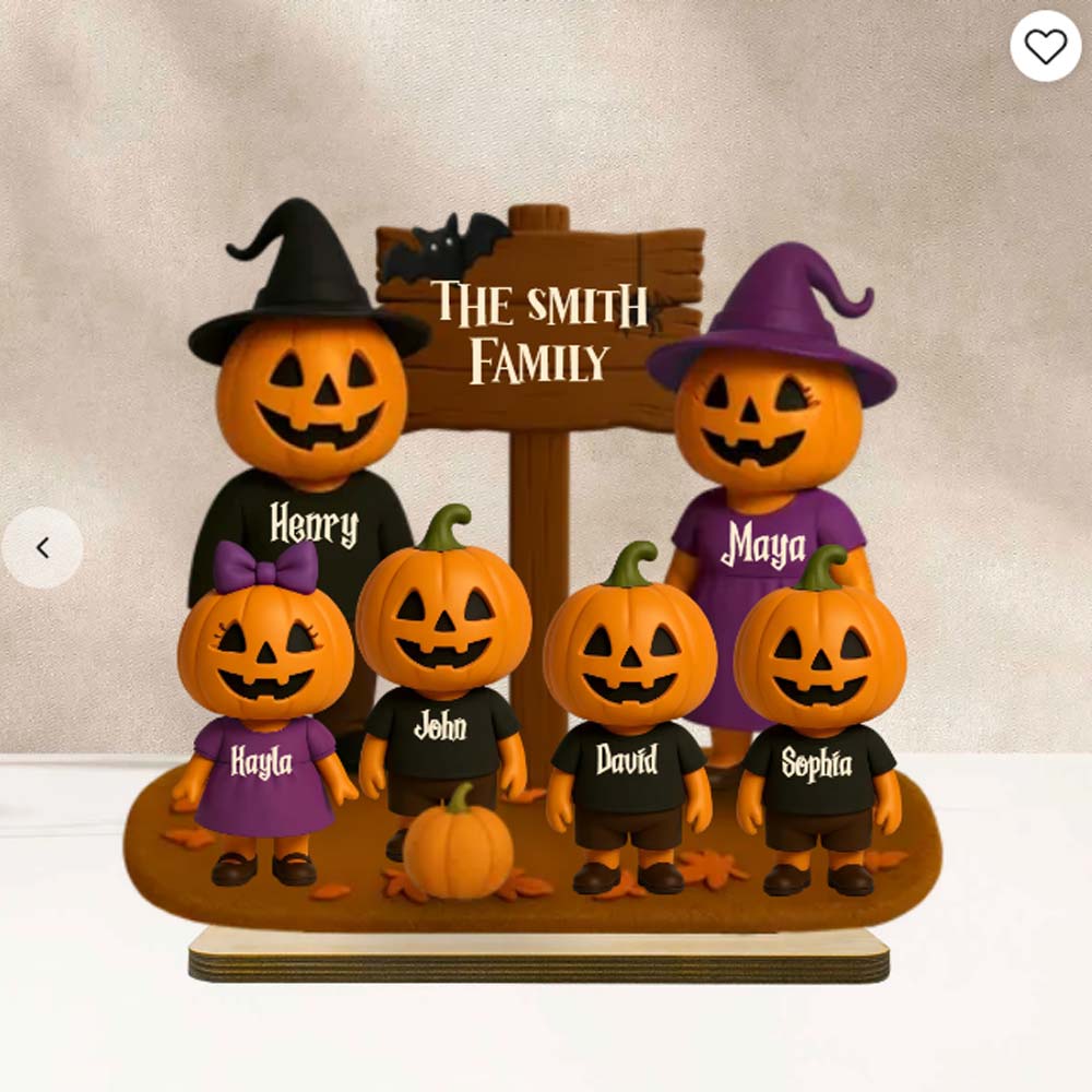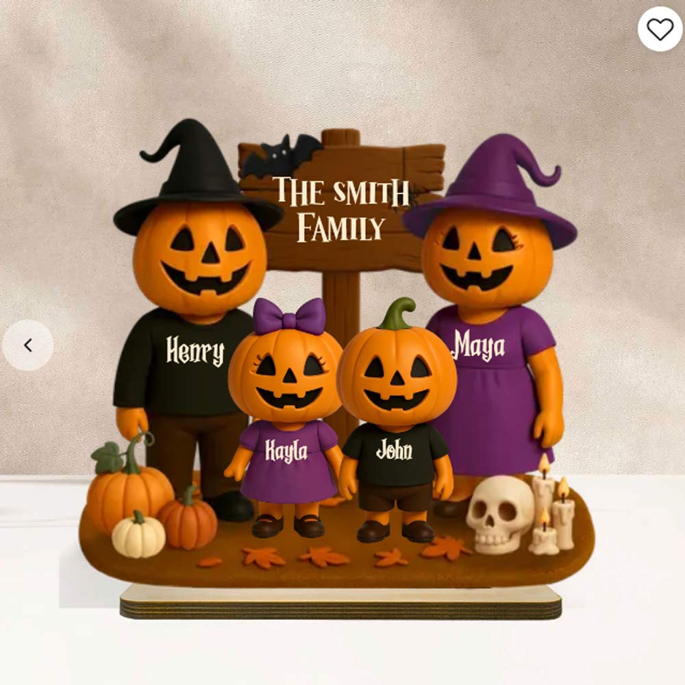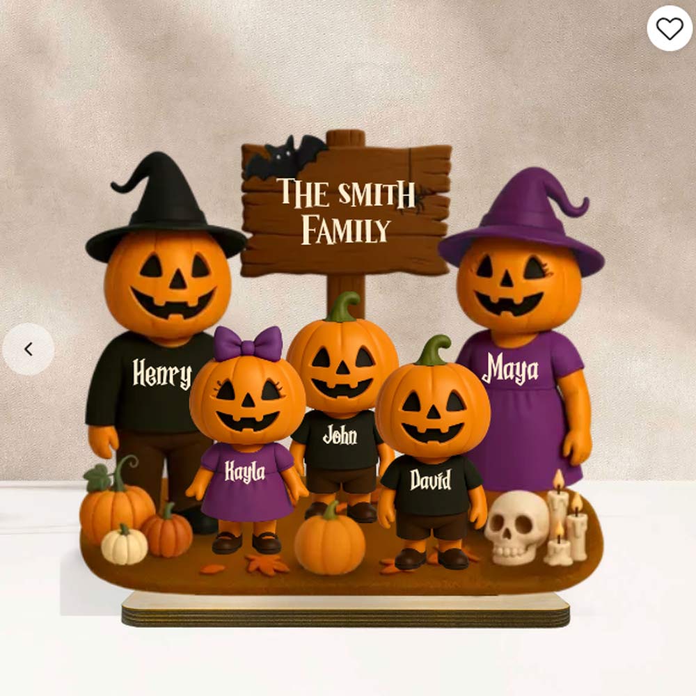 Spooky season just got a whole lot cuter! Our Jack O' Lantern Family 3D Effect Personalized Wooden Plaque is the perfect way to celebrate Halloween with your favorite little “boo crew.” Featuring an adorable lineup of grinning pumpkins — each one customized with a name — this standing plaque adds a playful, festive touch to any shelf, mantel, or entryway.
