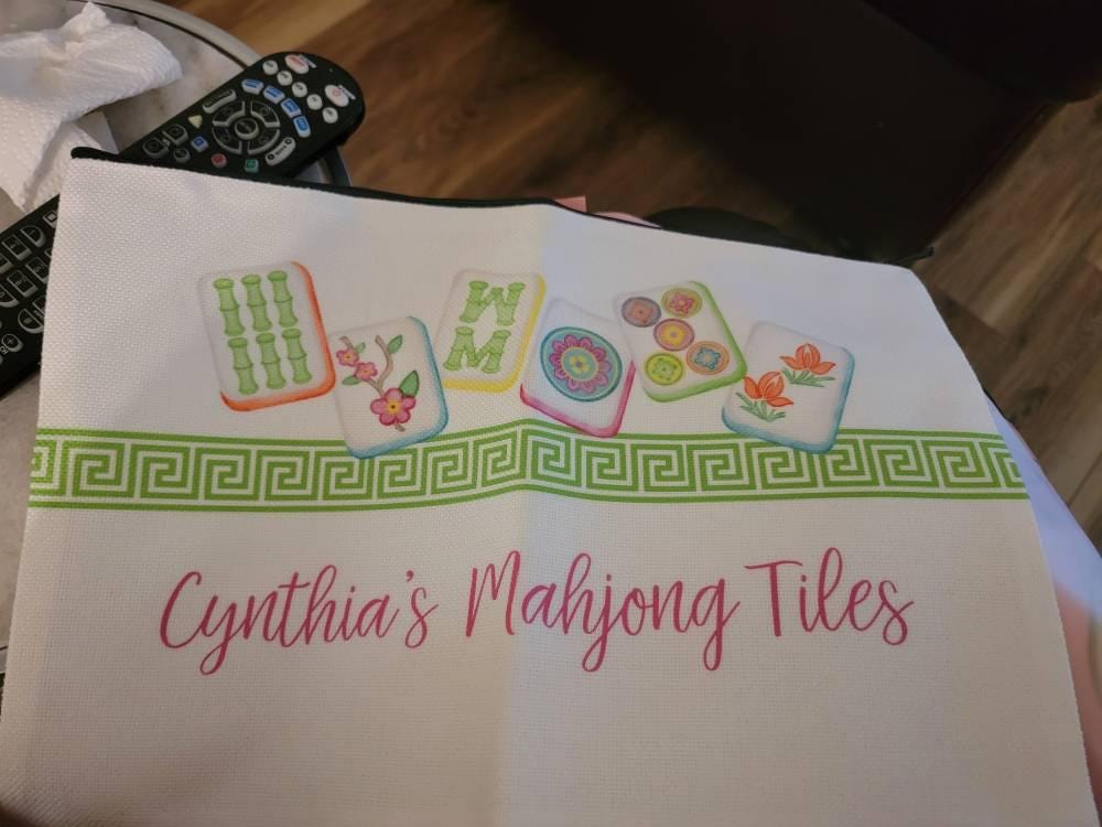 Featuring a sleek black zipper closure on top, your mahjong tiles will remain secure and organized during transport. But what truly sets this game bag apart is the personalized touch it offers.