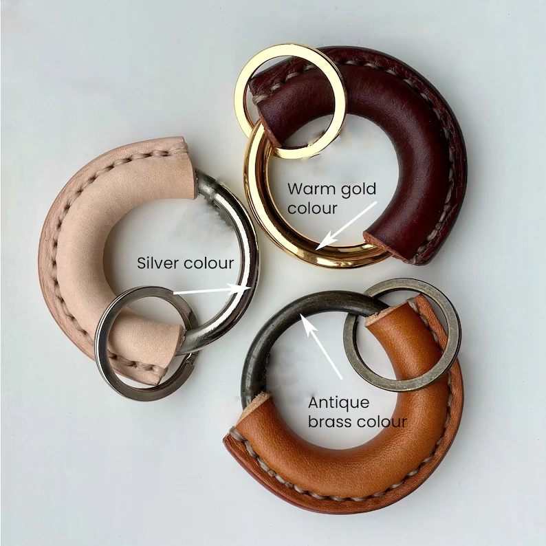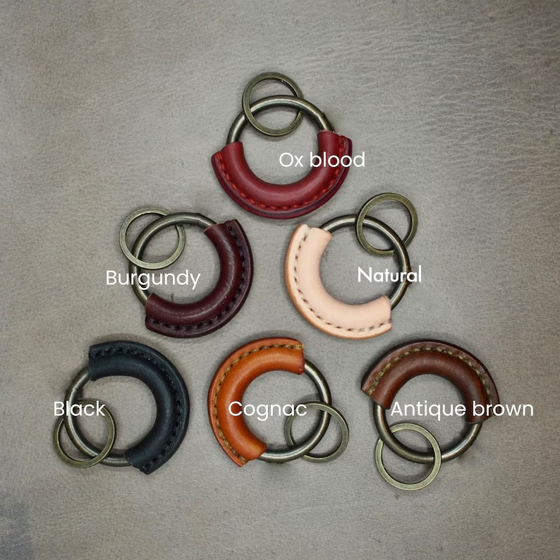 You will love this keychain! It is strong, elegant and handmade by us. These classic products are our best sellers. The quality leather and beautiful craftsmanship make it an item you will touch and use every day. This keychain is easy to hold and will last for a long time. This product is coated with a thin layer of beeswax, which will get better with time as the natural patina on the leather tells its own story.
