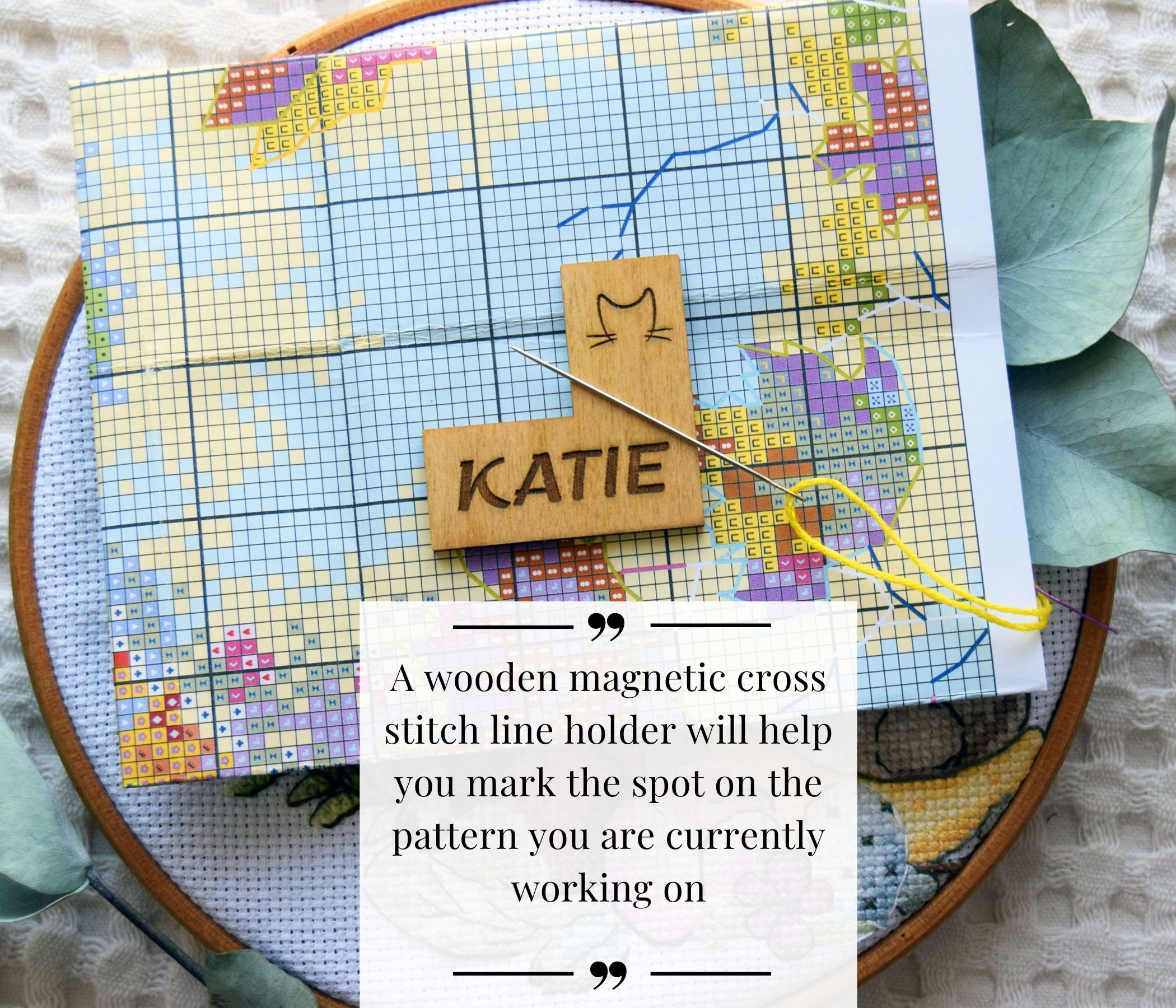 A wooden magnetic cross stitch line holder will help you mark the spot on the pattern you are currently working on.