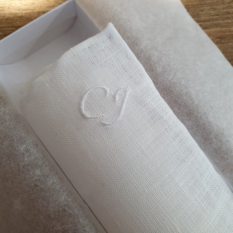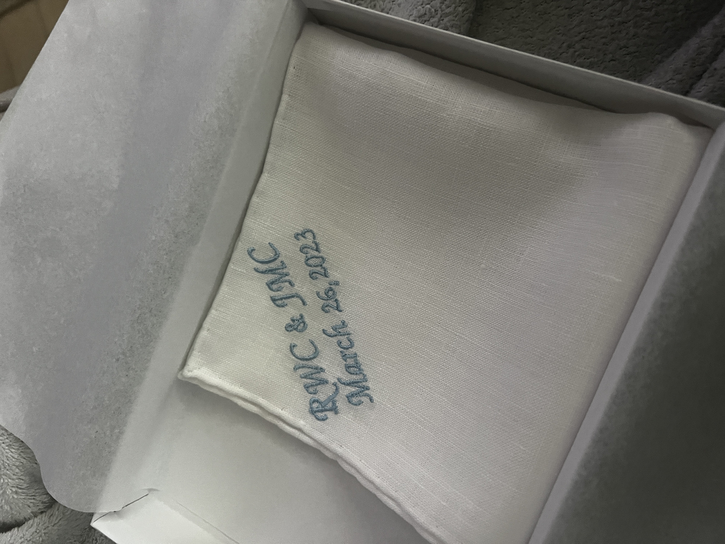 Our linen hand rolled Pocket Squares are excellent gift. And make it more special by adding a monogram!