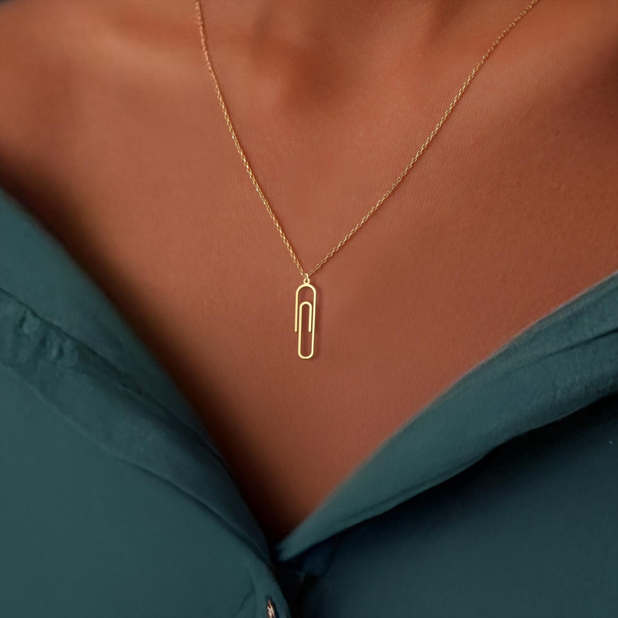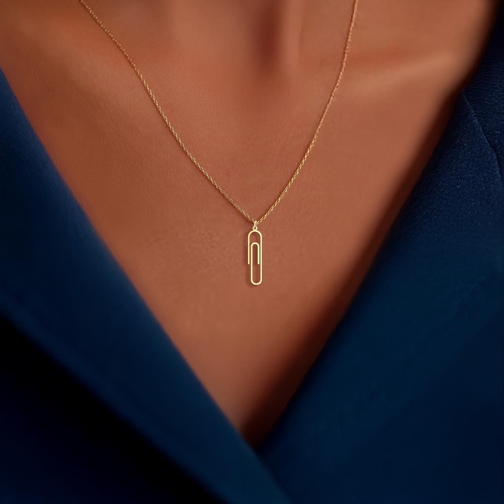 This minimalist paperclip necklace is a quirky and modern way to add a subtle statement to your outfit. Crafted in sterling silver or gold plated, this unique pendant symbolizes connection and creativity, perfect for office lovers or those who appreciate modern, everyday-inspired jewelry. It makes a wonderful gift for stationery enthusiasts or anyone with a penchant for unique, understated accessories.