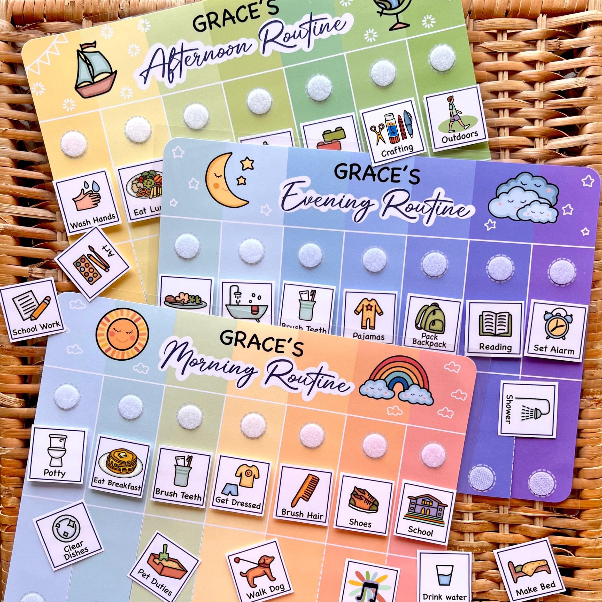 Introducing our Personalized 3 Laminated Morning, Afternoon, and Evening Routine Chart, Planning Toddler Bedtime Routine, Daily Visual Schedule, Chore Chart For Kids, Montessori, Kids Flip Chart, and Printable Visual Schedule. The Ultimate Children's Routine Chart and Planner.