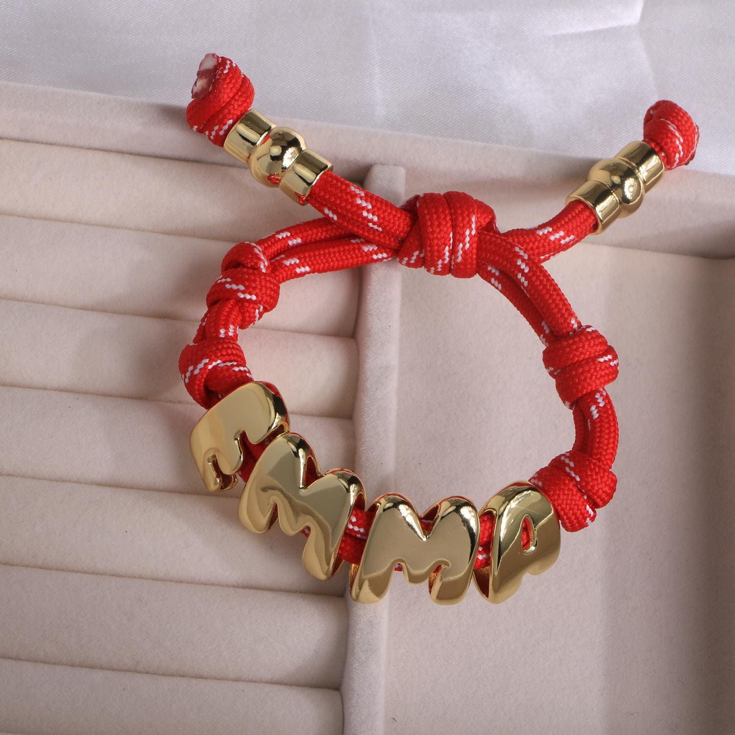 Custom Personalized Initial Name Bracelet, Adjustable Cord with Gold Silver Bubble Letter Knotted Initial Bracelet Women Men Jewelry
