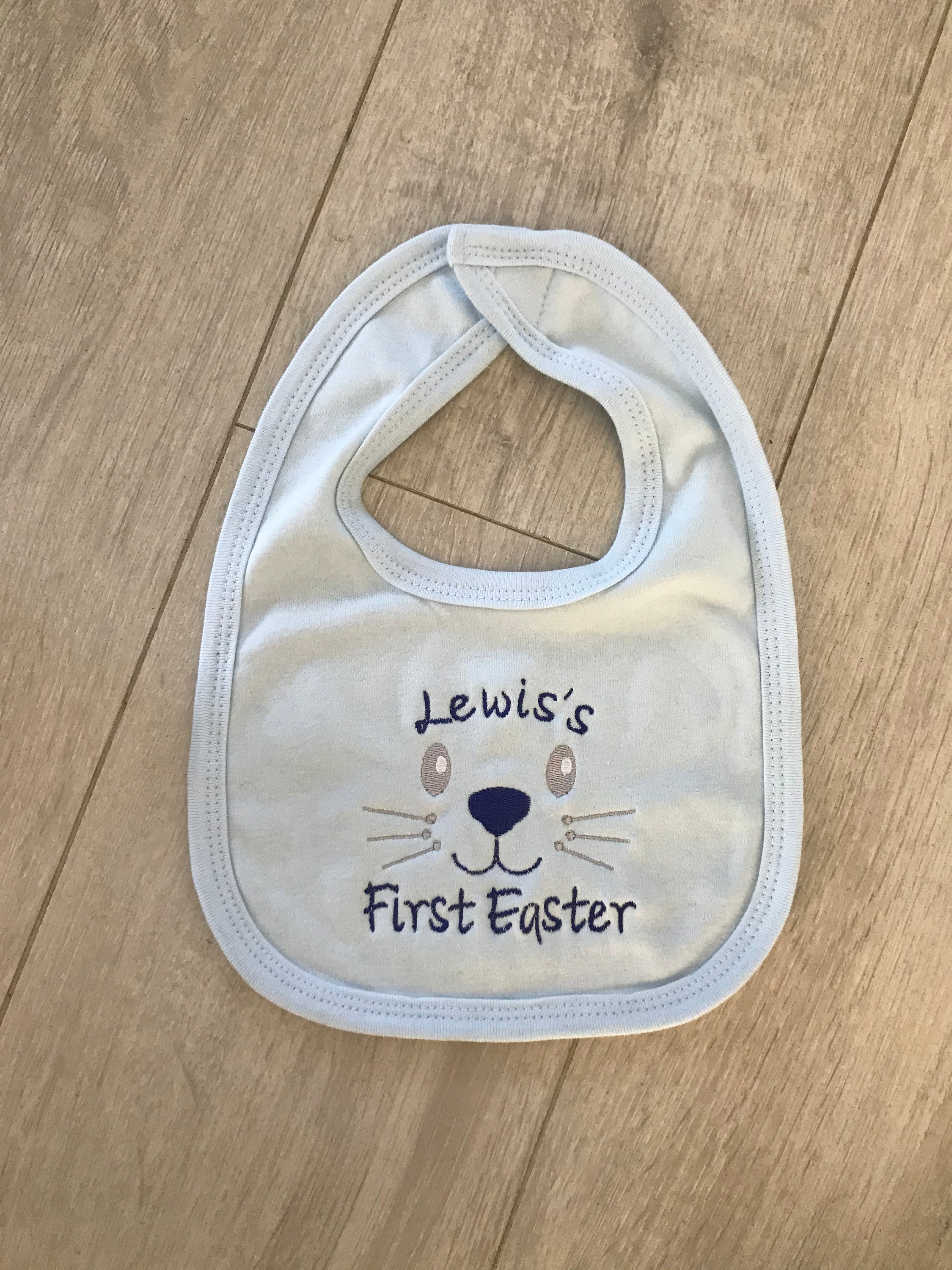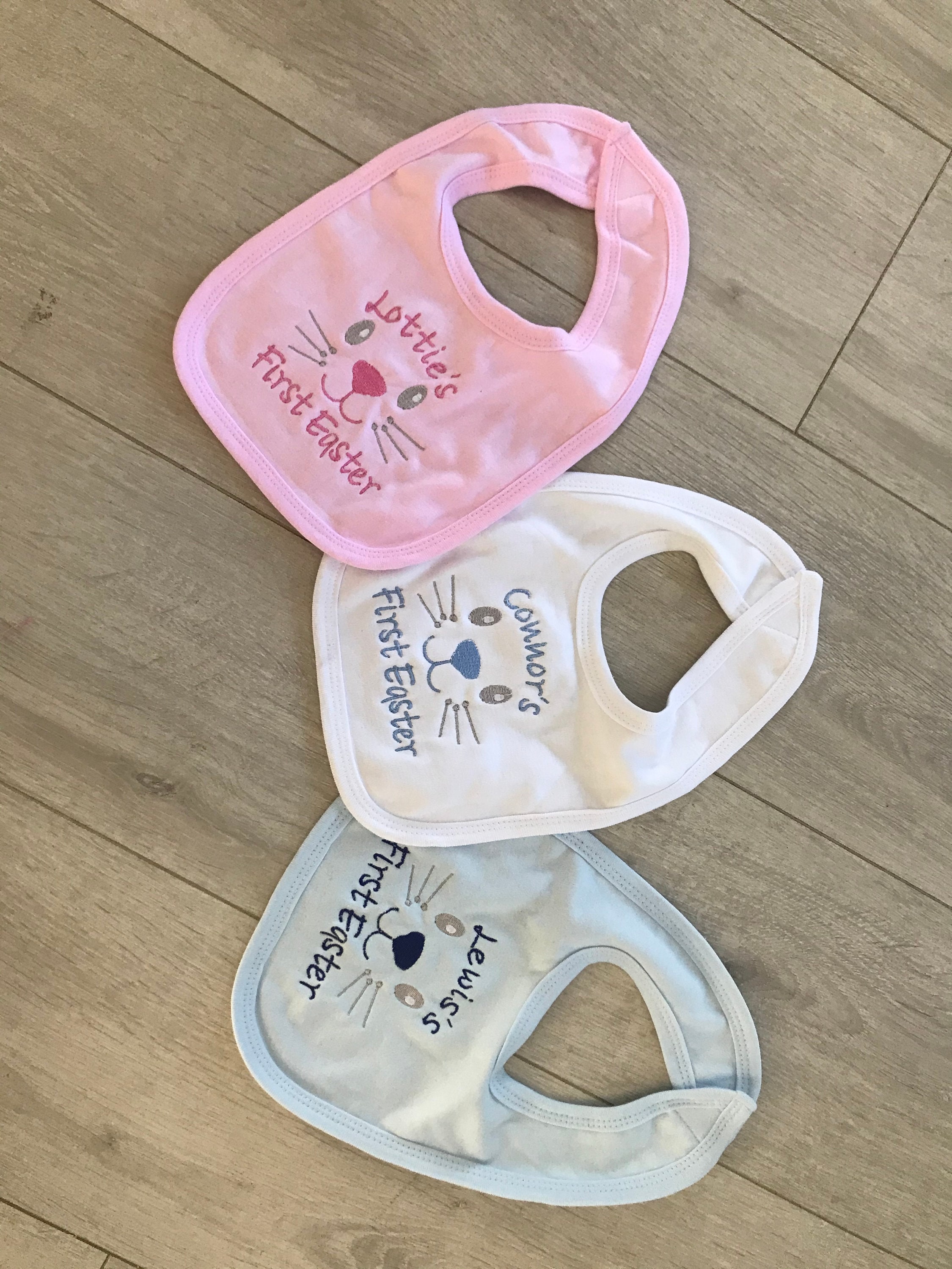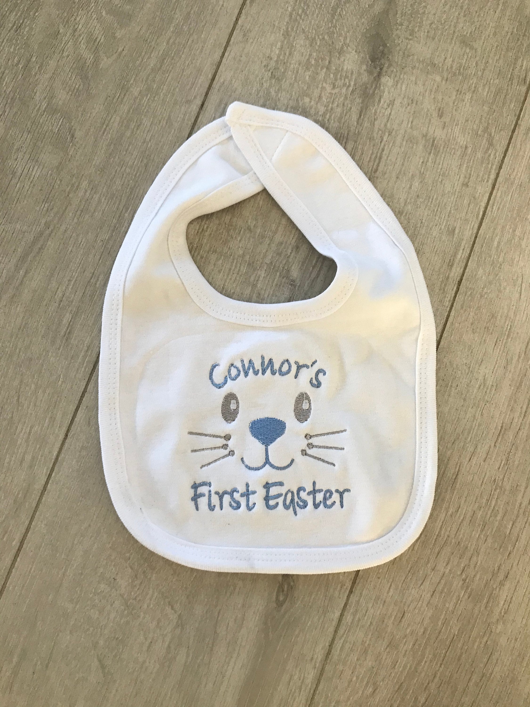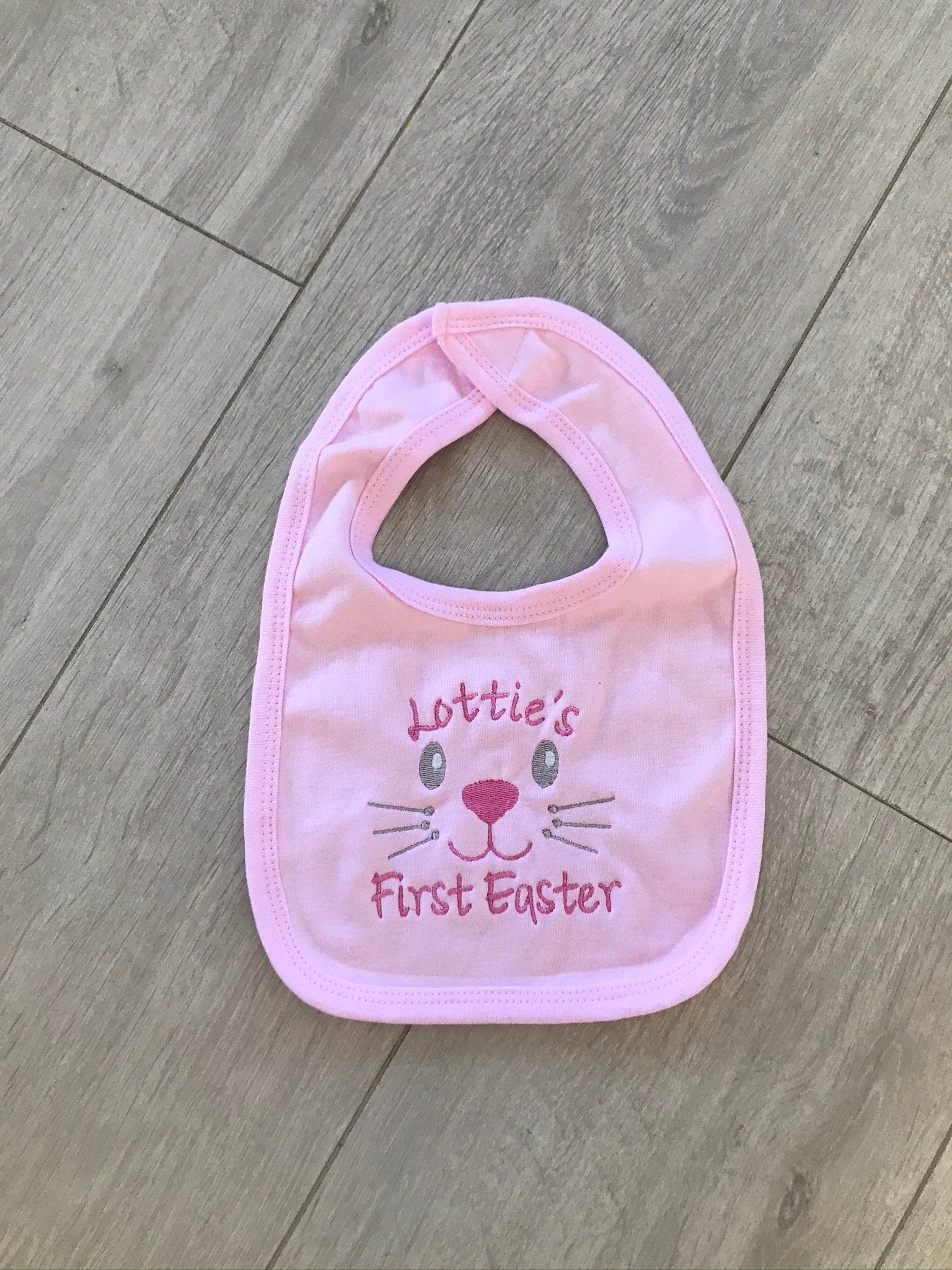 These beautiful Easter bunny face bib 100% cotton super soft and great for a new baby gift or 1st Easter