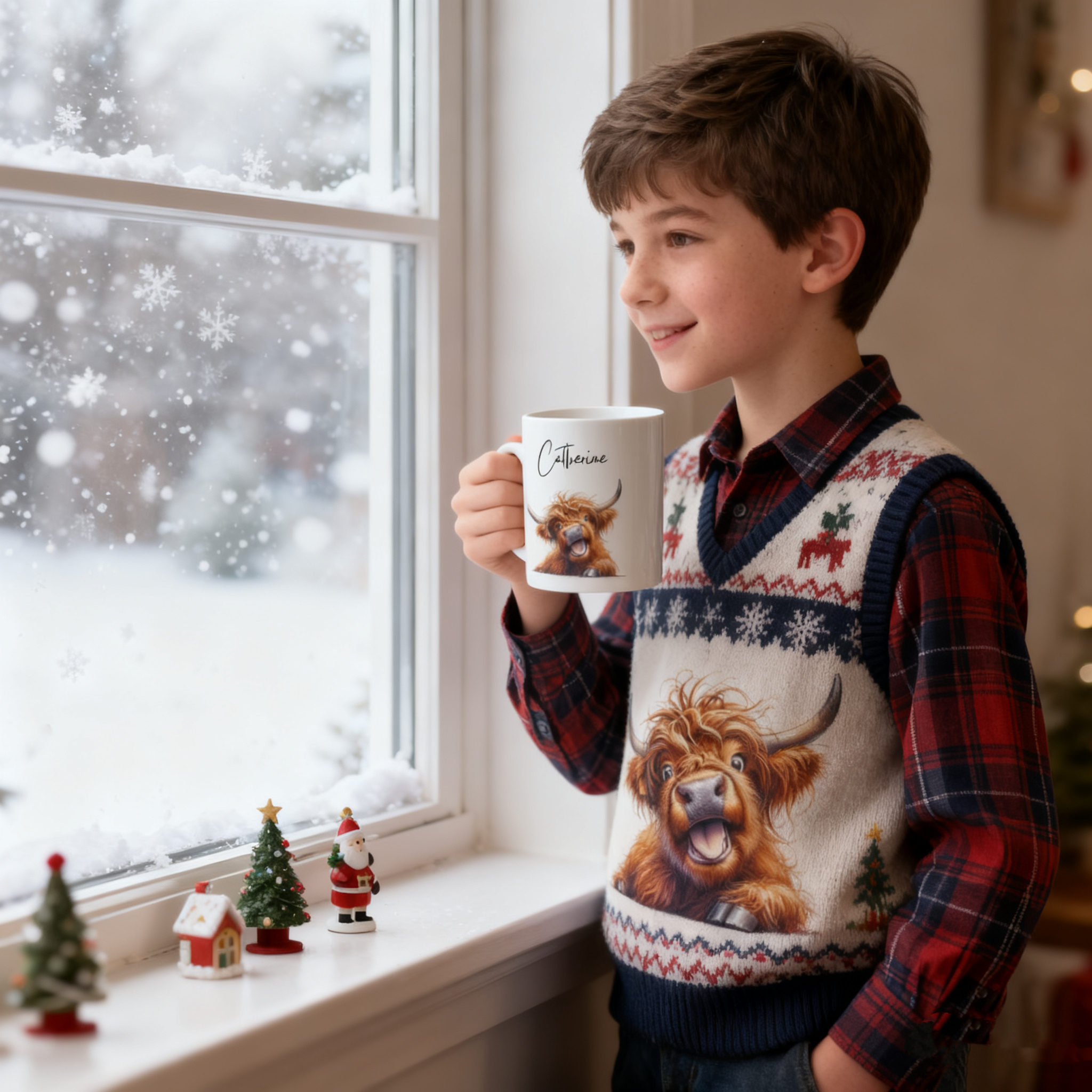Crafted from durable ceramic, this mug is designed to withstand daily use and is microwave and dishwasher-safe for convenience. The vibrant colors and personalized cartoon are sure to stay crisp and bright for many Christmases to come.