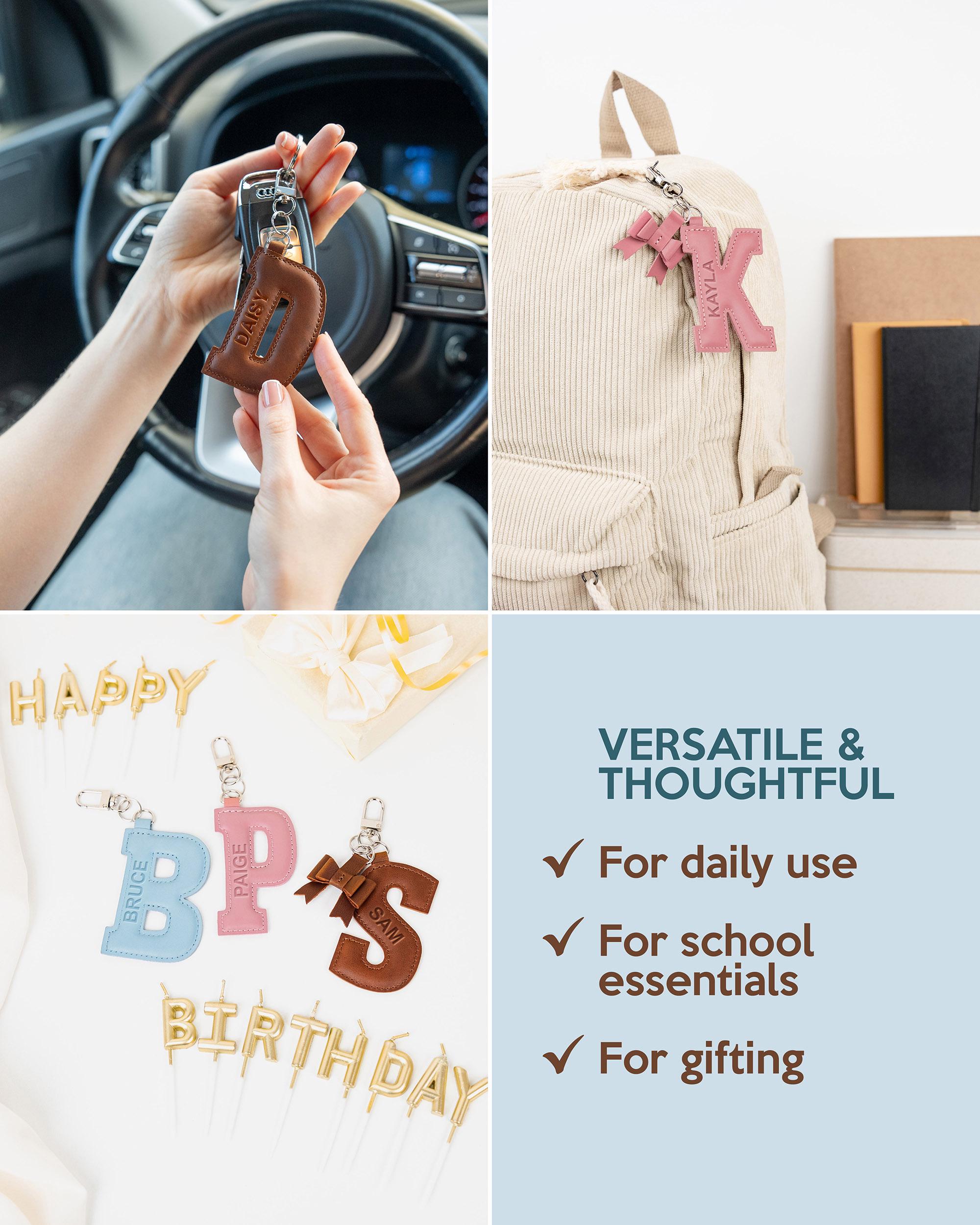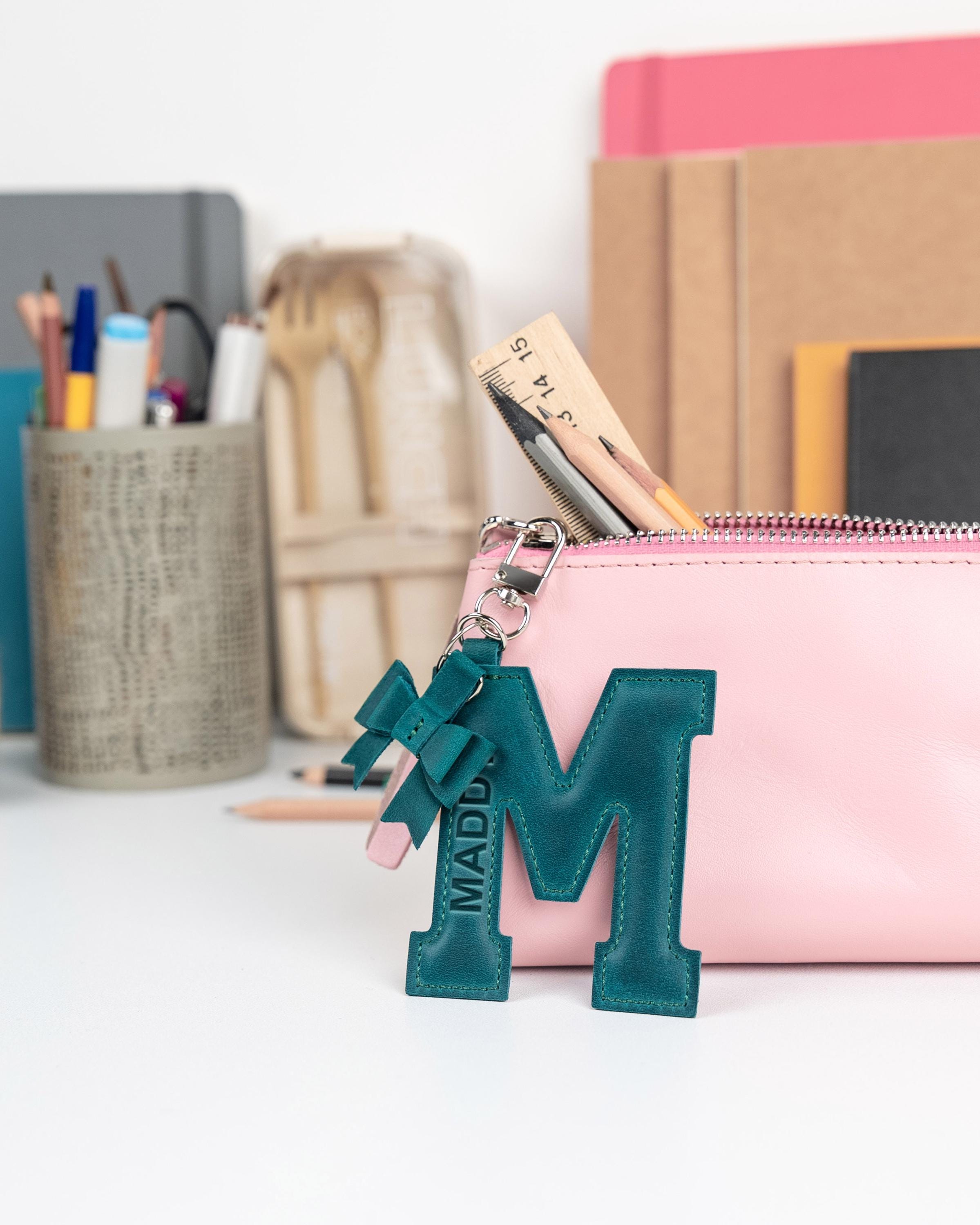 Personalised letter bag charm crafted from quality leather with a sturdy metal clip and a bold bubble design. Clip it to any bag tag, keychain charm, suitcase tag, or tote charm — it’s a fun, durable way to personalize your bag accessories. Choose your color, add a bow if you like, and enjoy a bag charm cute enough for kids, stylish enough for adults, and versatile enough for everyday use.