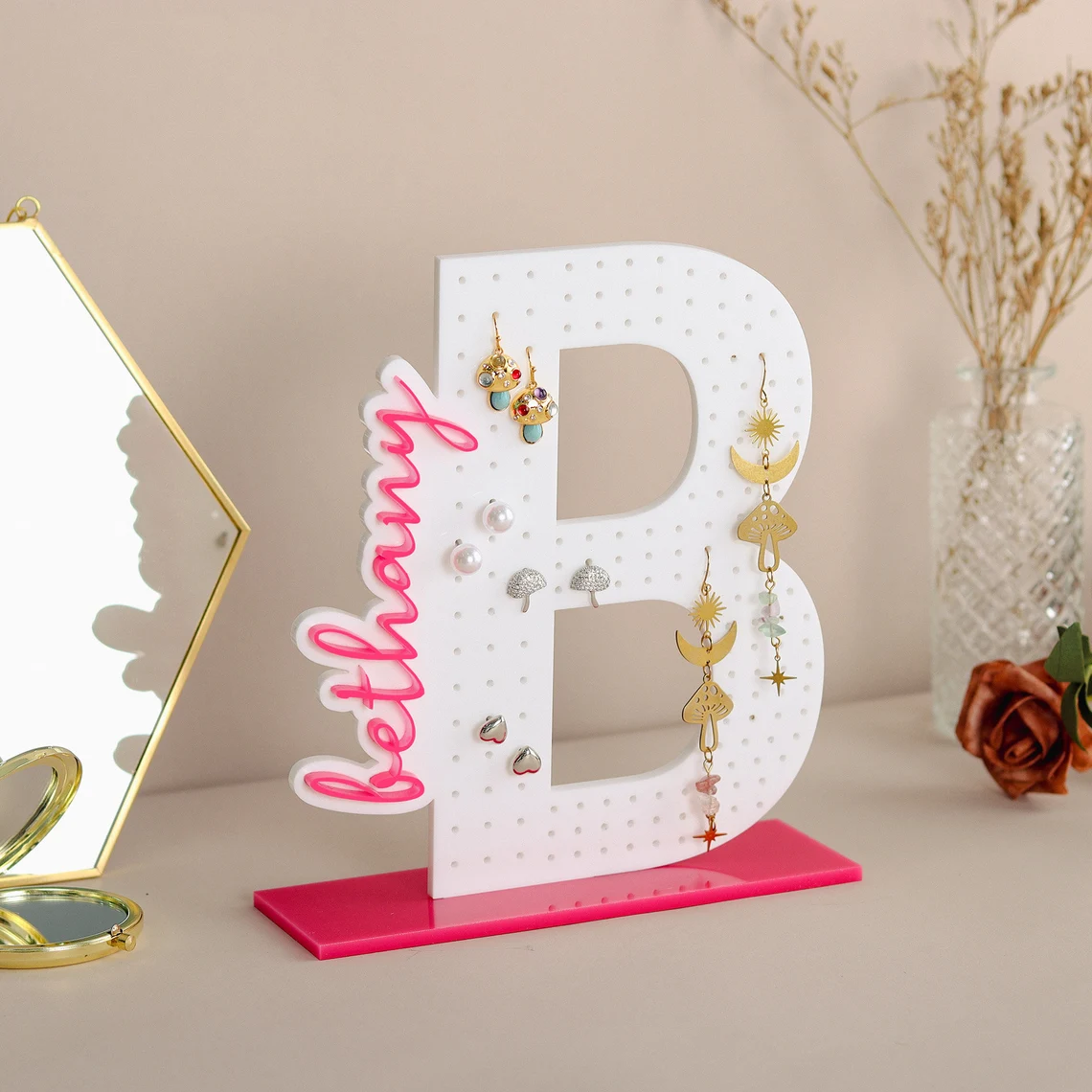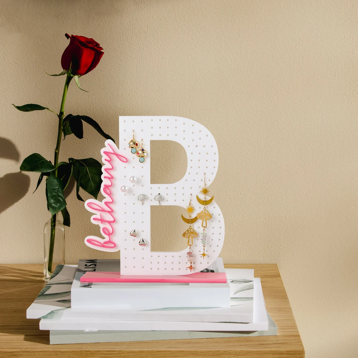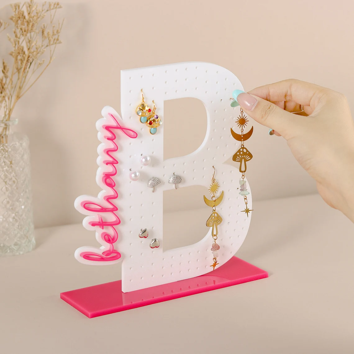 Looking for the perfect gift for a special girl or woman in your life? Our personalized acrylic earring holder is a wonderful choice! This unique earring display not only showcases her beautiful earrings but also keeps them organized and easily accessible.