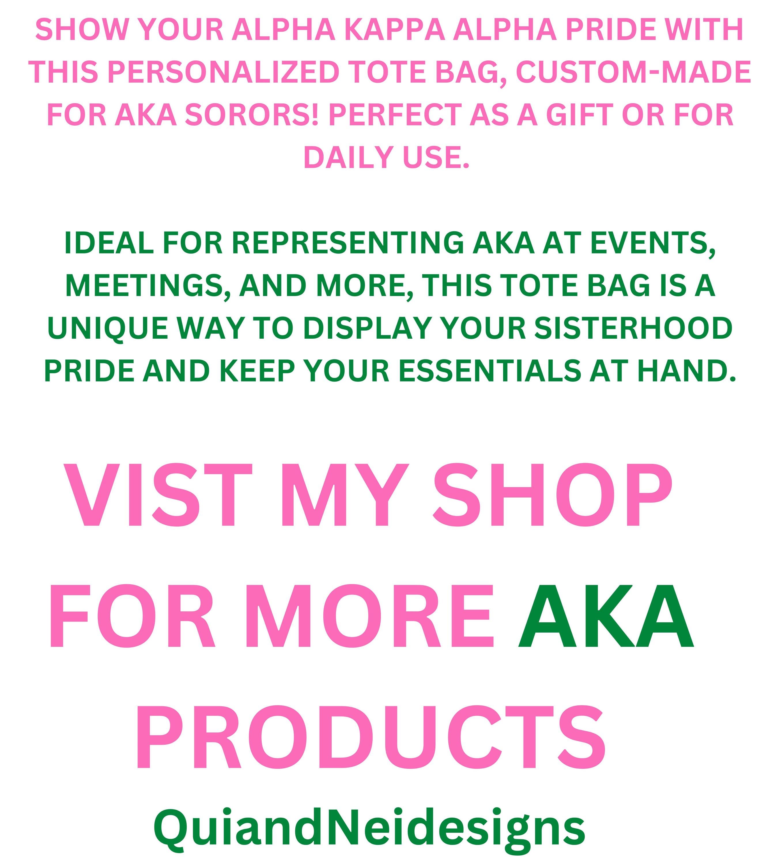 Show your Alpha Kappa Alpha pride with this personalized tote bag, custom-made for AKA sorors! Perfect as a gift or for daily use. Ideal for representing AKA at events, meetings, and more, this tote bag is a unique way to display your sisterhood pride and keep your essentials at hand.