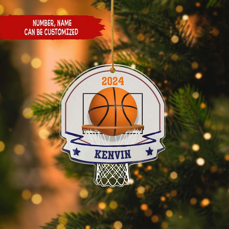 Our personalized basketball ornament is sure to be a slam dunk! This unique and custom-made ornament features a 2D basketball hoop design that can be personalized with a name or message.