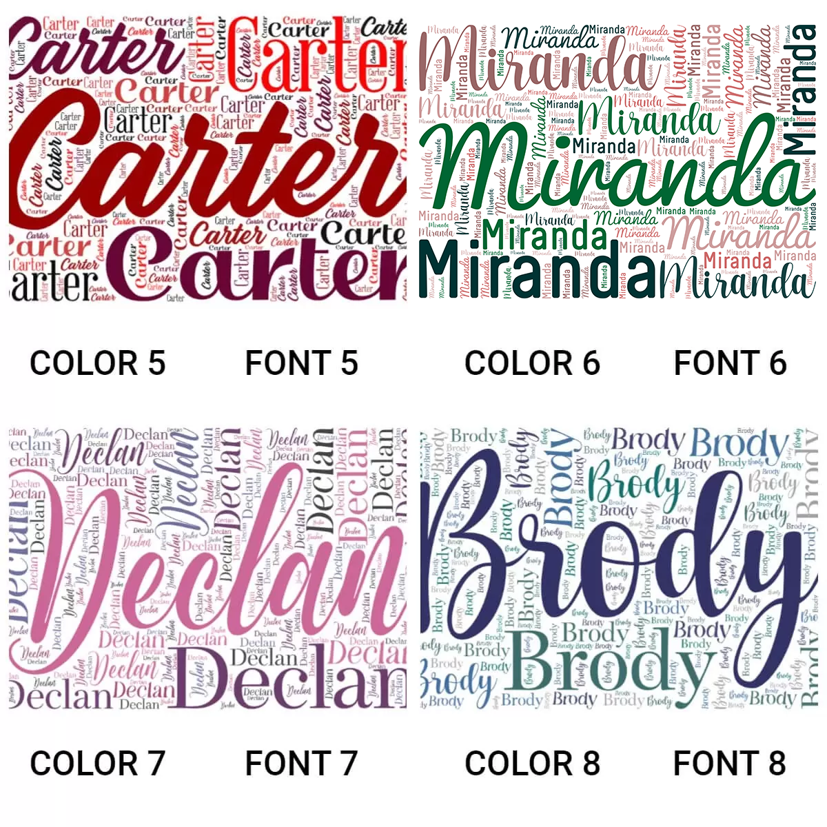 Our personalized word cloud art blanket comes with 8 amazing color styles you can choose from, and 8 distinctive font types too.
