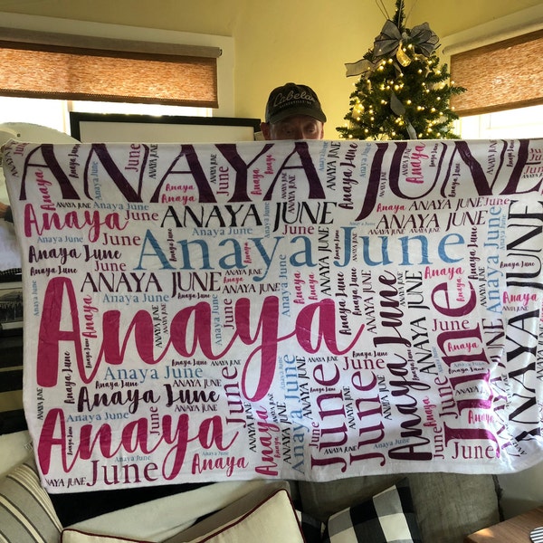 Our personalized word cloud art blanket is a unique gift for couples, best friends, and family, and it's a cute gift for birthday and anniversary.Click "Customize Now" and enter your names or your texts You Loved. This name blanket is made from durable, premium fabric, machine washable and tumble dry low. The color will not fade even after many washes.