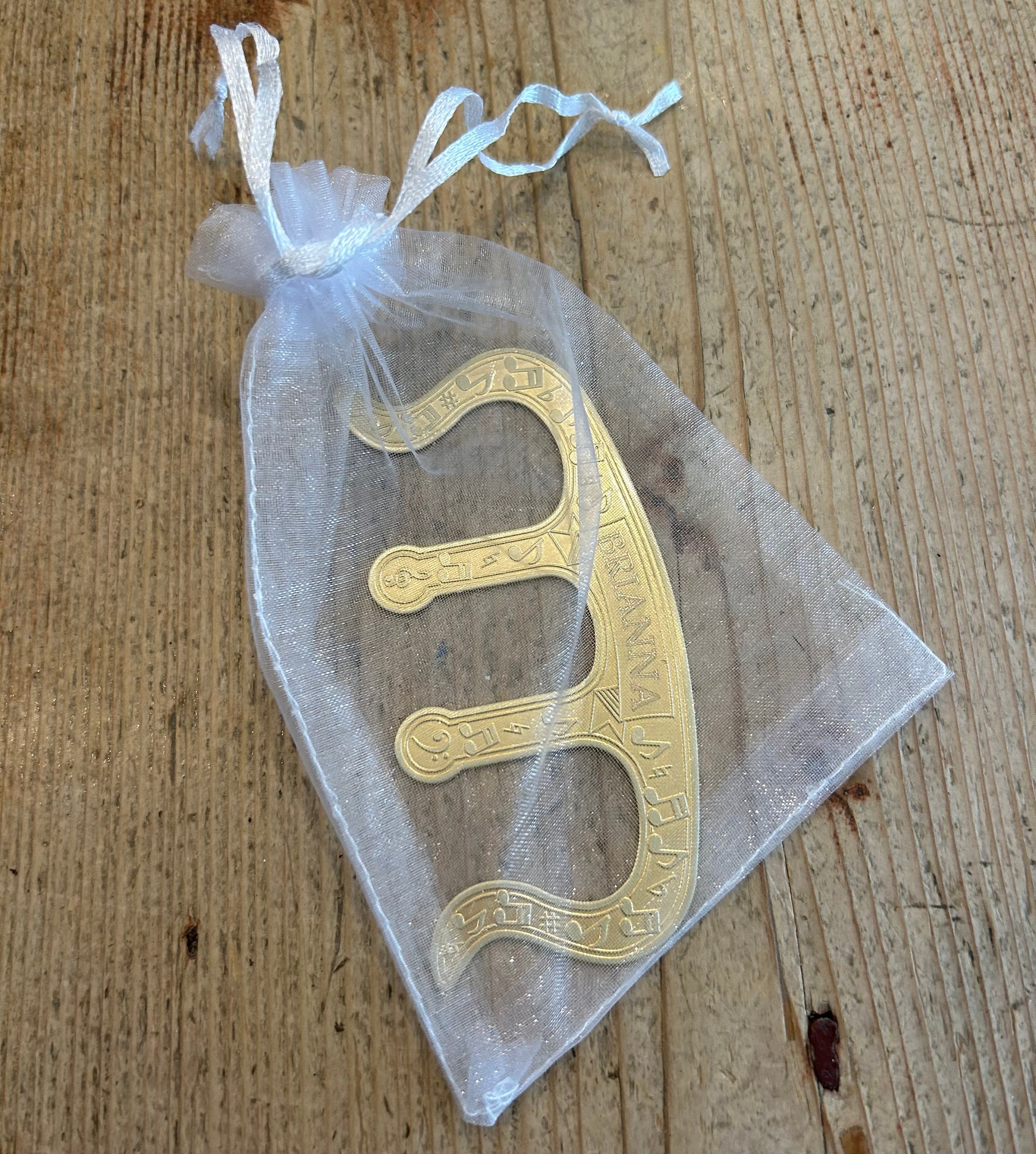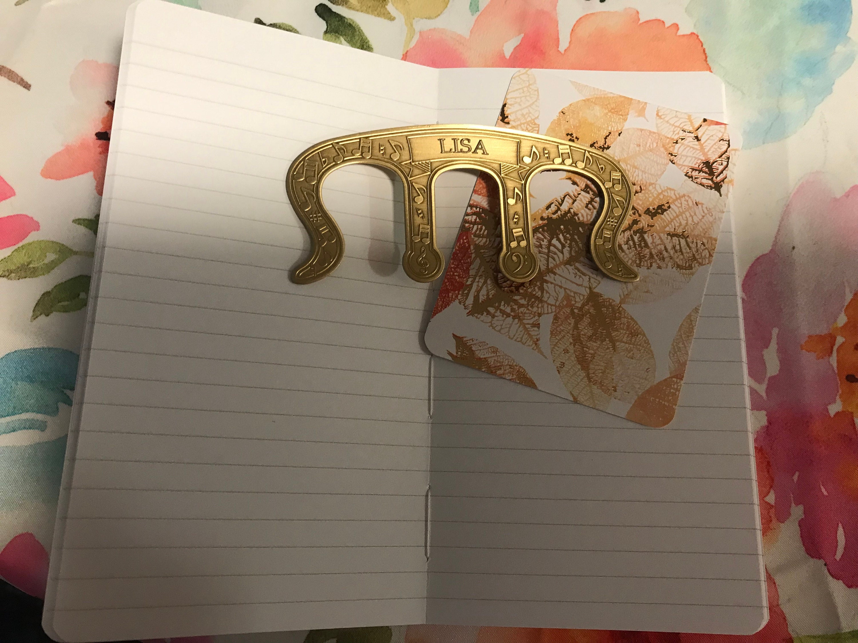 Brass bookmark measures 2" X 4". The engraving area is 1 1/2" wide x 1/3" high. Price Includes personalizing the holder with an engraved monogram or name. Up to 8 characters, roman font, all upper case. See photo for example.