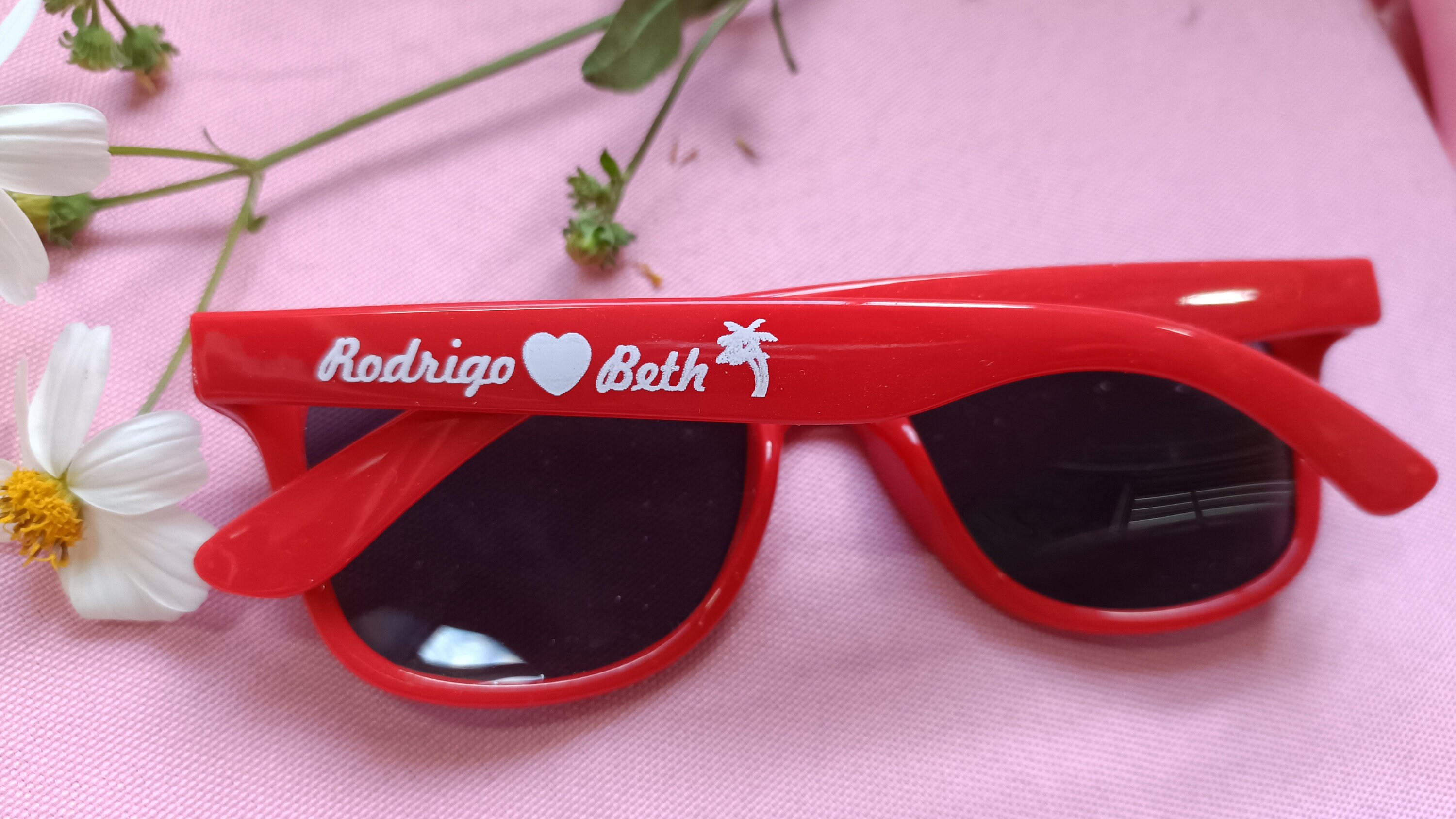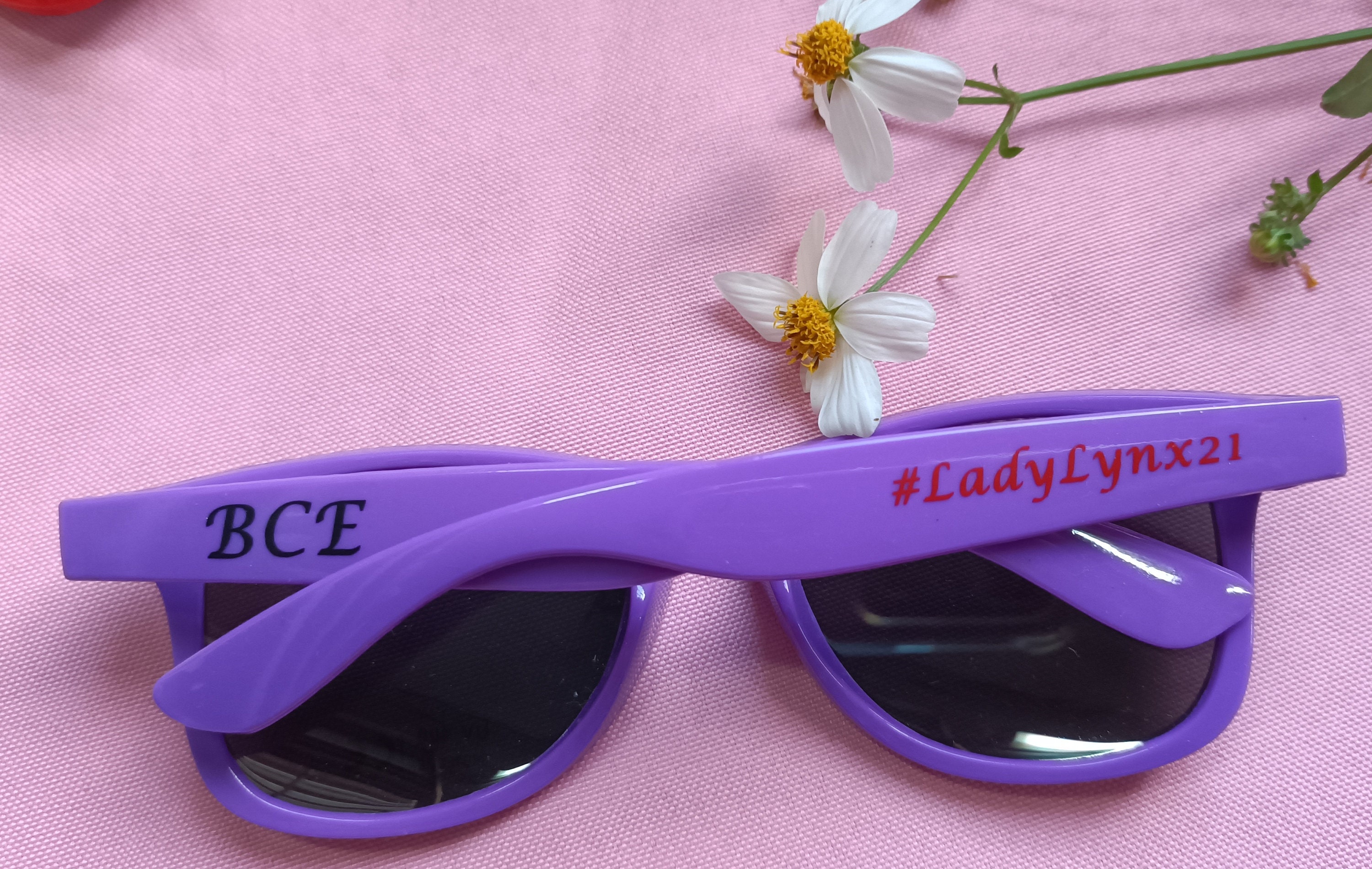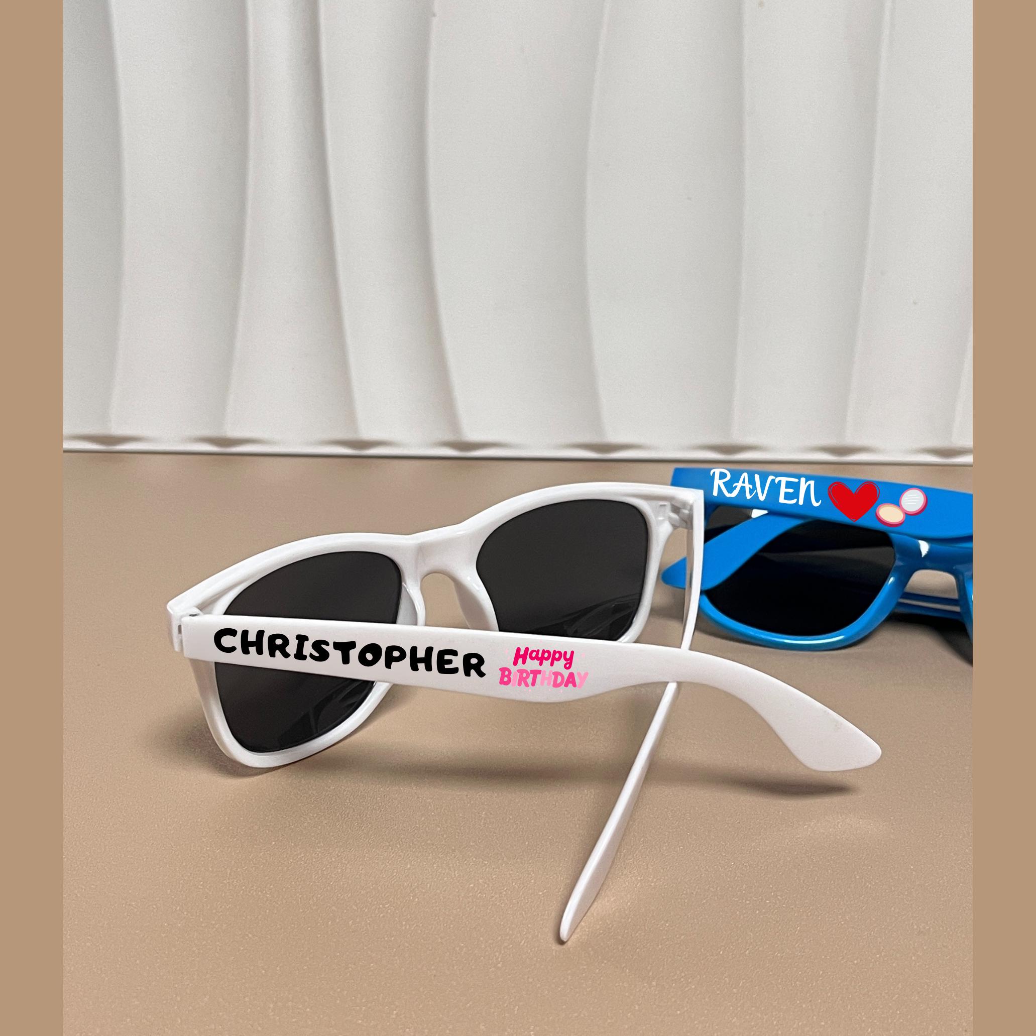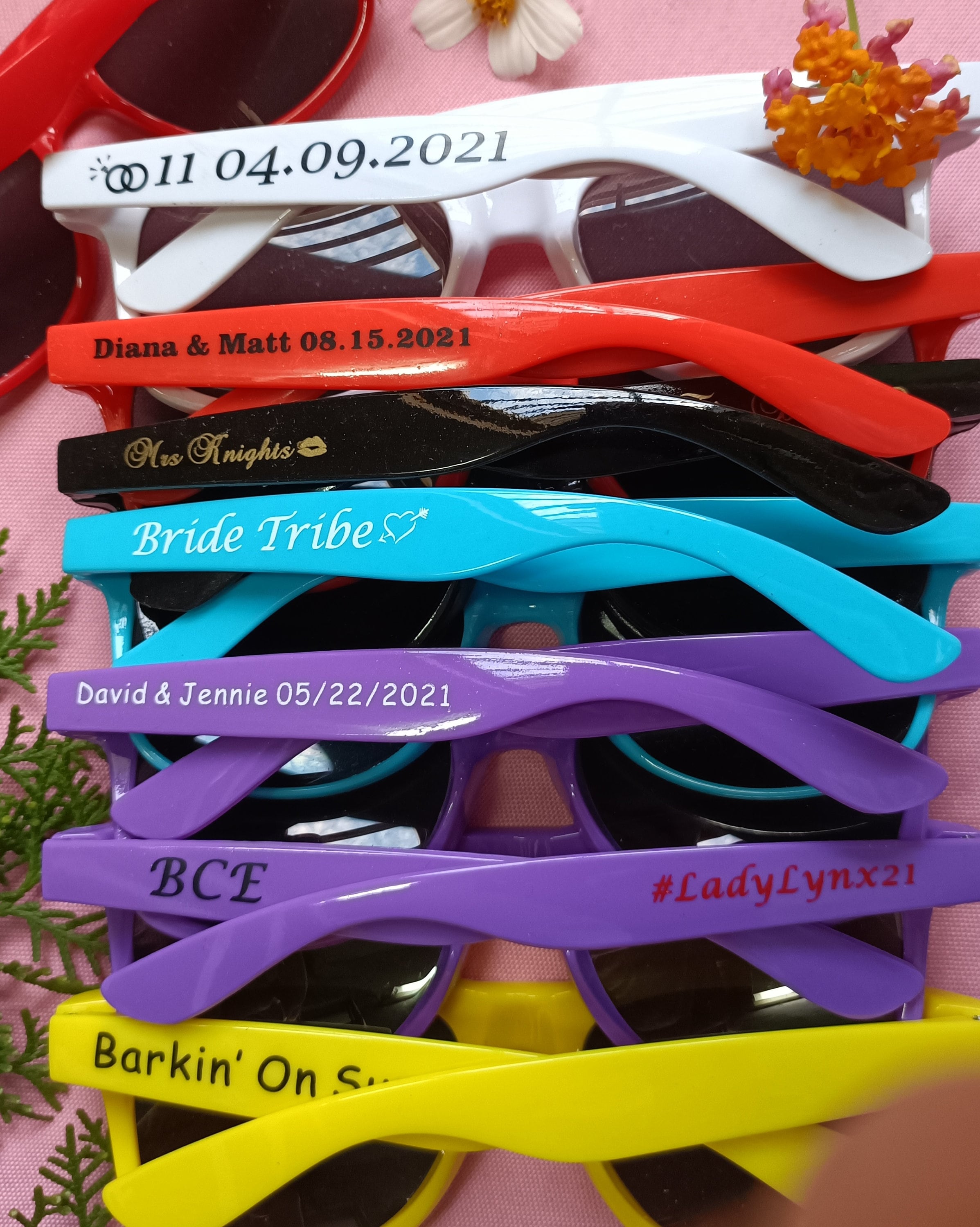 We print birthday party theme,boy scout,girl scout team theme, spring break hiking team for sunglasses favors.