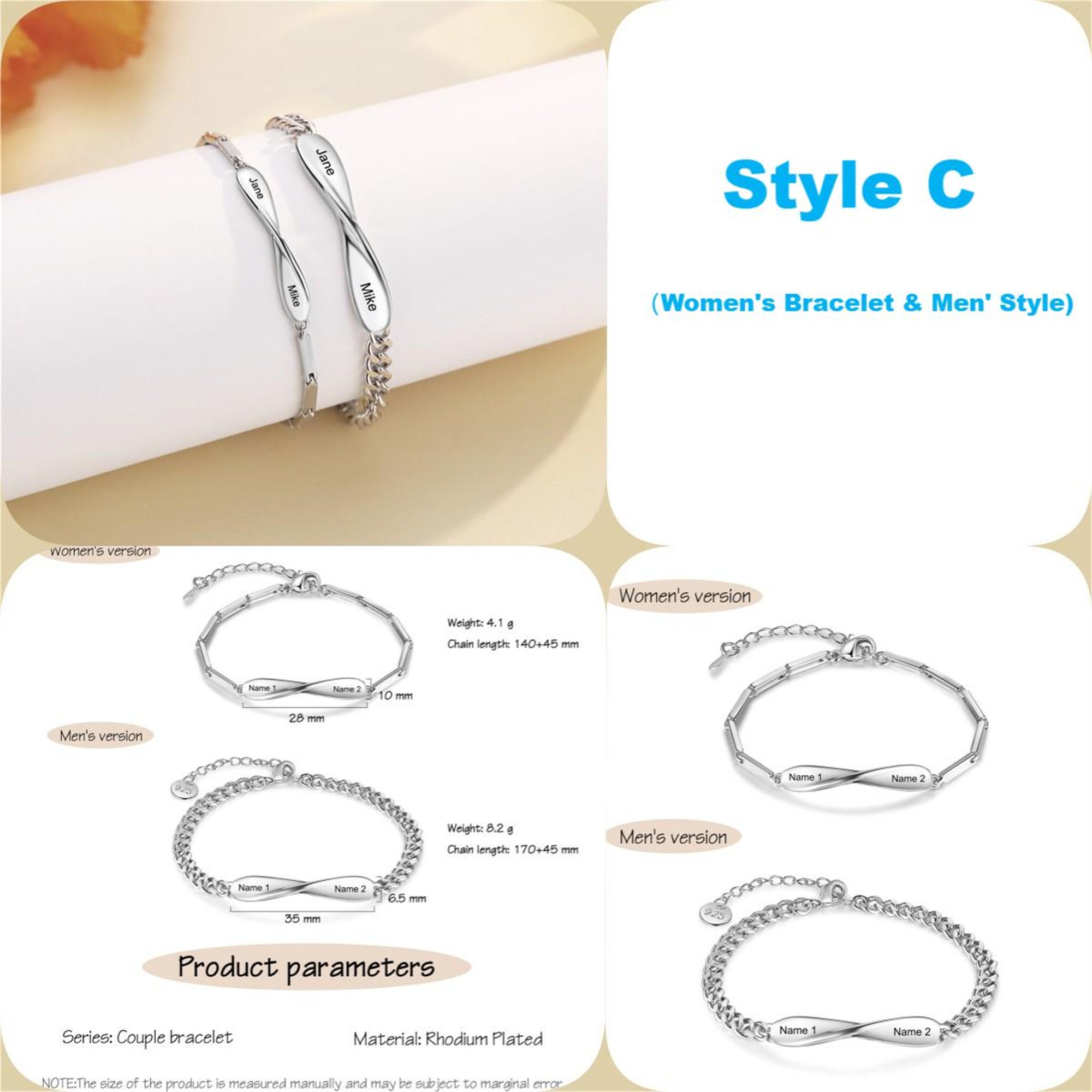 Each style is a combination of men and women, Each style have two bracelets!