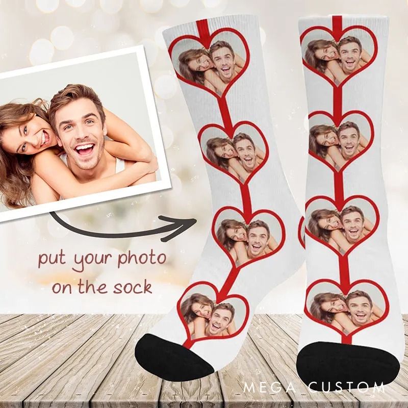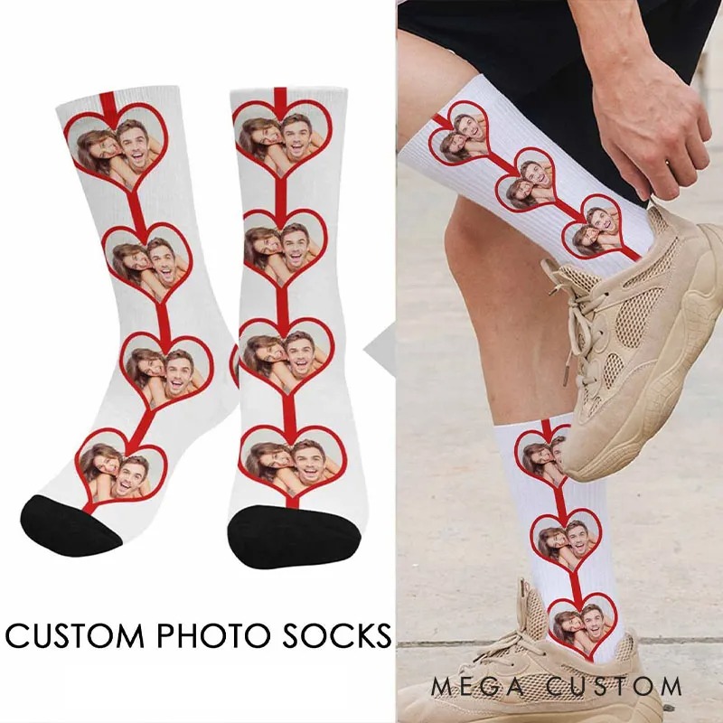 Step into love with these fun and personalized "Love Socks"! Featuring up to 2 custom faces surrounded by adorable red hearts, these socks make the perfect gift for couples, spouses, or significant others. Whether for Valentine’s Day, anniversaries, or just because, these quirky and heartfelt socks are sure to bring smiles and warmth to your loved one’s day!