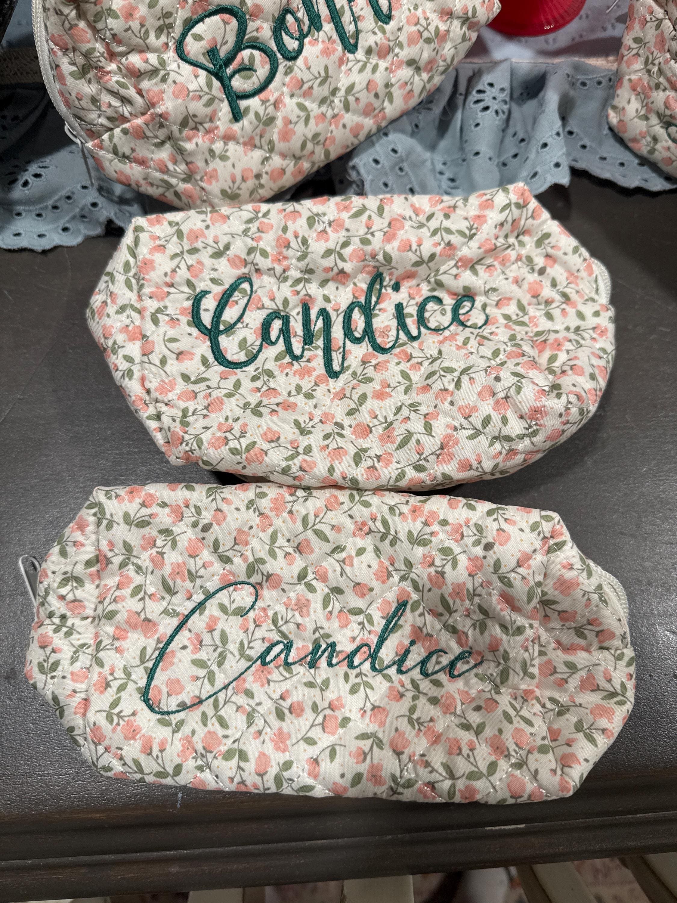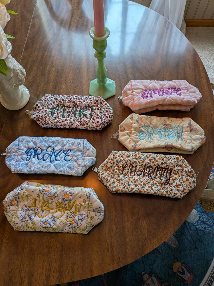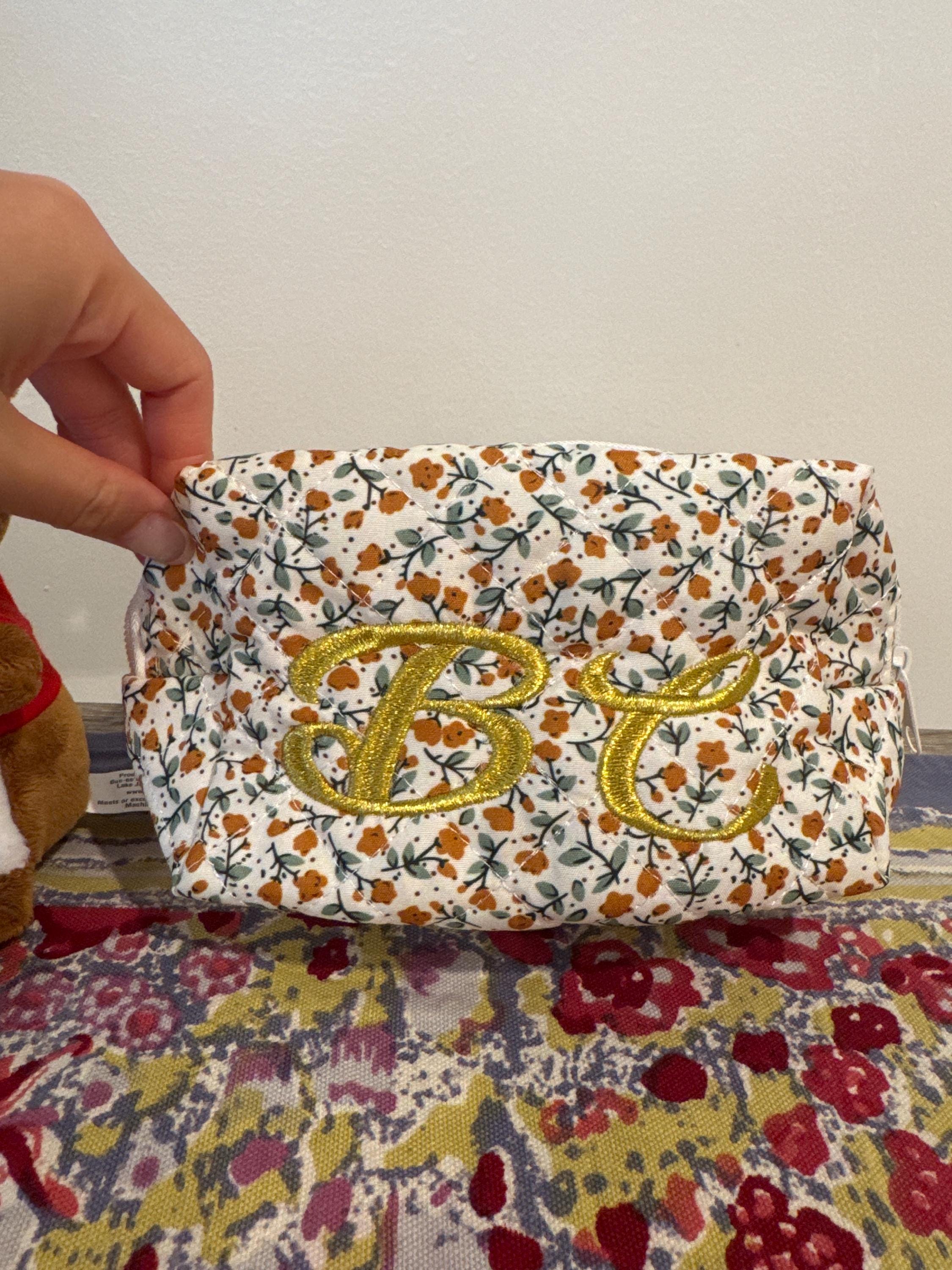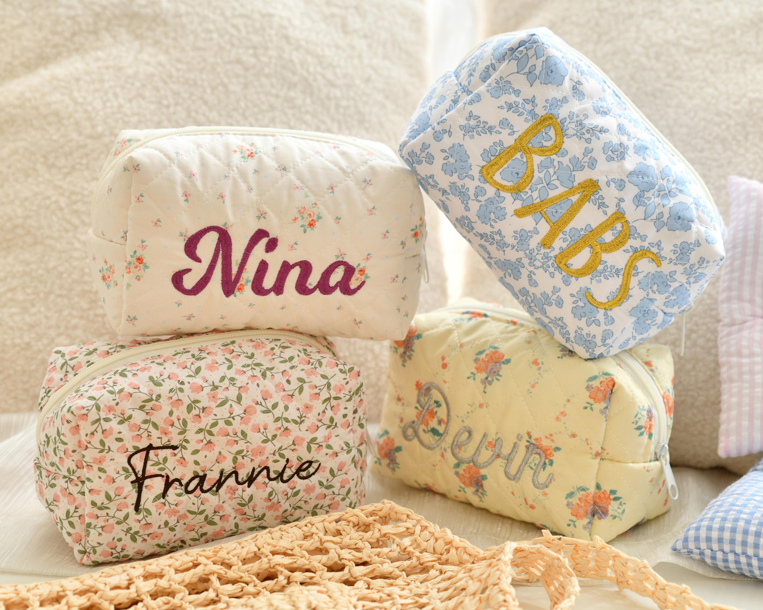 This personalized floral embroidered makeup bag features a beautiful floral pattern and is the perfect gift for bridesmaids, bridal showers, or travel storage. Each makeup bag is carefully made to order and can be customized with your name or initials to add a special touch. Whether you are treating yourself or a loved one, this makeup bag is both stylish and practical, making it the perfect addition to your daily beauty routine.