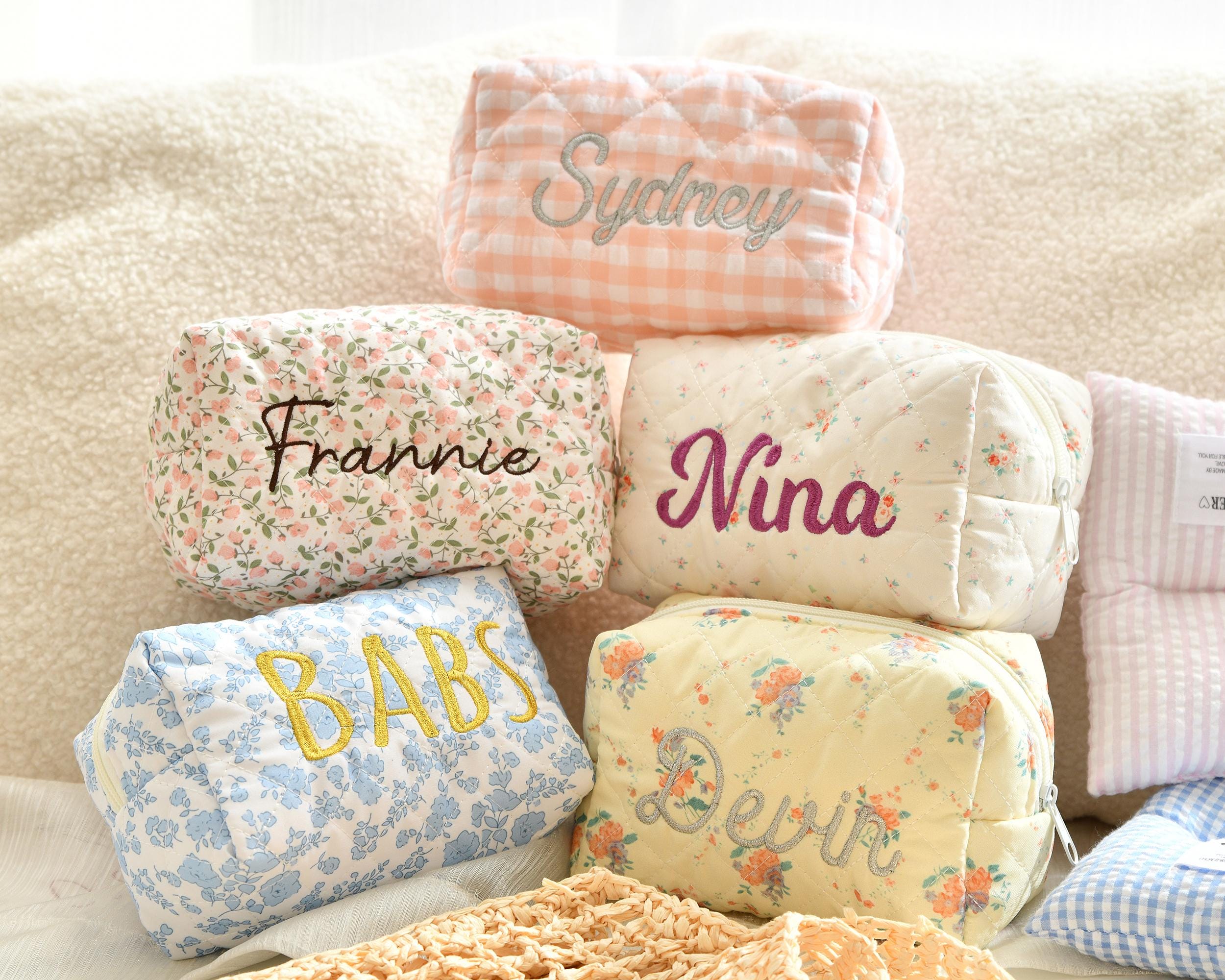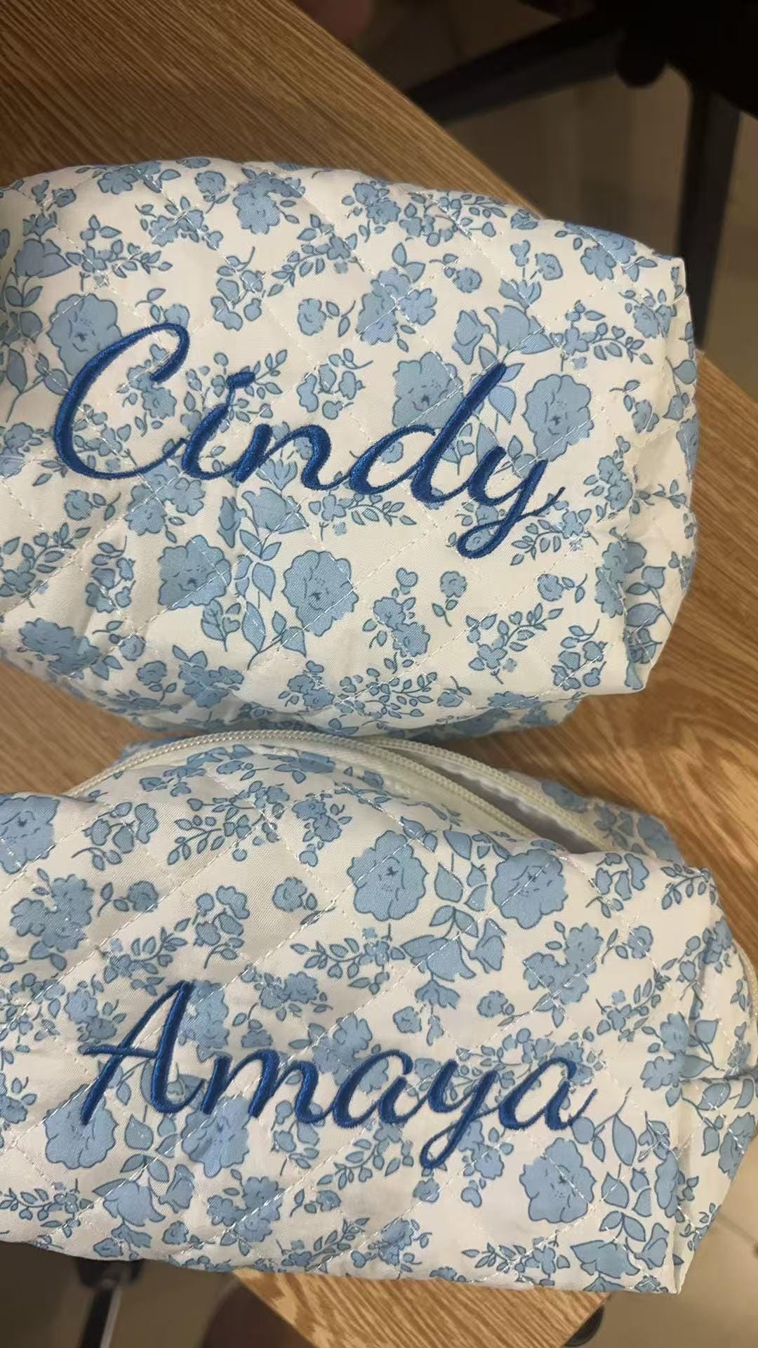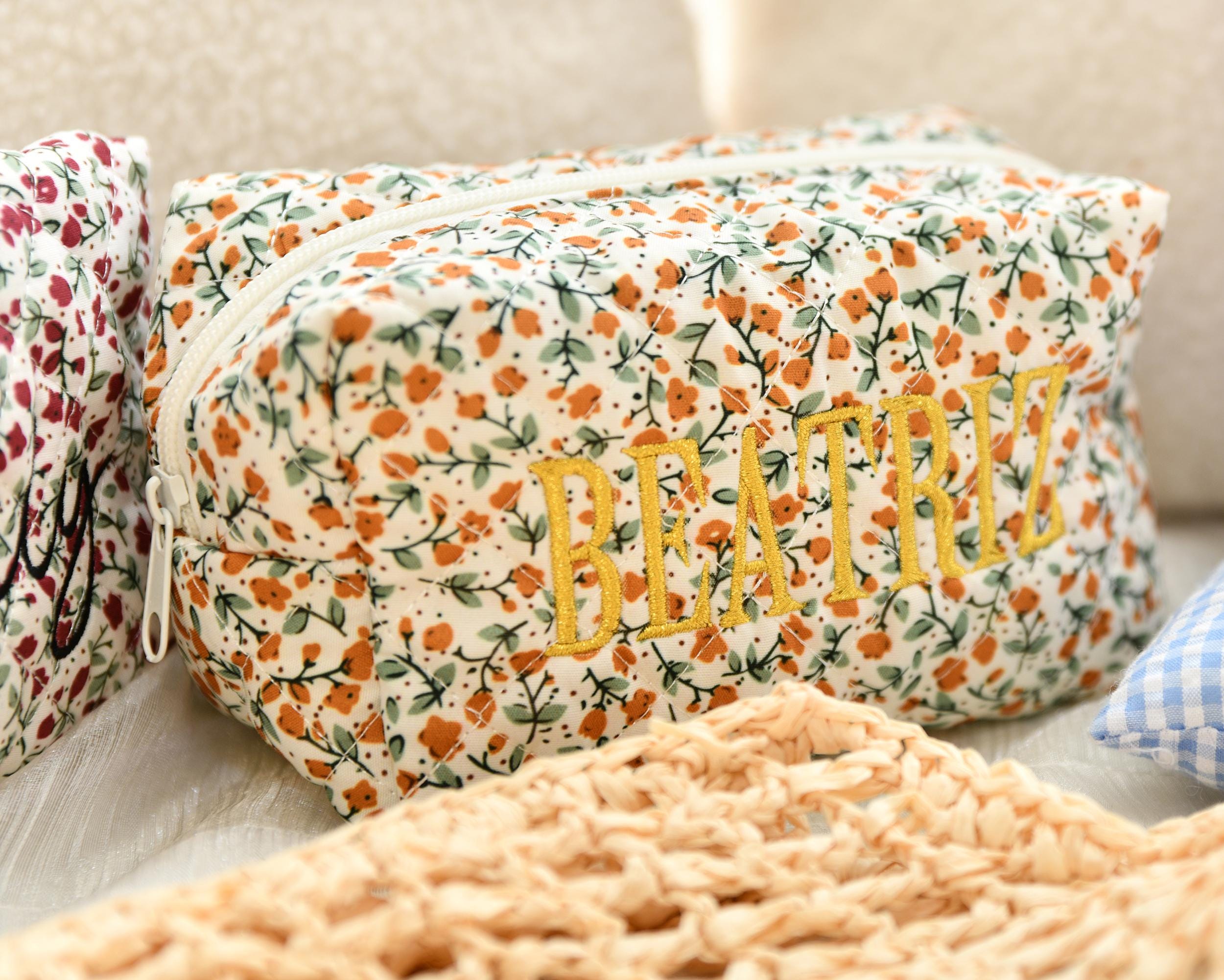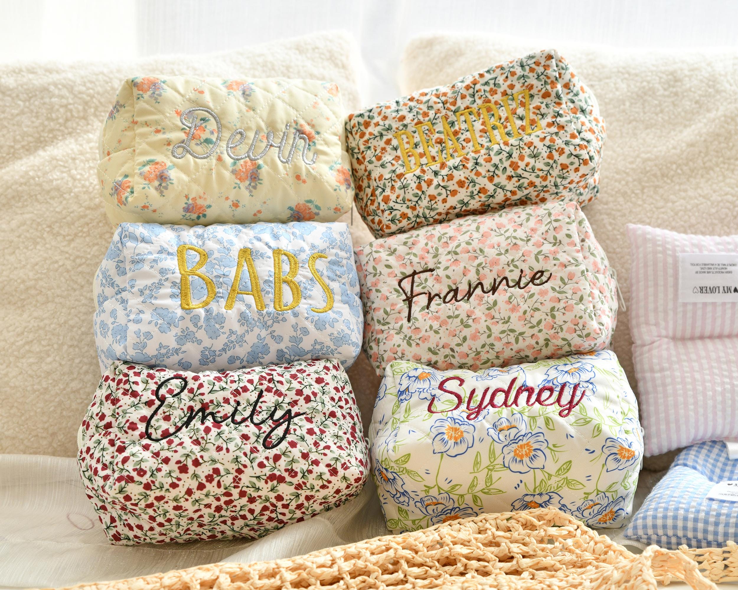 This personalized floral embroidered makeup bag features a beautiful floral pattern and is the perfect gift for bridesmaids, bridal showers, or travel storage. Each makeup bag is carefully made to order and can be customized with your name or initials to add a special touch. Whether you are treating yourself or a loved one, this makeup bag is both stylish and practical, making it the perfect addition to your daily beauty routine.