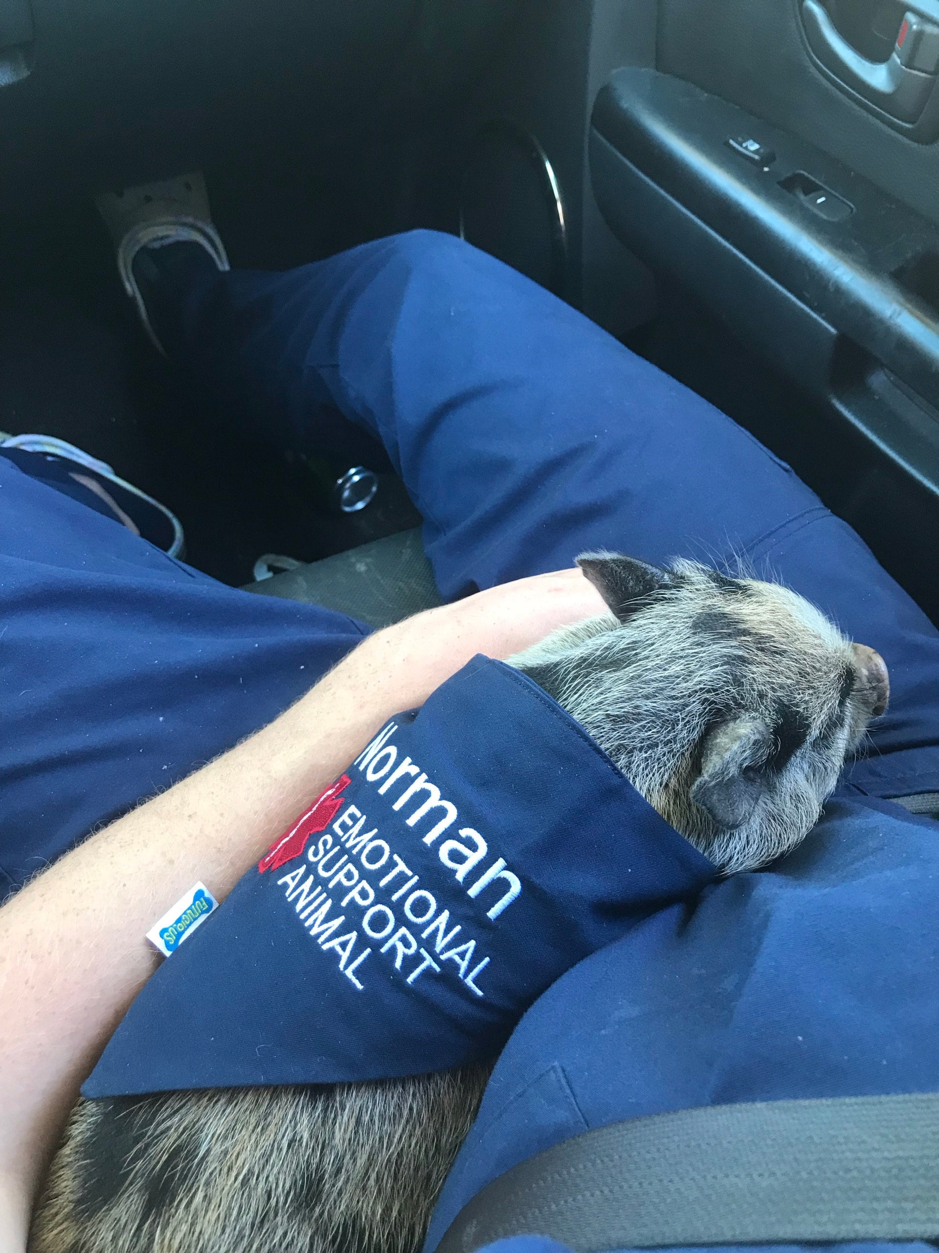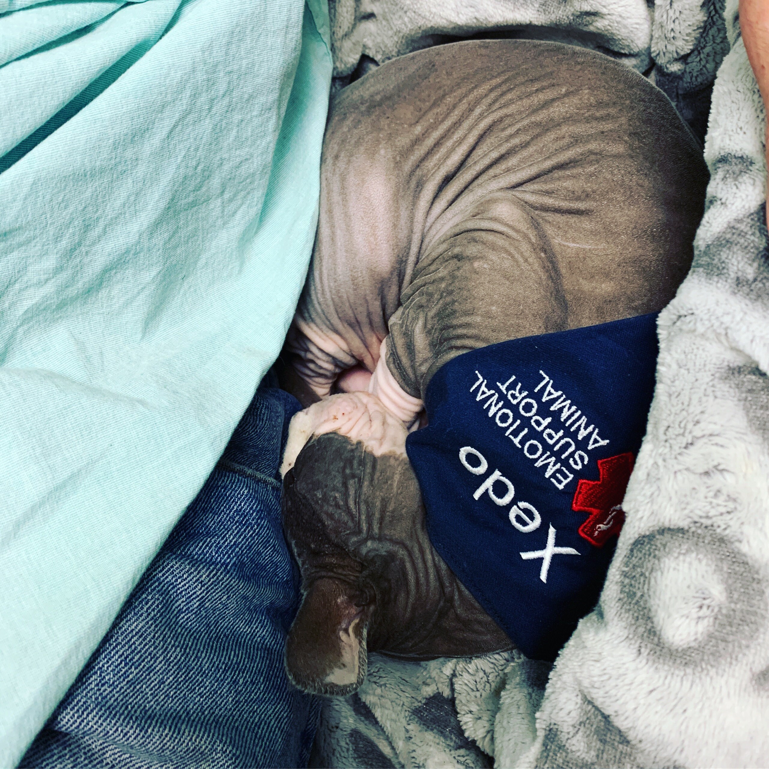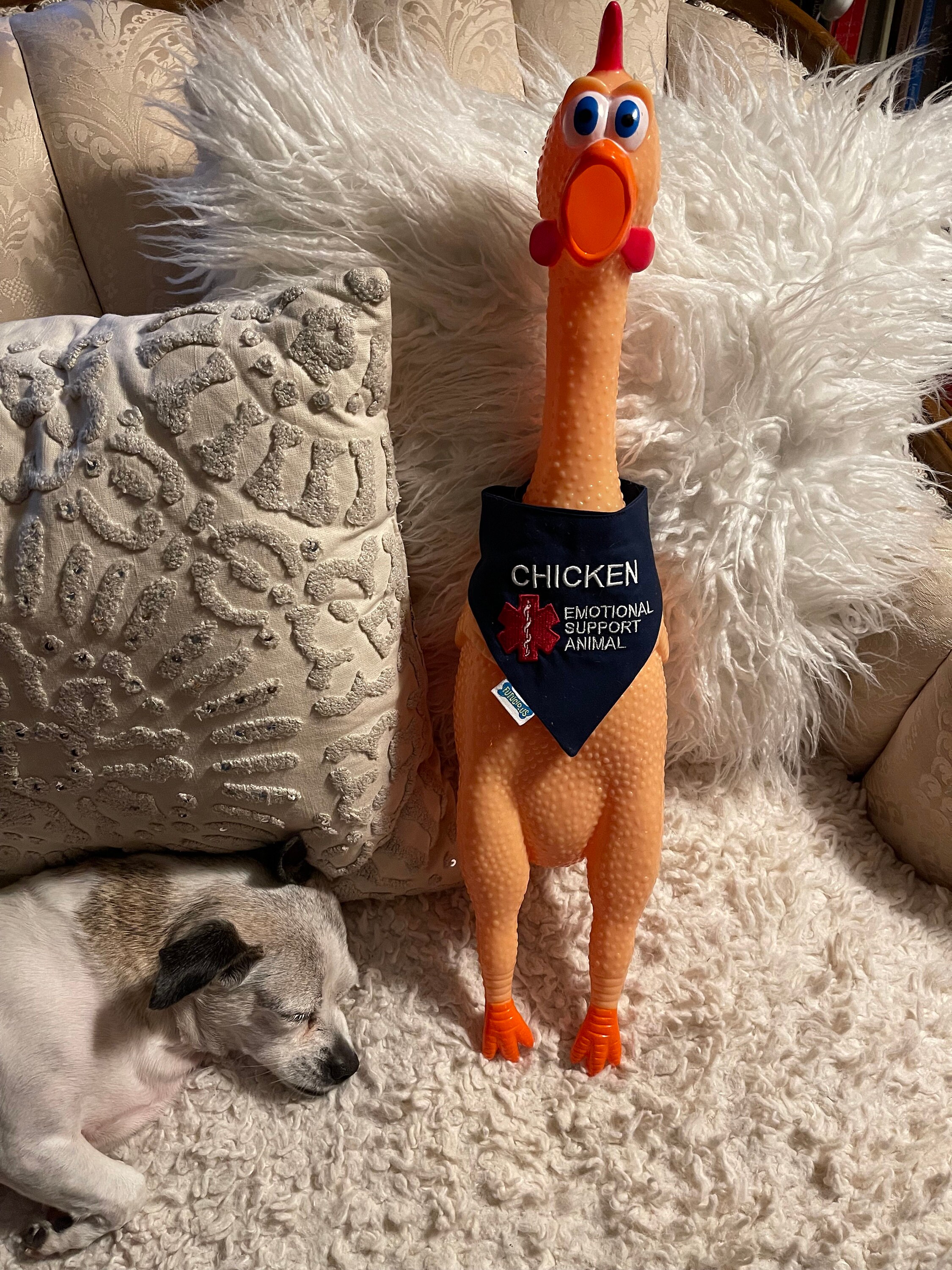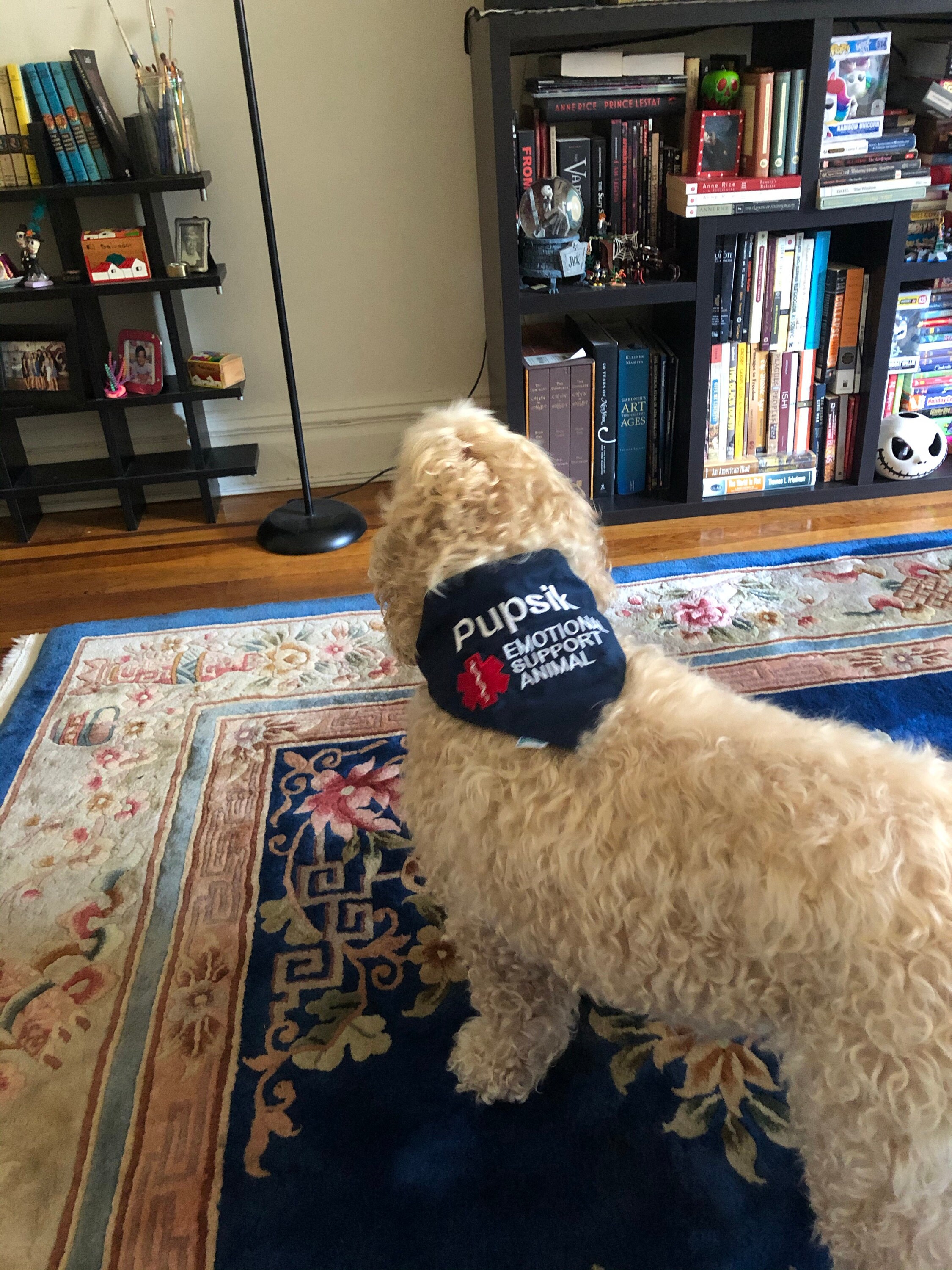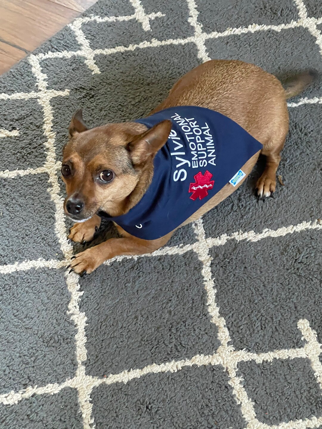 This pet bandana features a 100% cotton fabric front with an emotional support animal-themed print and a reversible 100% cotton back.