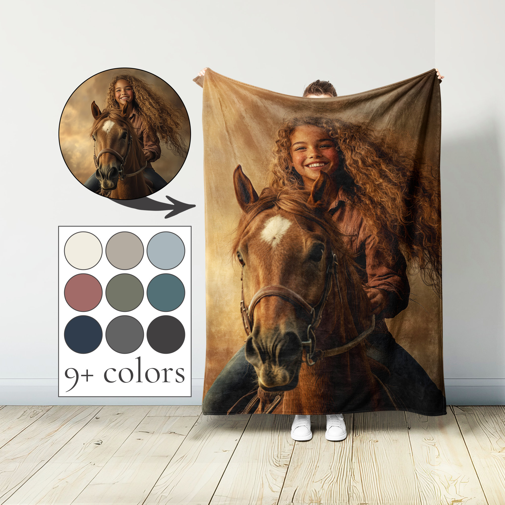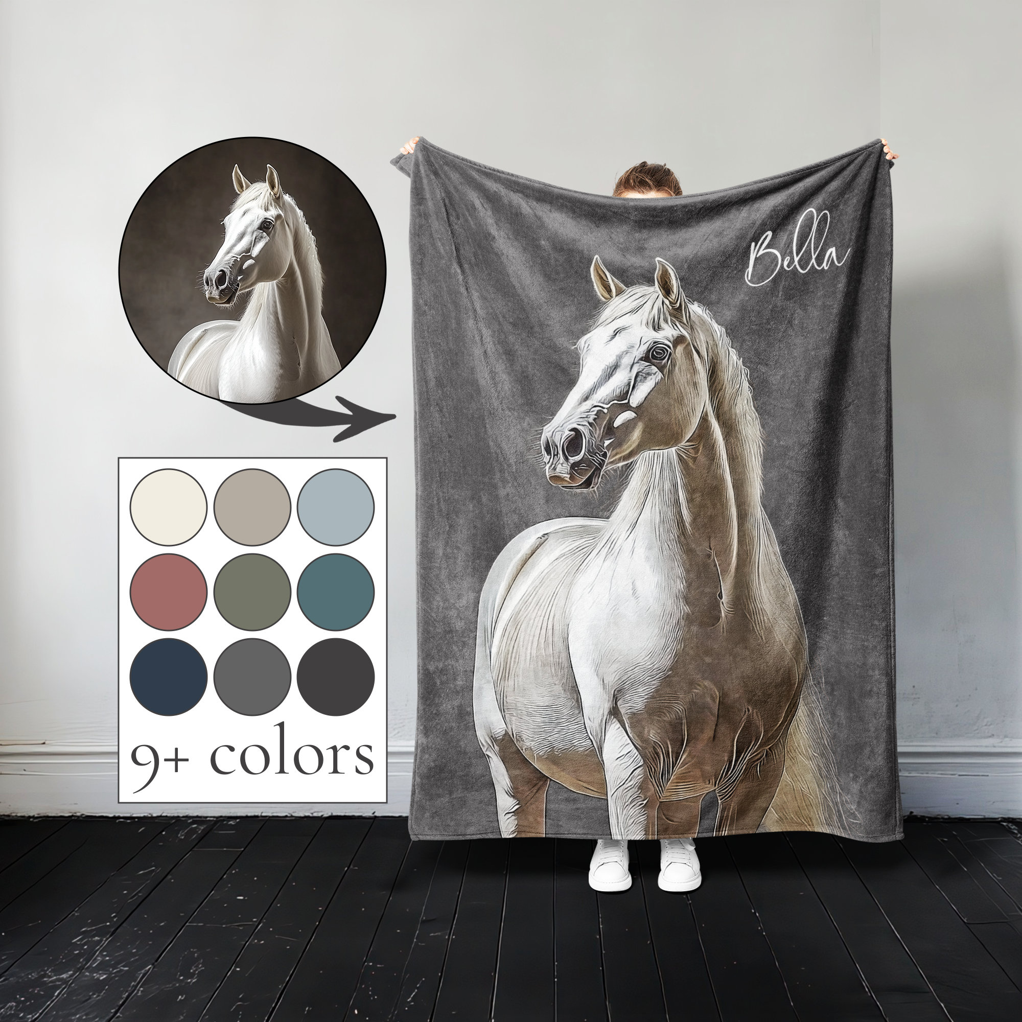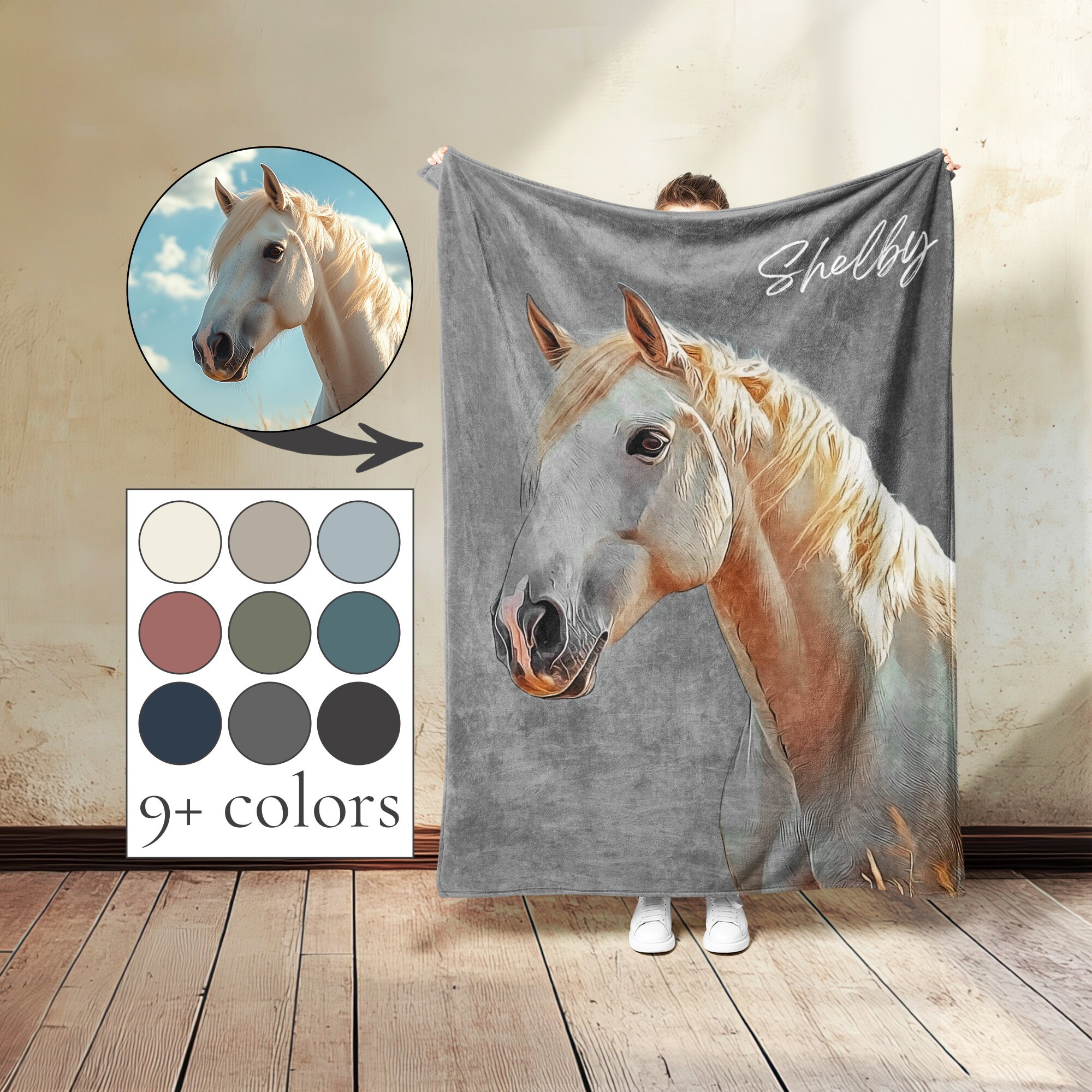 Our custom horse blanket is the perfect gift for any horse lover. Whether used for cozy nights or as a comforting reminder, this blanket is an ideal way to honor the special bond between a person and their beloved horse. It also serves as a thoughtful memorial gift for those mourning the loss of their four-legged companion.