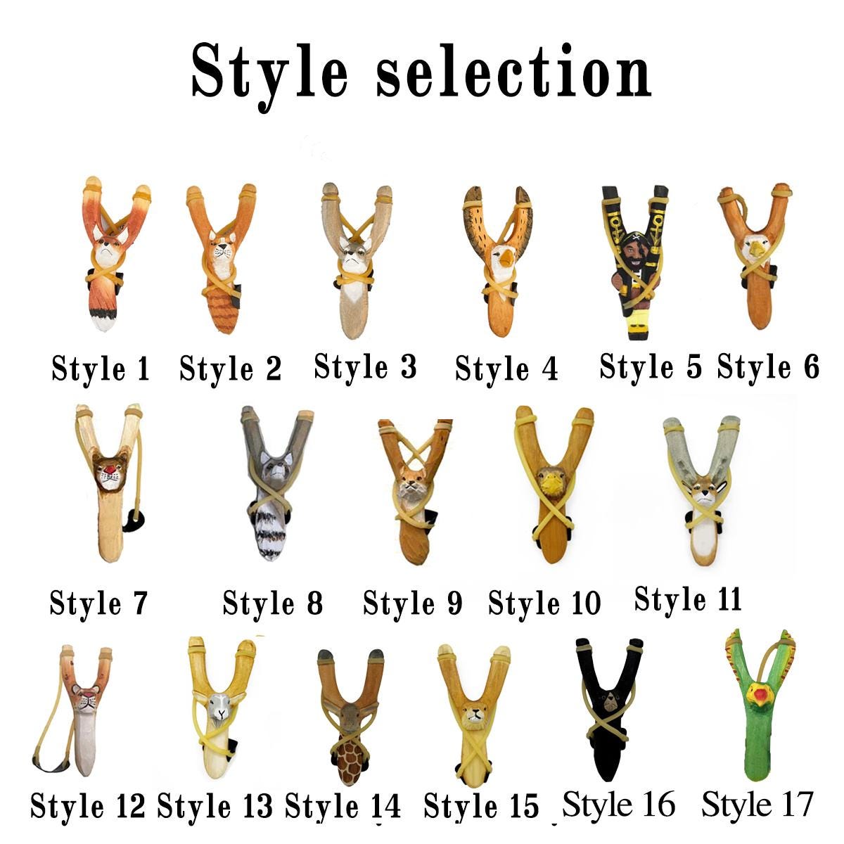 🧶This slingshot perfectly embodies the charm of traditional craftsmanship. Each animal figure is meticulously painted by skilled artists using environmentally friendly pigments. This design not only fully ensures user safety but also makes each animal appear lifelike, as if it could leap from the slingshot at any moment.