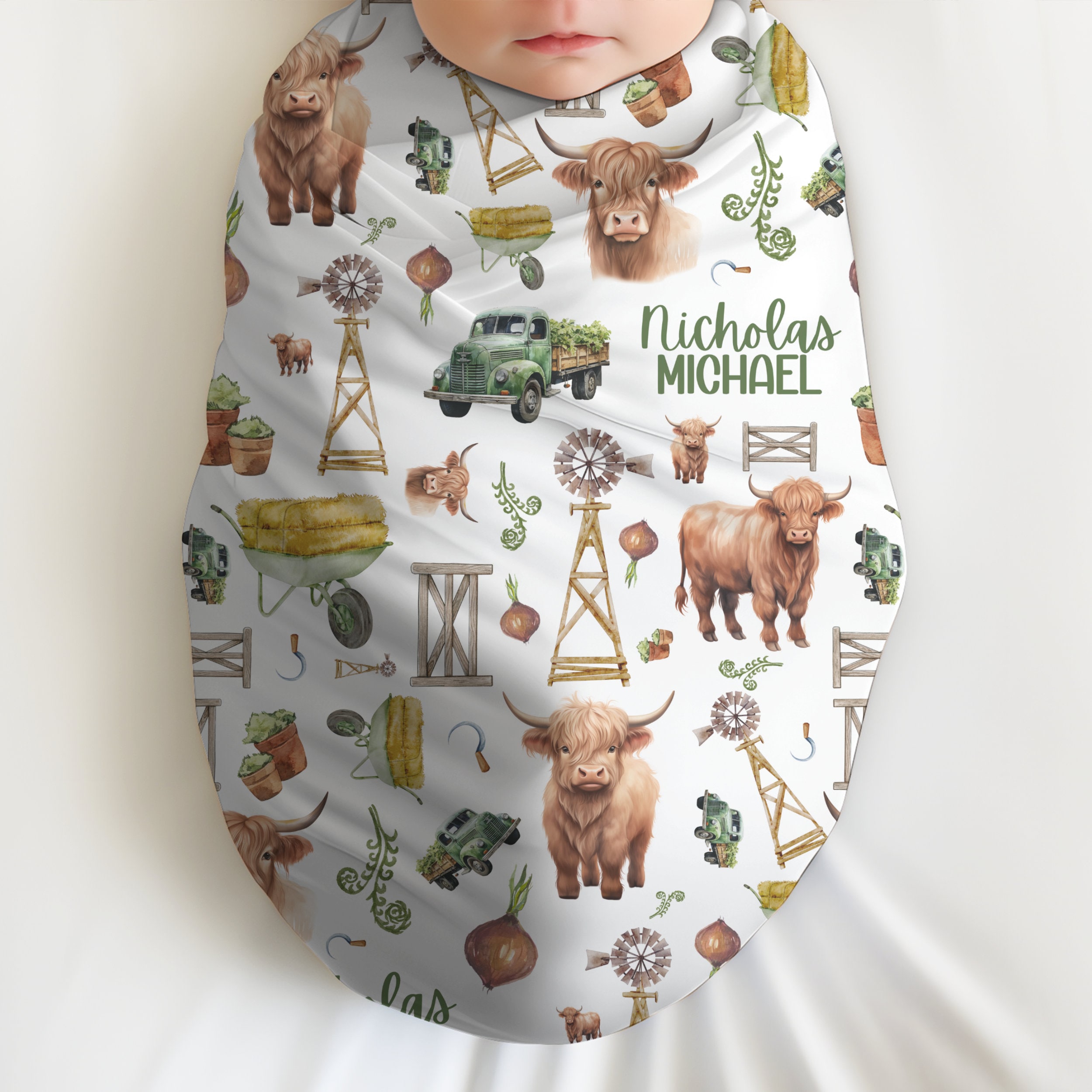 -Please wash/dry your Personalized Highland Cow Baby Swaddle before use. High heat and pressure are used to adhere the ink.