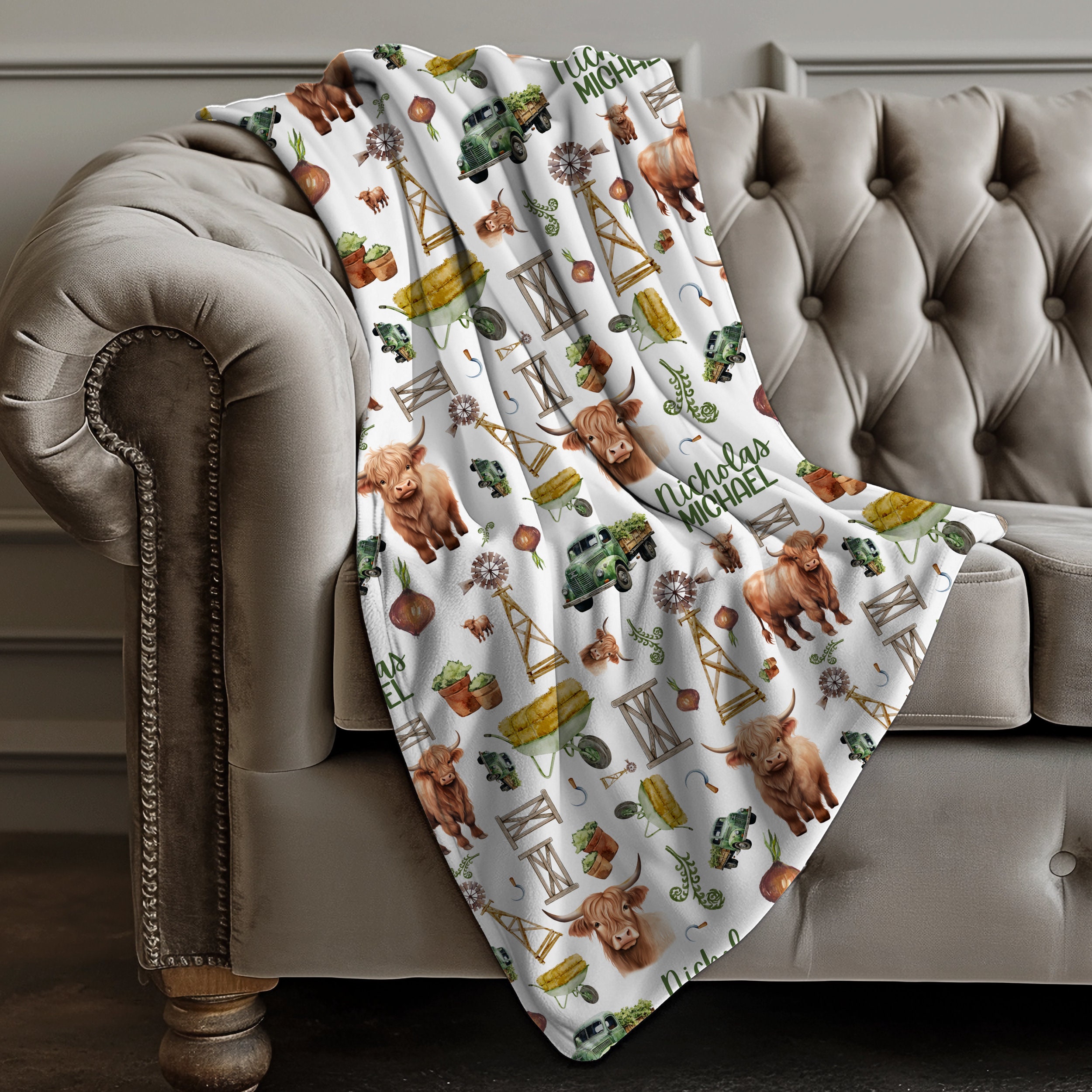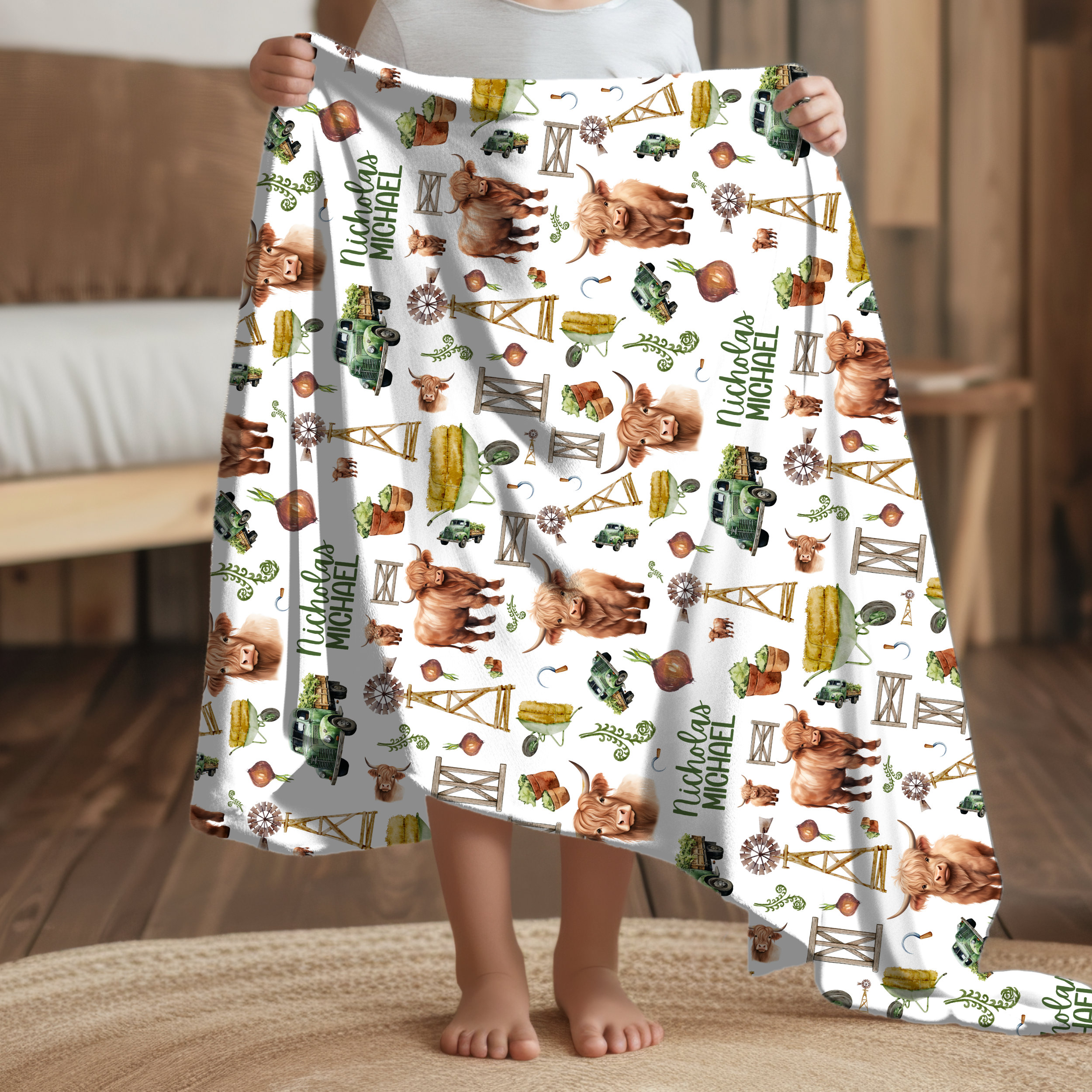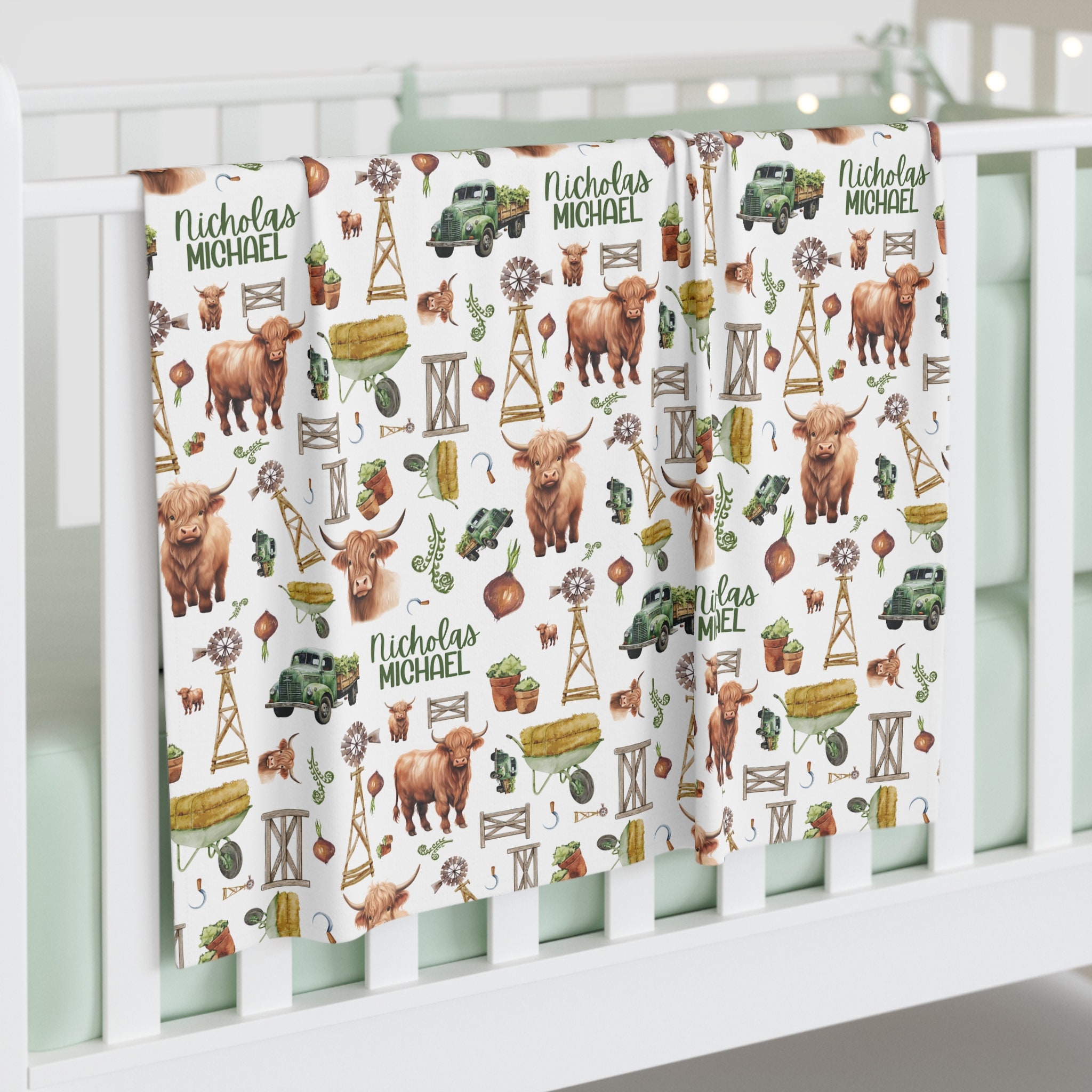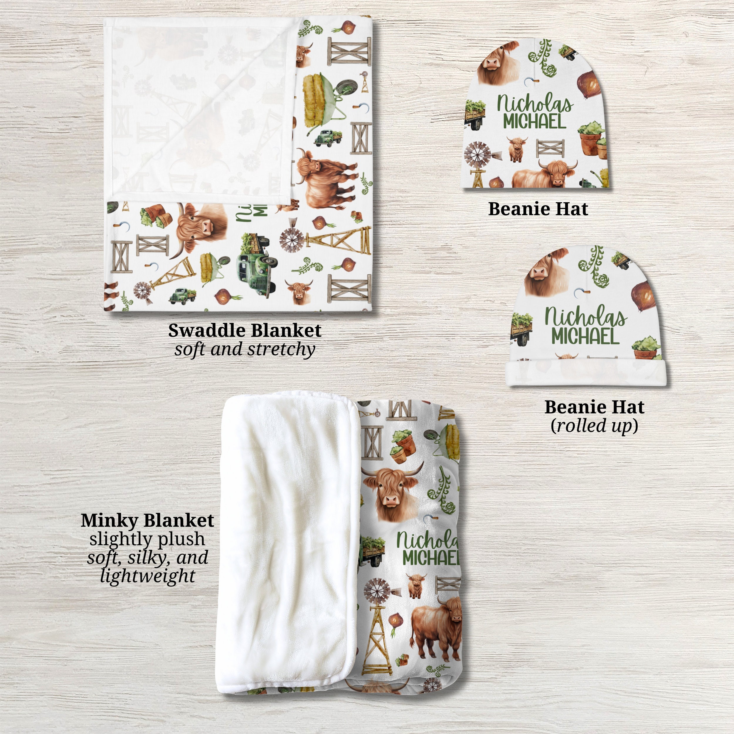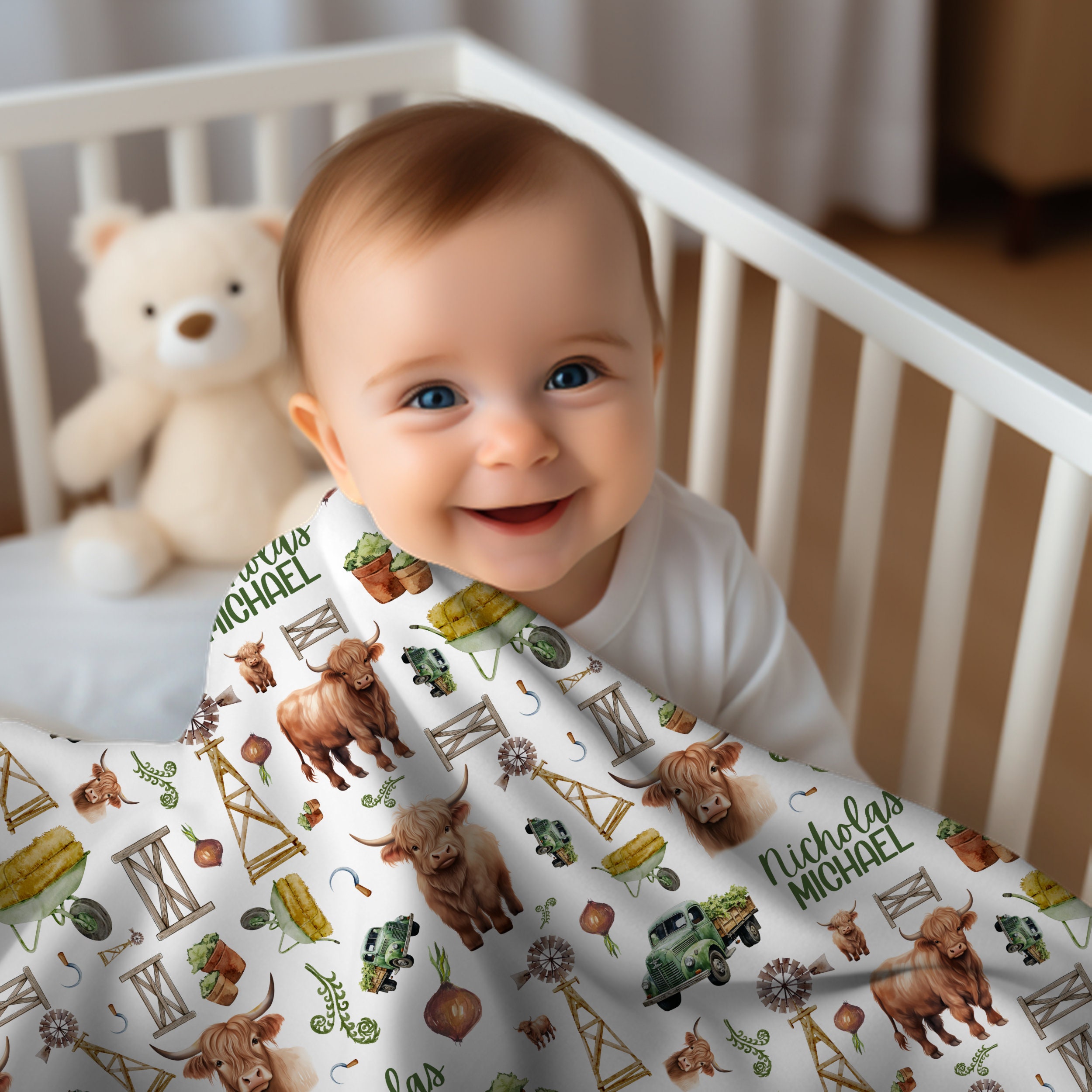 Perfect for your precious newborn, these beautiful cow-themed blankets are adorned with adorable highland cow designs.