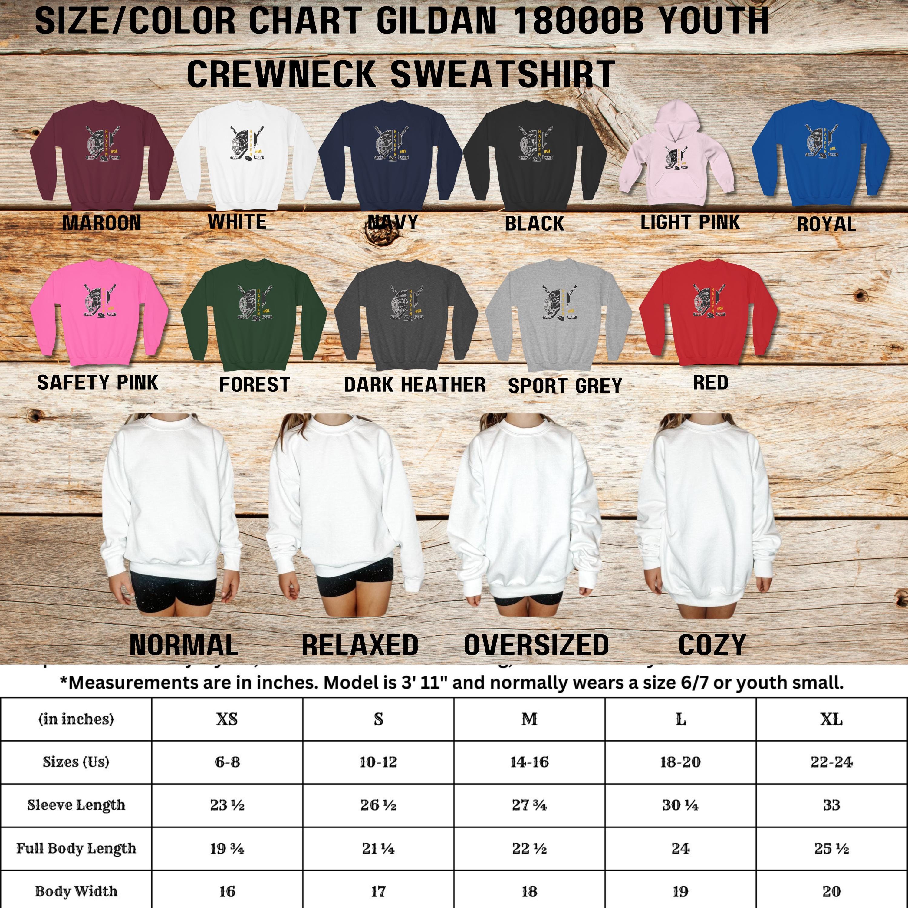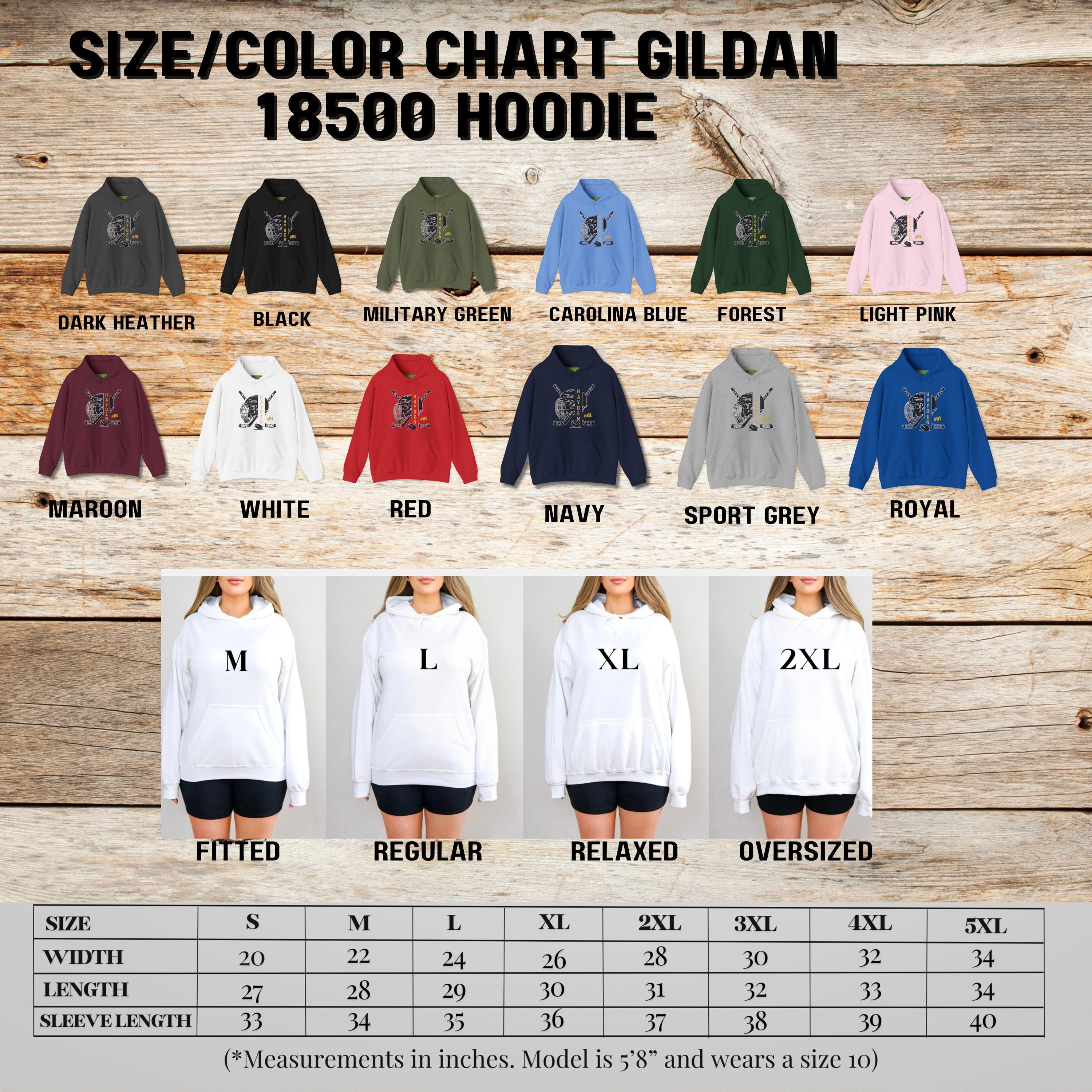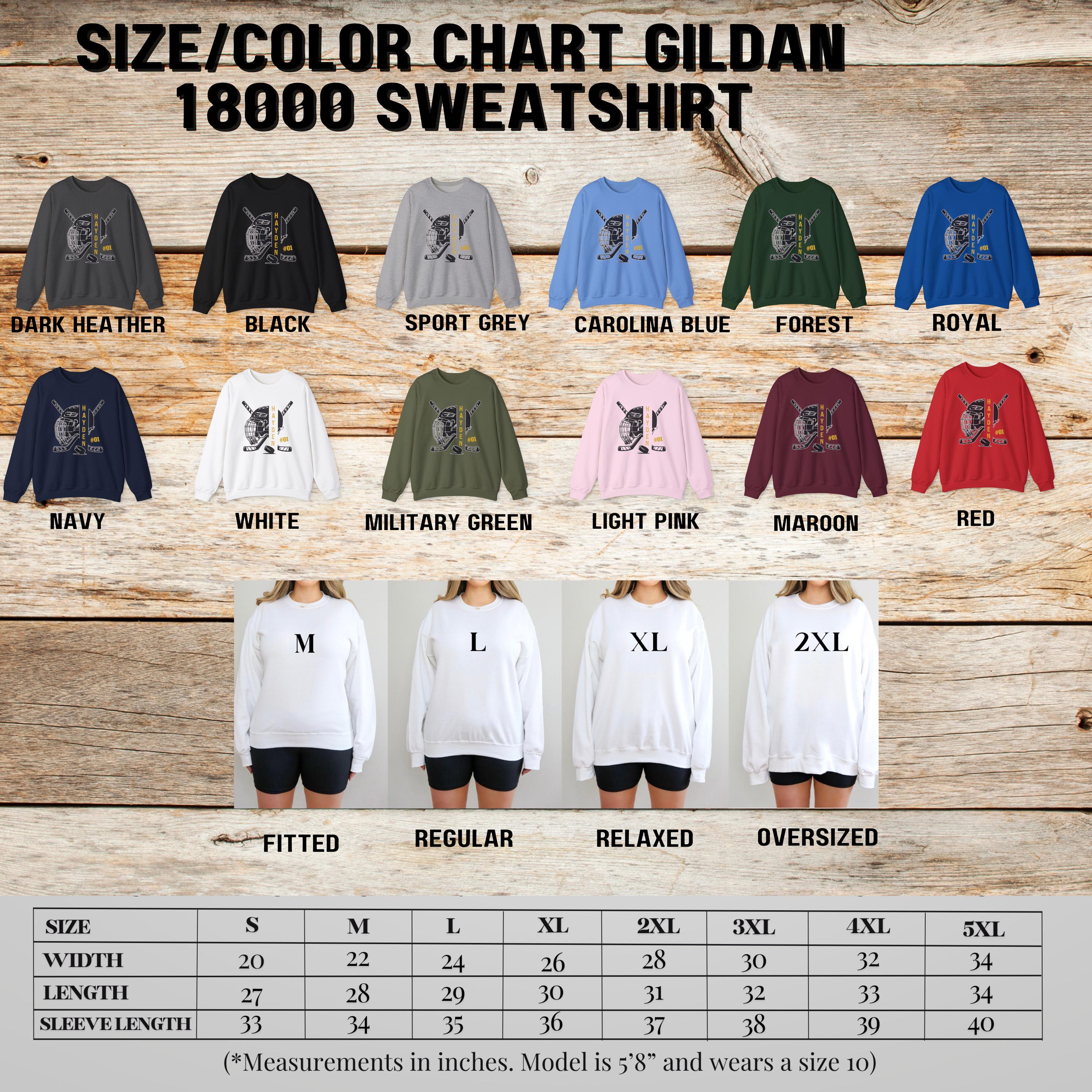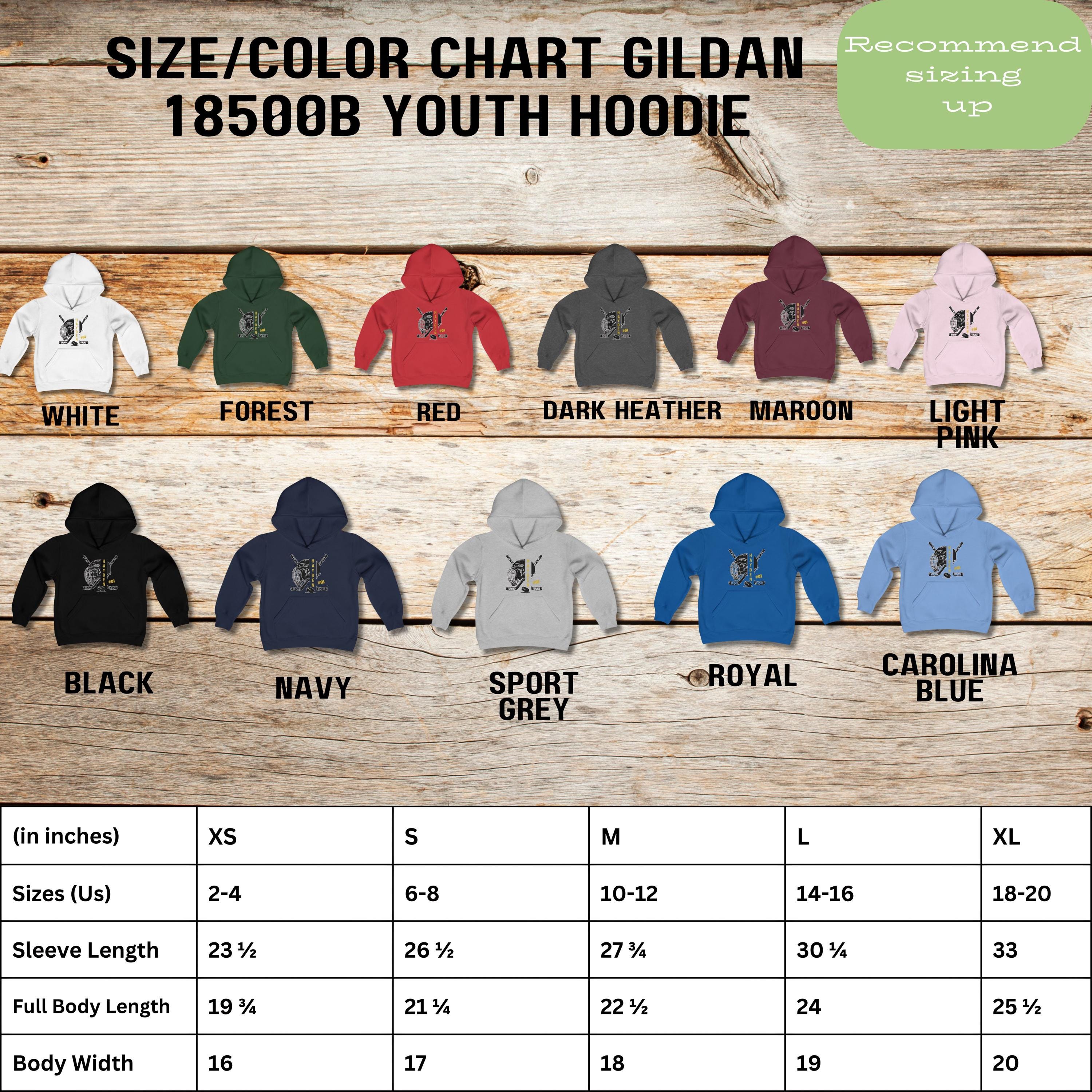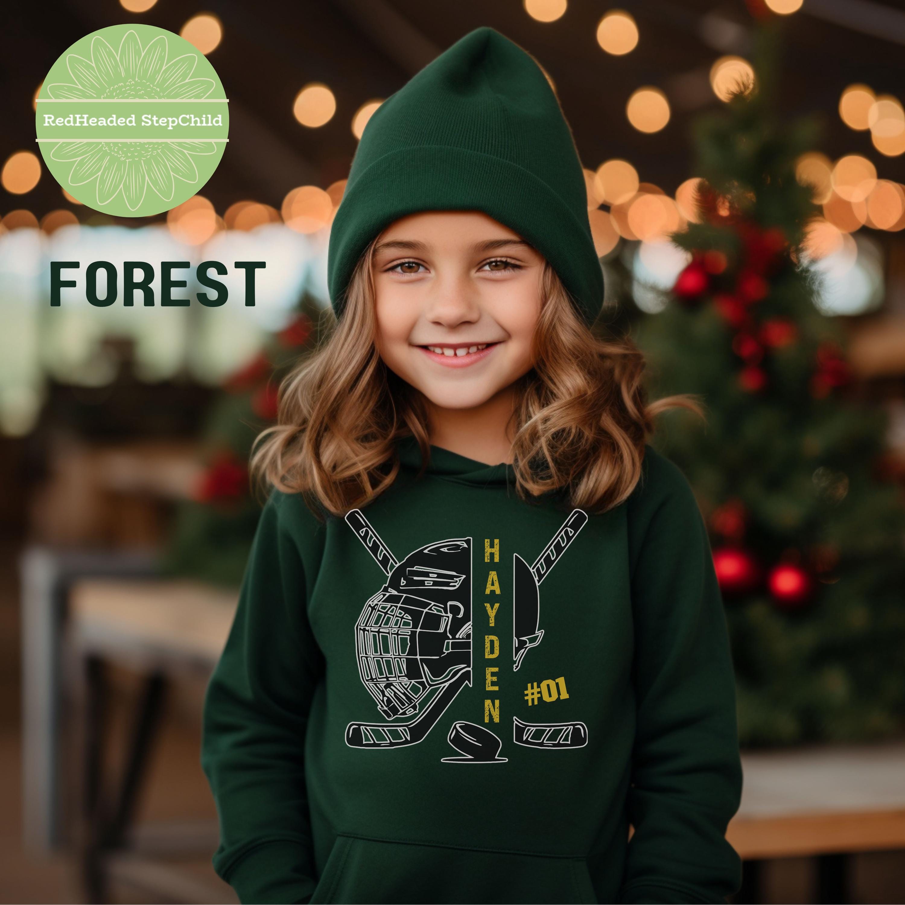 Show your hockey team spirit with a personalized hockey hoodie or sweatshirt. Customize the front name and number. Available in adult and youth size.