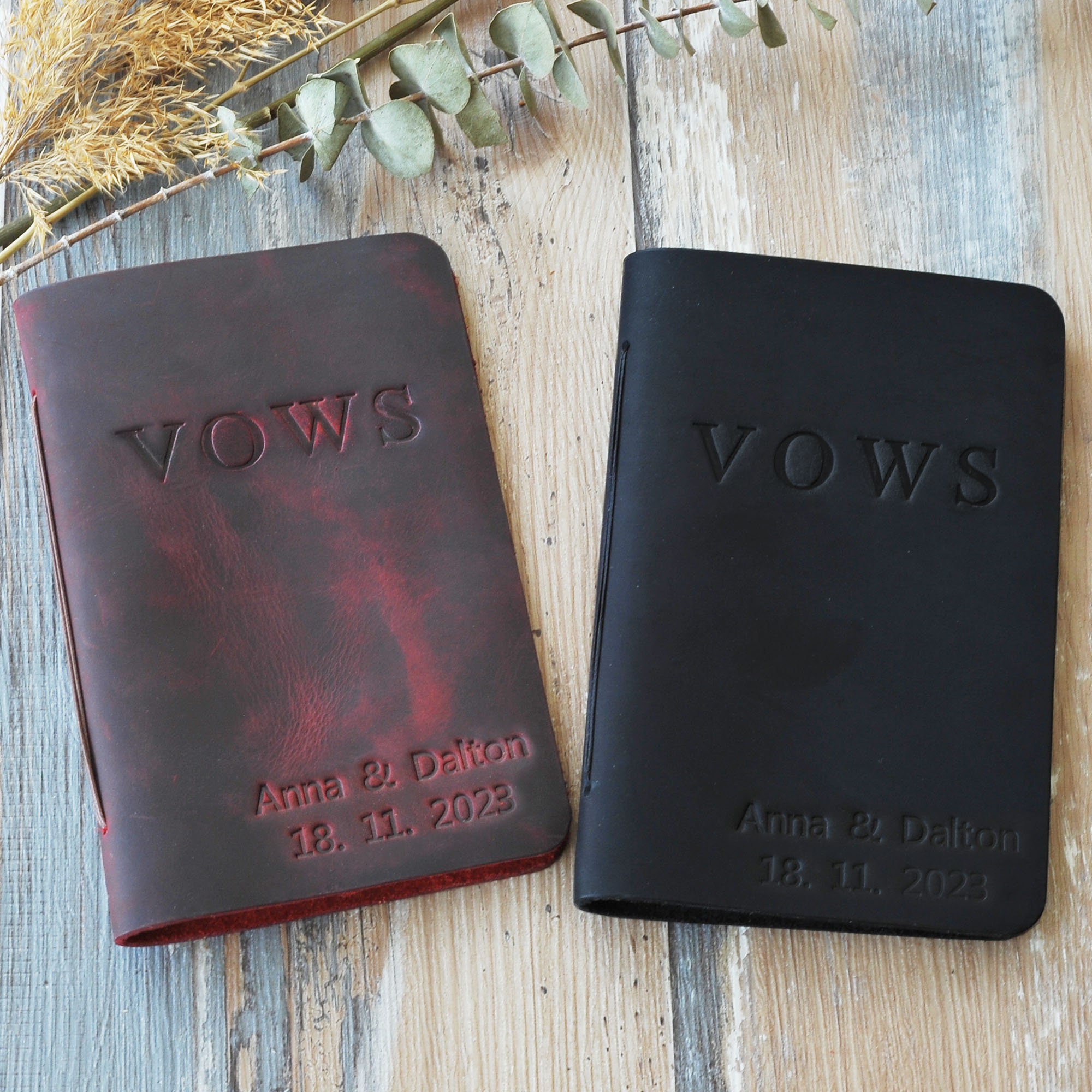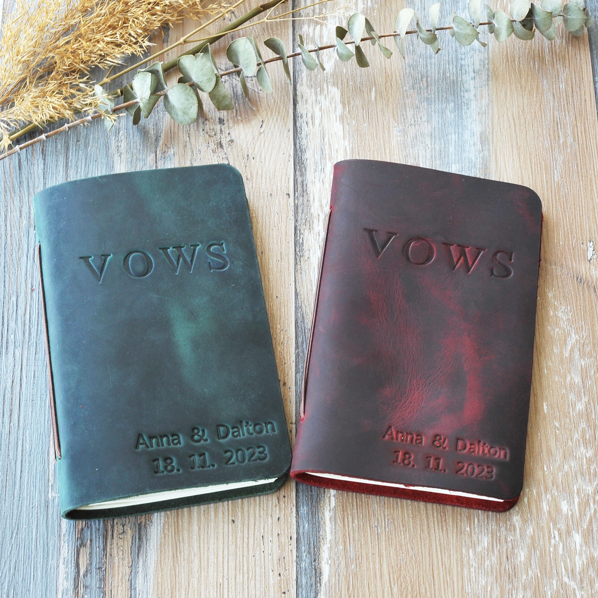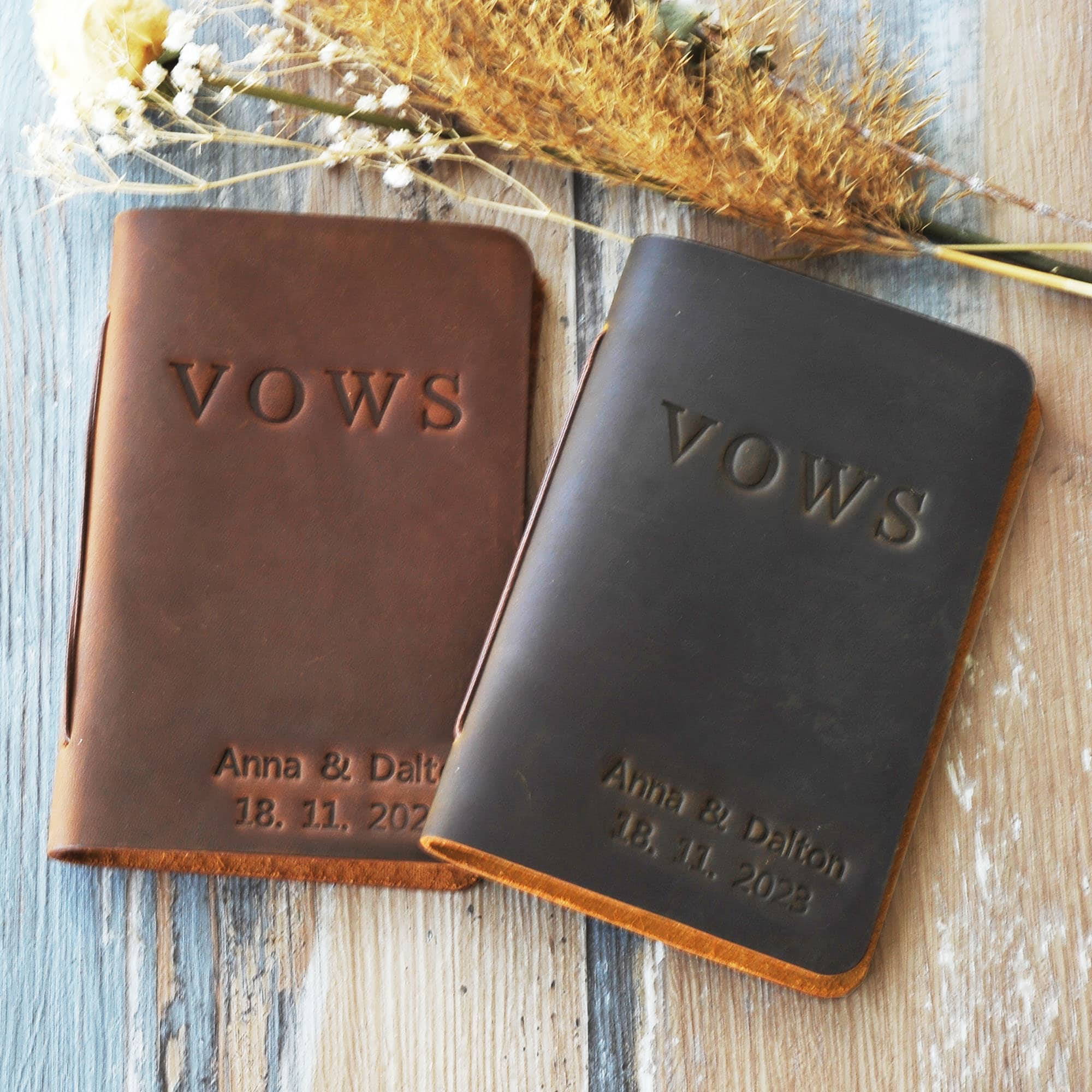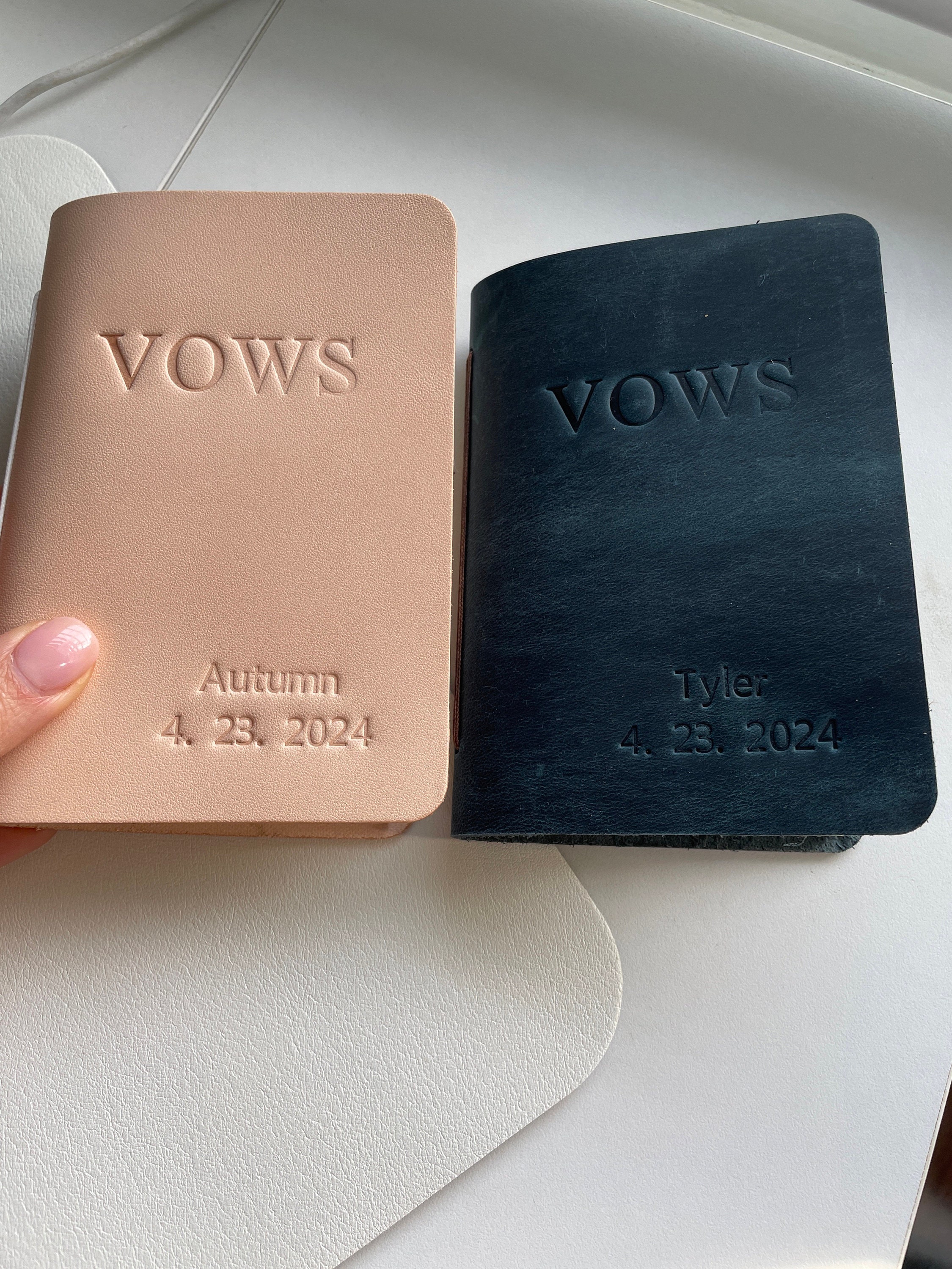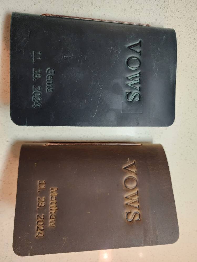 This customizable leather vow book is made from premium, full-grain leather and high quality acid free paper. You can personalize them with the names, date, texts and colors that you want. Customize for your wedding day, Also makes a great bridal shower gift for the couple!