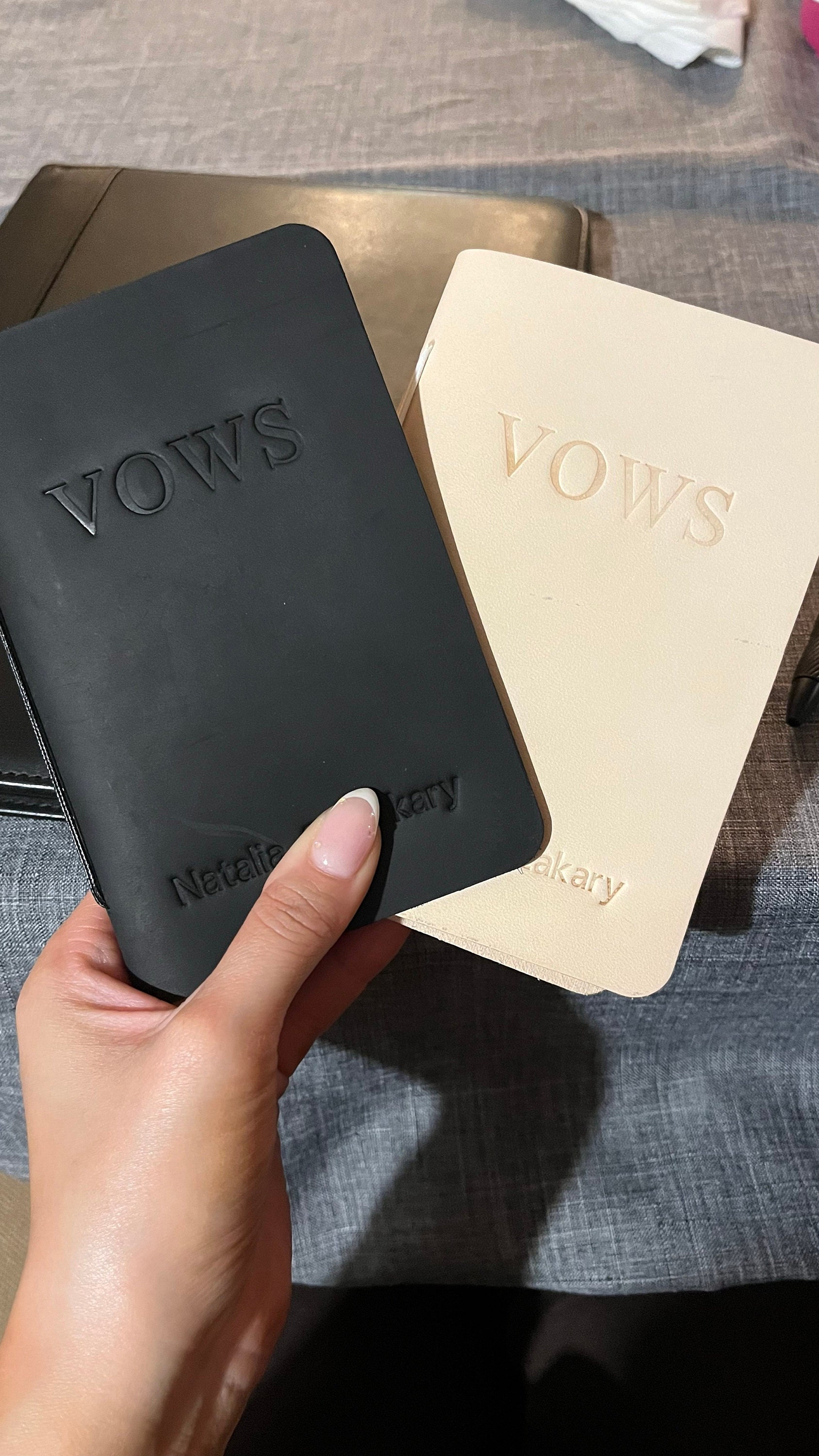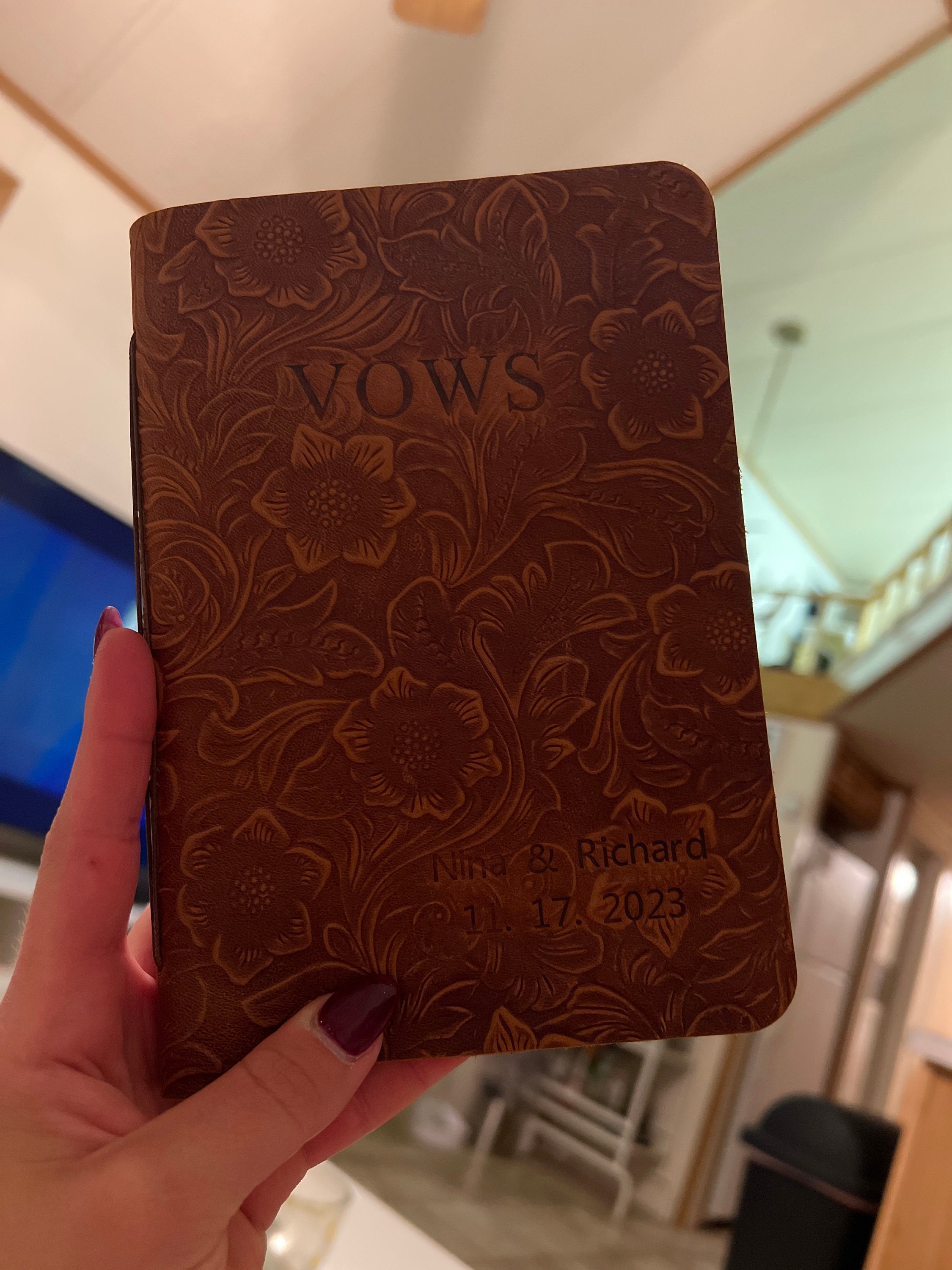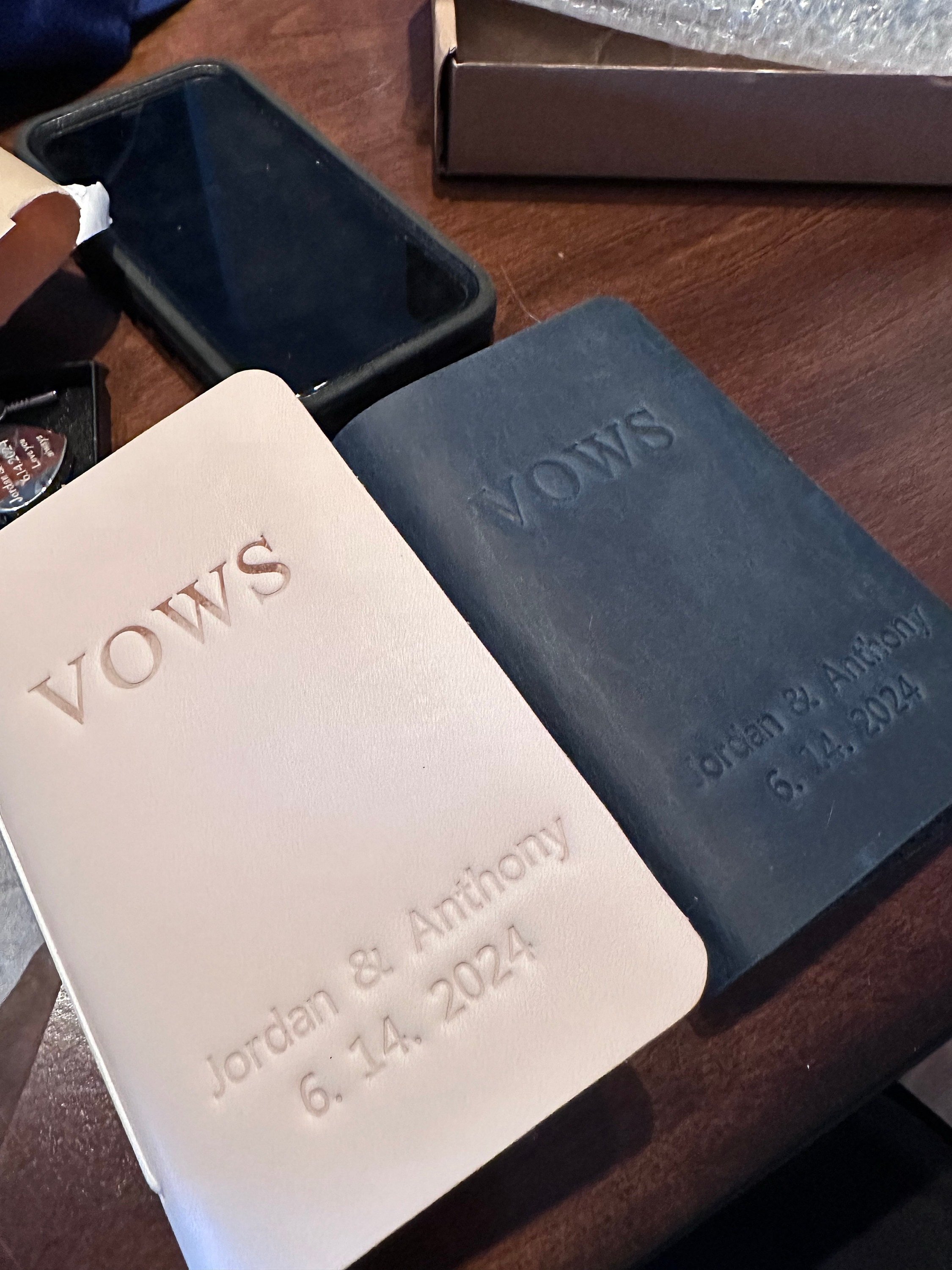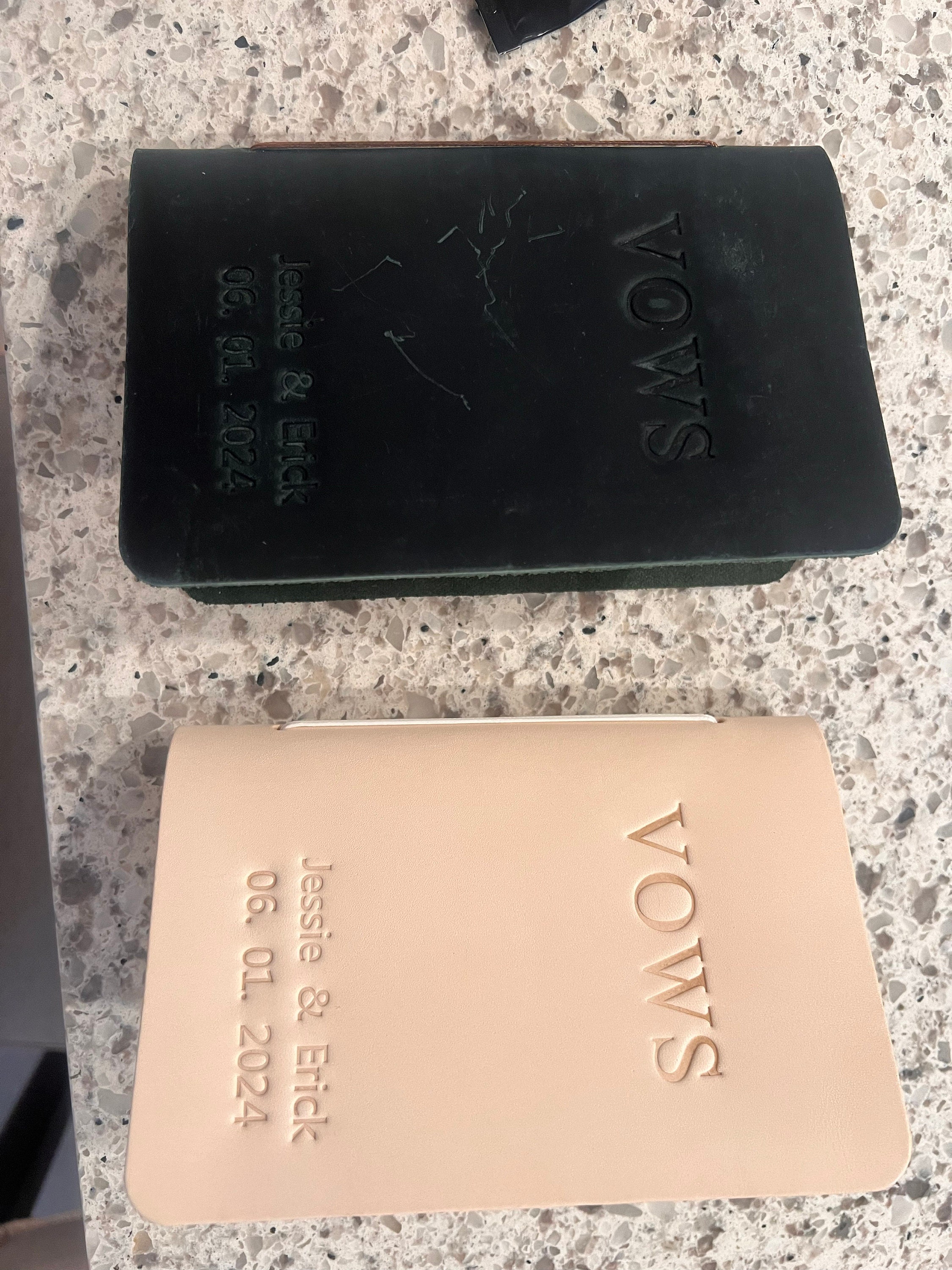 This customizable leather vow book is made from premium, full-grain leather and high quality acid free paper. You can personalize them with the names, date, texts and colors that you want. Customize for your wedding day, Also makes a great bridal shower gift for the couple!