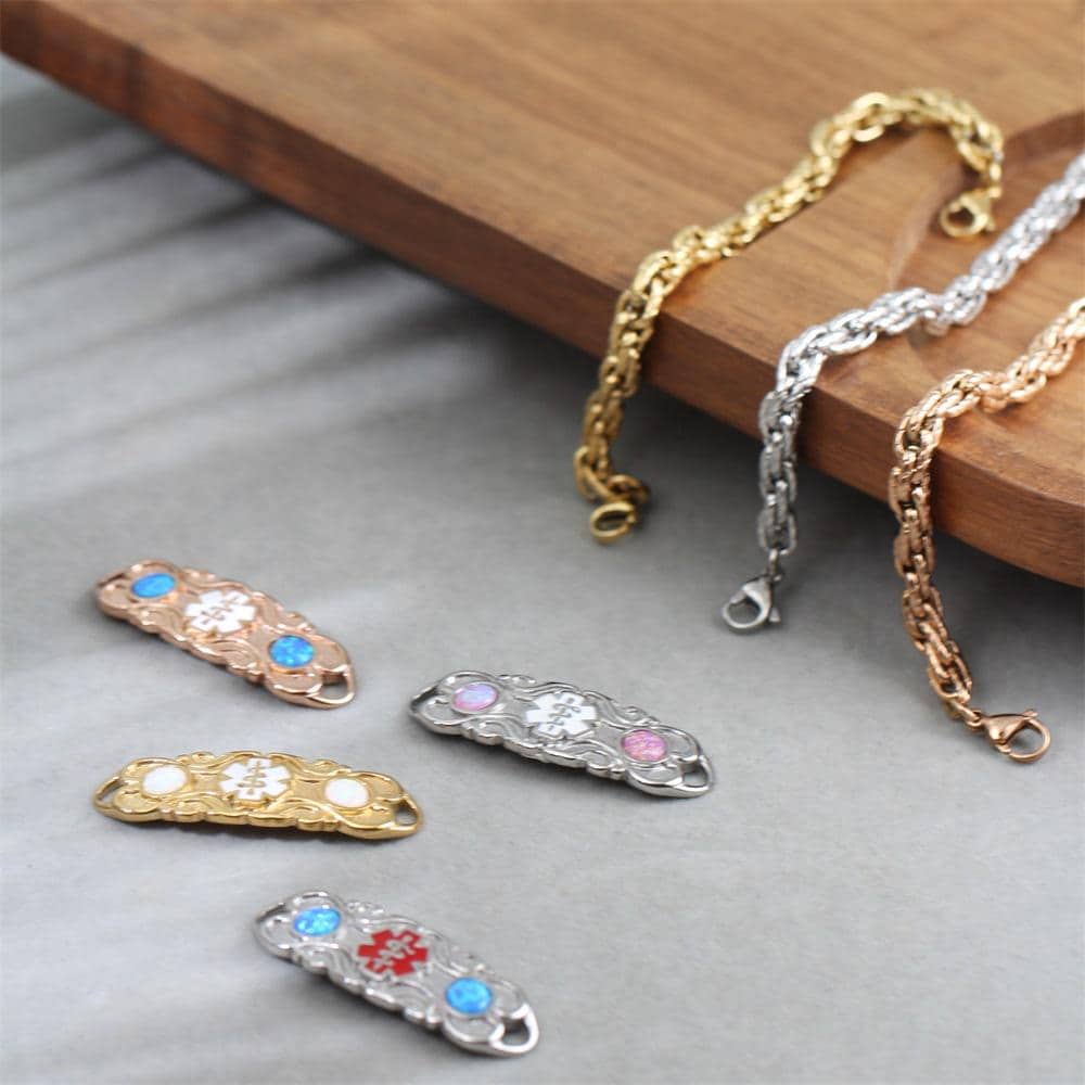 ✨Fashionable Design: Our Medical Alert Bracelets with Opal Stone for Women feature elegant designs suitable for any occasion. No need to compromise style for your health anymore.