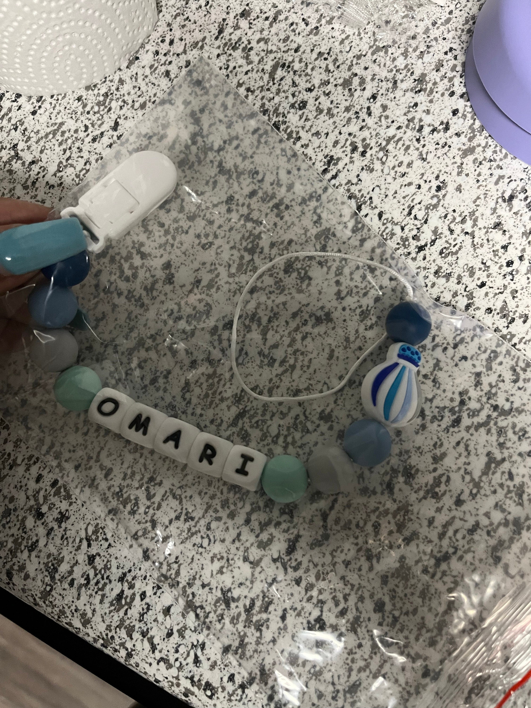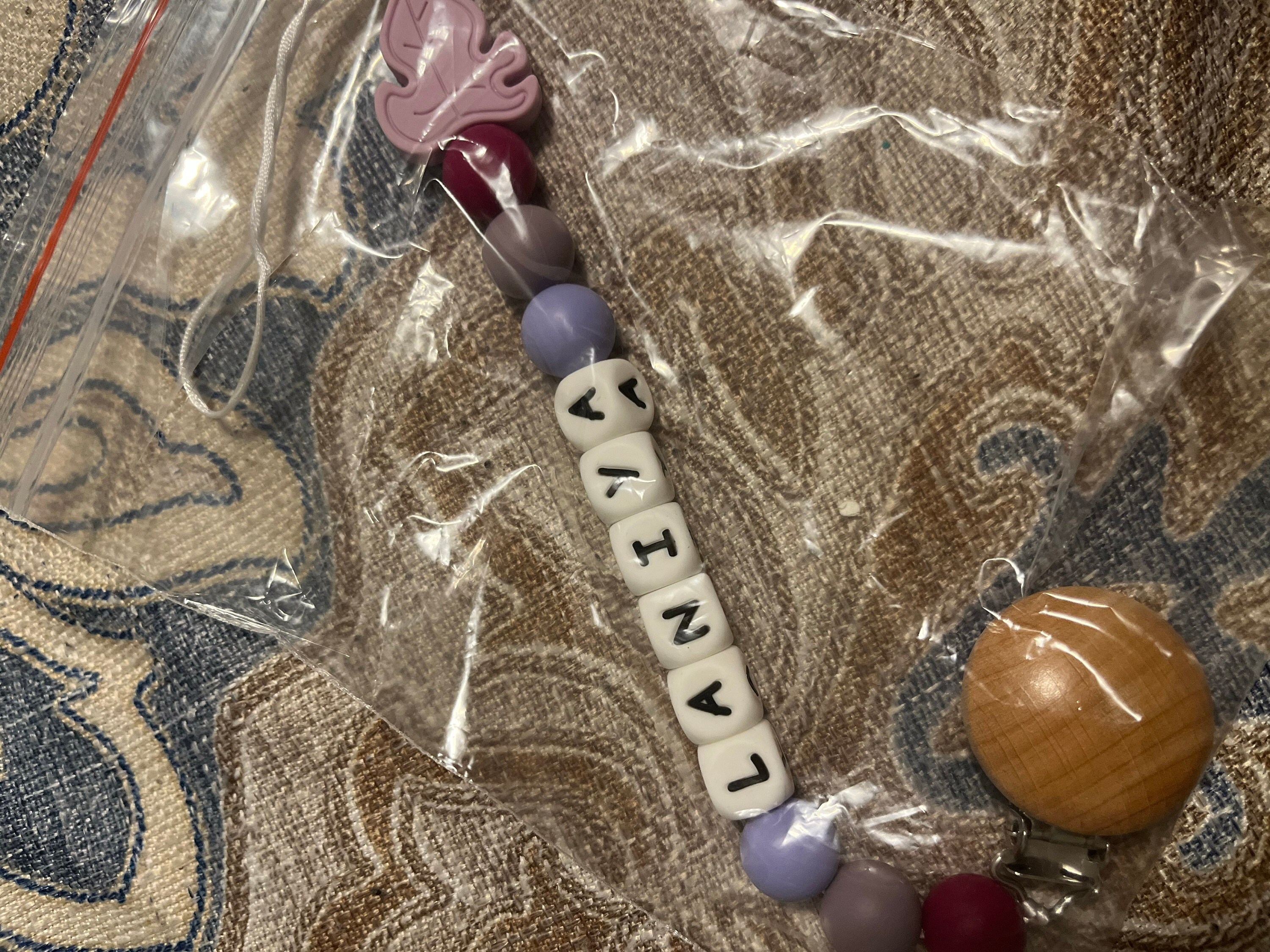 Personalized pacifier clips are handcrafted by hand, all beads and inscriptions are made of BPA-free silicone! Everything is created with non-toxic or harmful chemicals, is hygienic, hypoallergenic, and bacteria resistant.