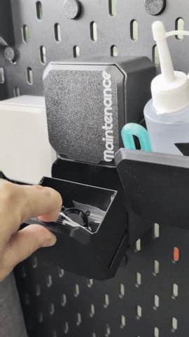 It features specially designed sliding and tilting rails that allow it to be safely tilted into a very convenient and accessible position. It can be removed and grabbed in one motion to easily access the contents, and it can be slid back into place just as easily.