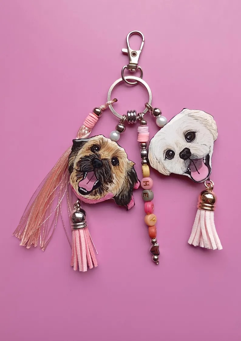 Give your handbag a unique, personal touch with our hand-painted custom pet portrait bag charm. Each charm is carefully crafted from your photo and transformed into an adorable portrait of your dog, cat, or any beloved pet — complete with their name if you’d like.