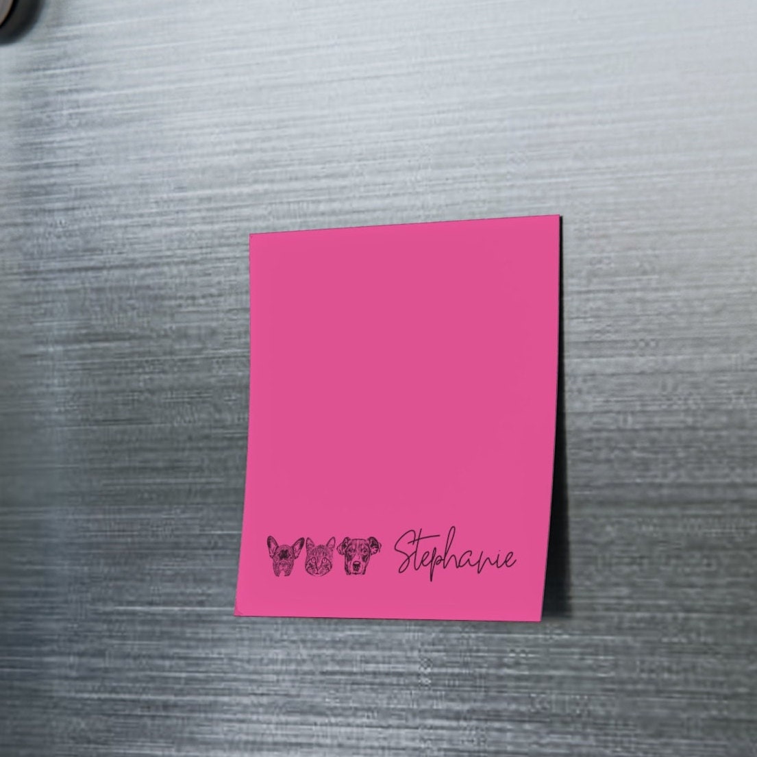 Introducing our personalized pet notepad stationery sticky notes! Keep your notes organized and add a touch of your furry friend with our custom design. Our notepads are made with high-quality 75.2 gsm white uncoated paper and 3M Post-it Note adhesive. Choose from 7 different sizes to fit your needs, and each notepad includes 50 sheets.