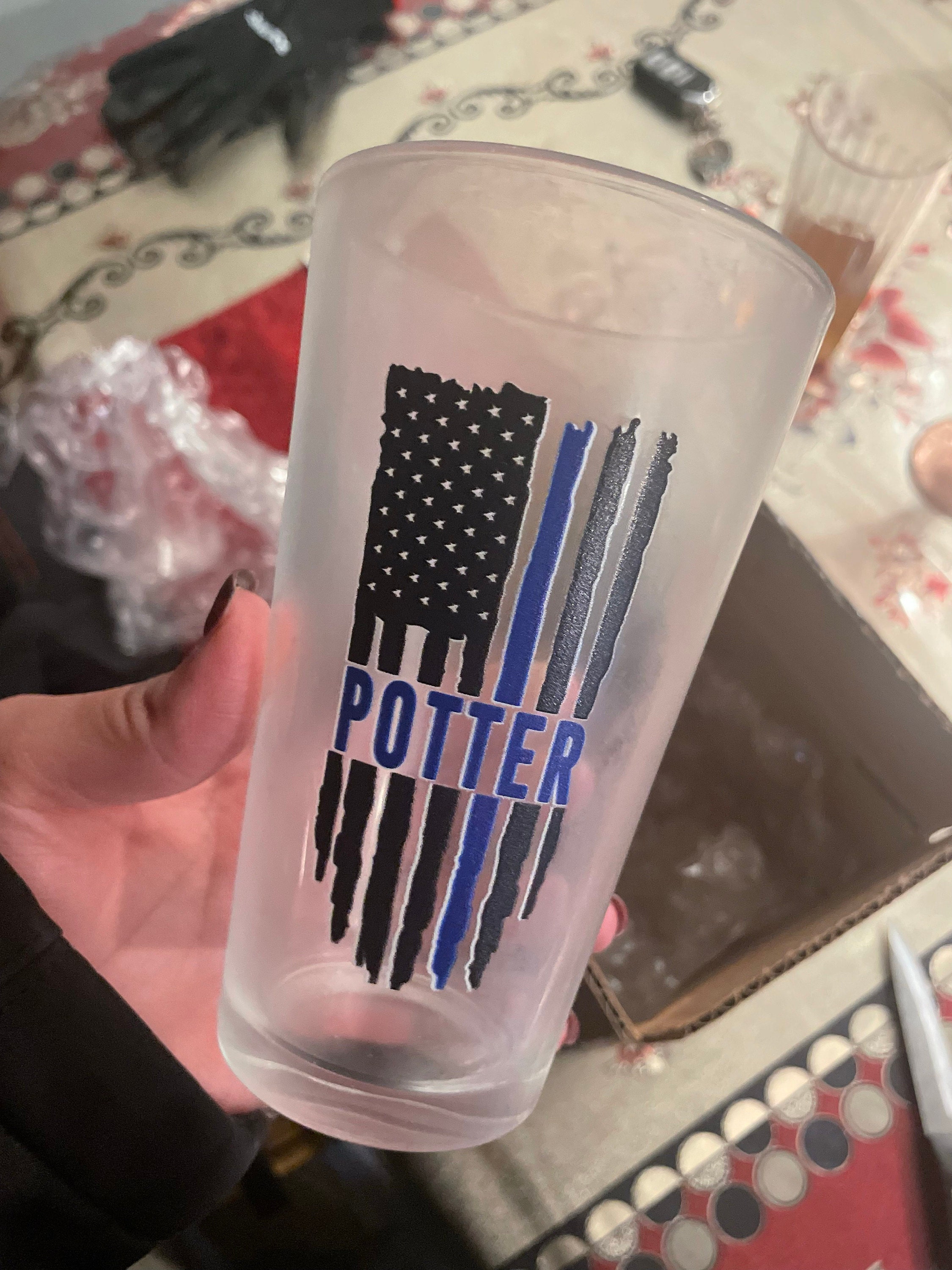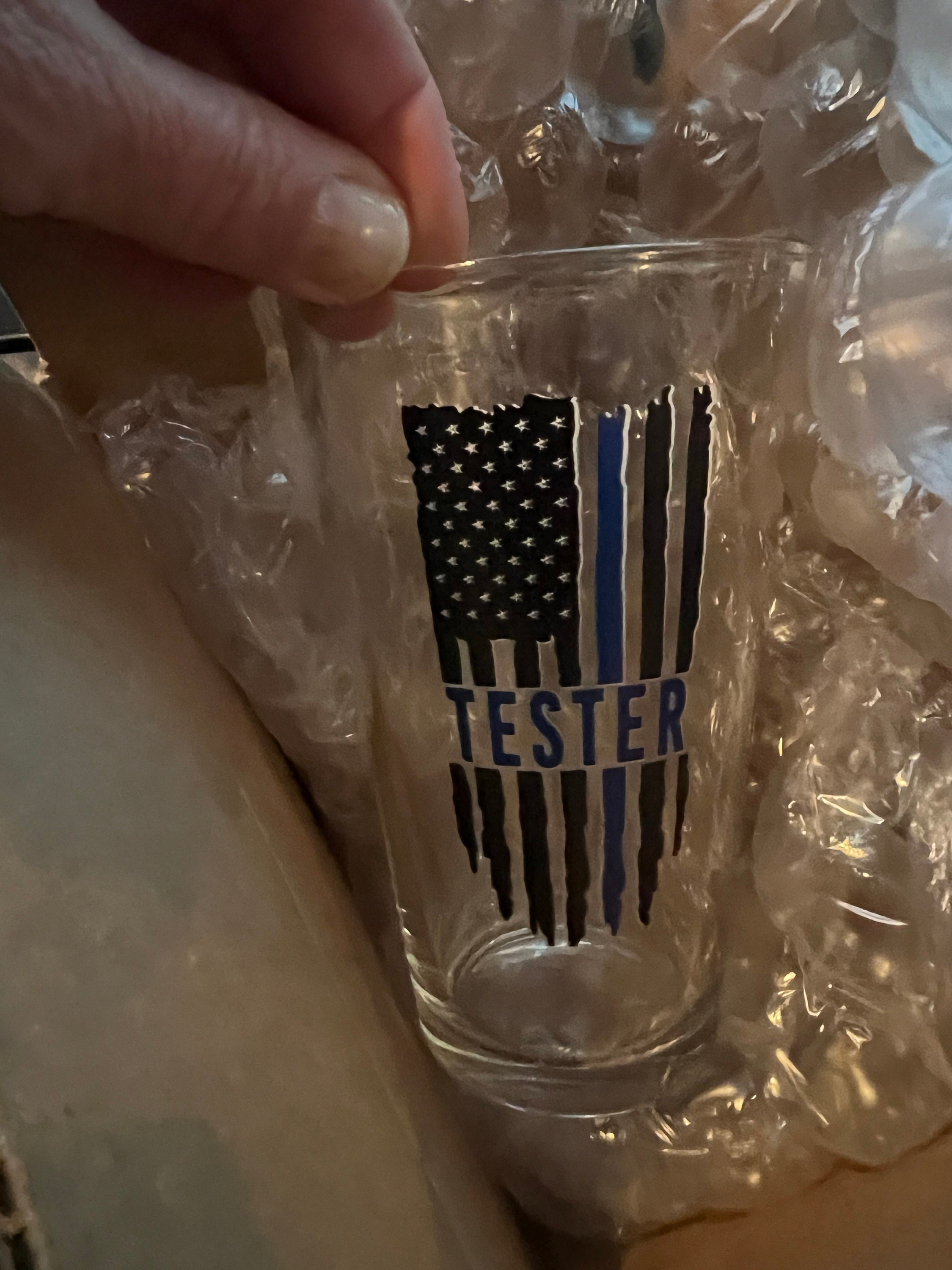 - The glass can be personalized with custom text, allowing you to add a name, badge number, or any other special message.