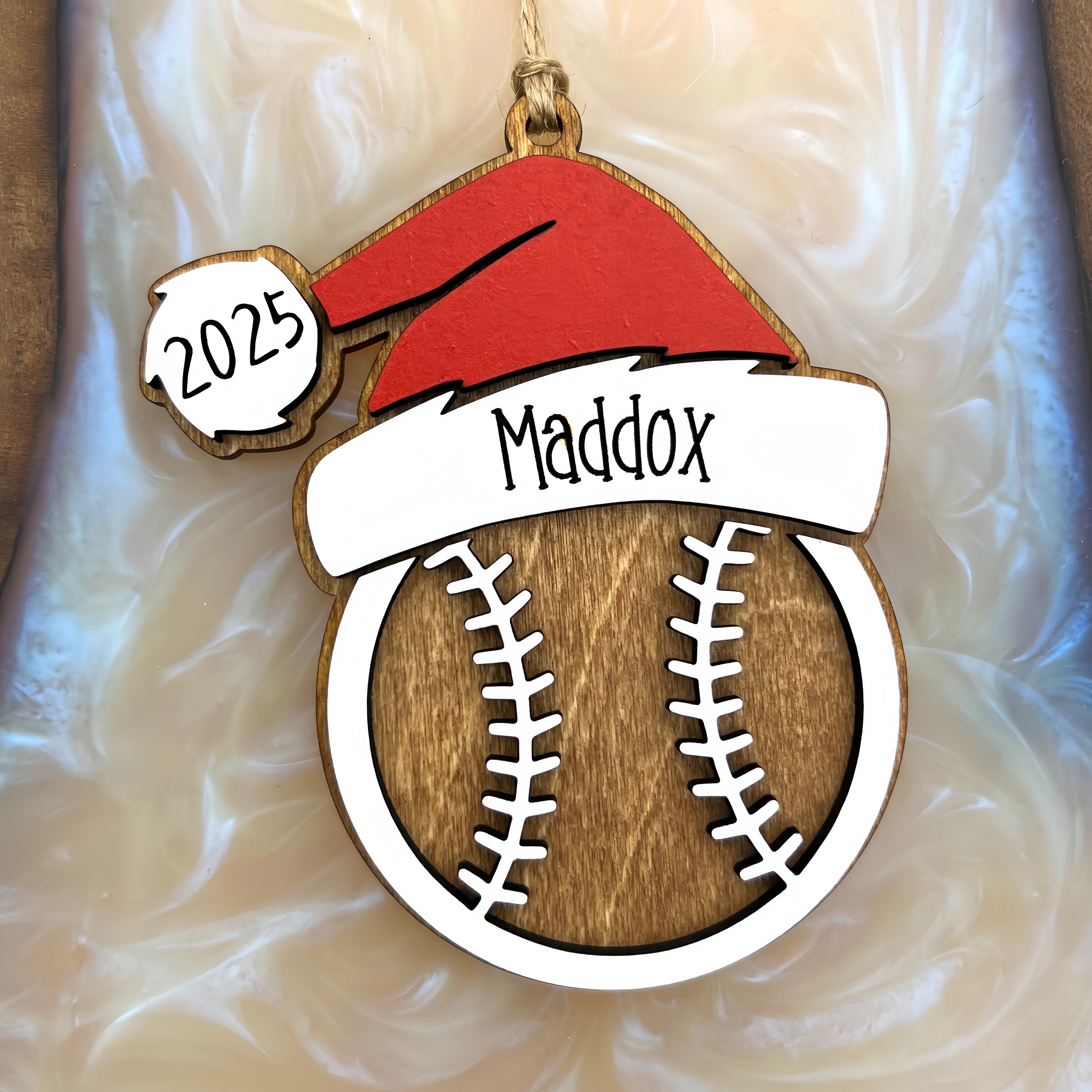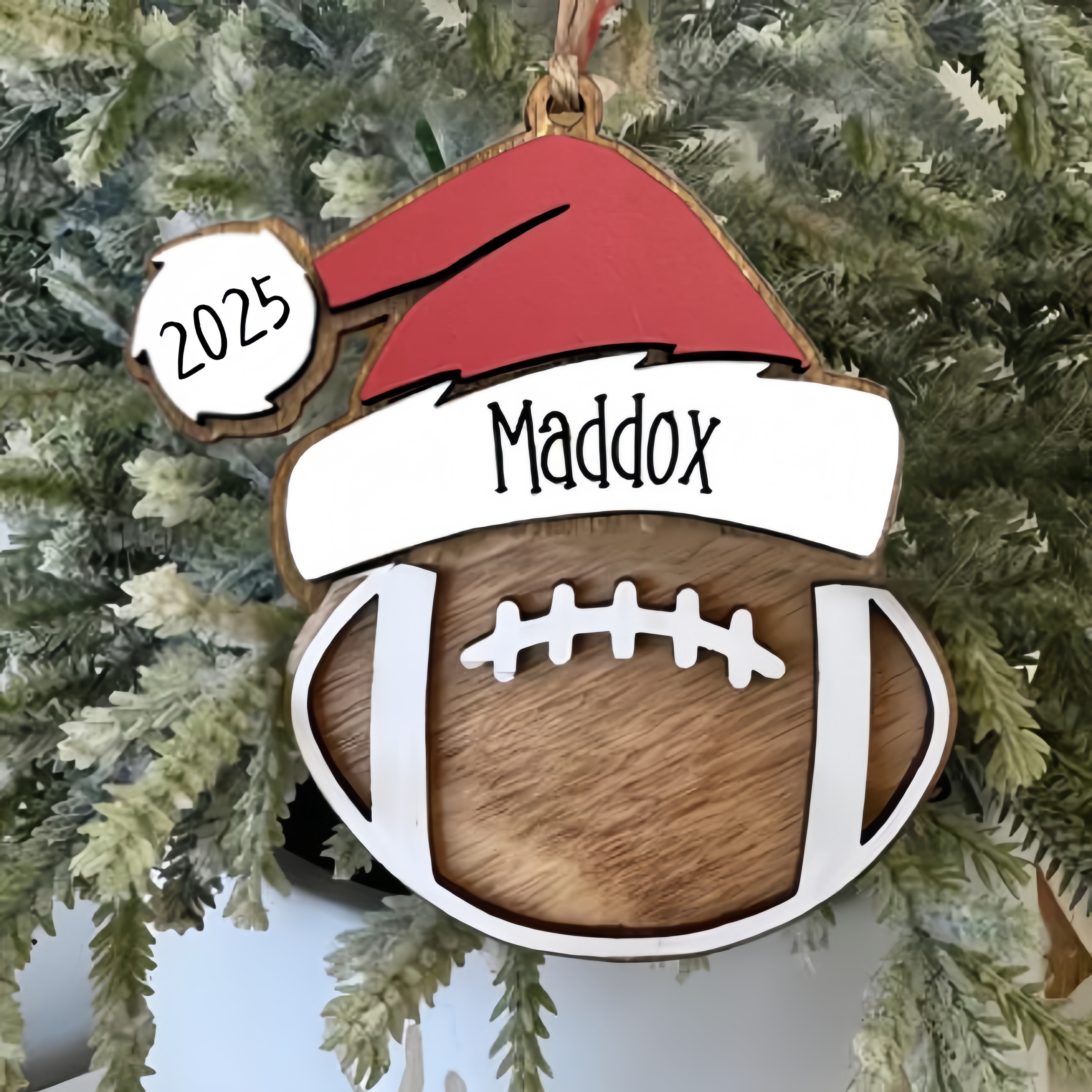 ² - Eye-catching design: The intricate laser-cut details and the personalized hat on the ornament make it a standout piece on any Christmas tree or sports display.