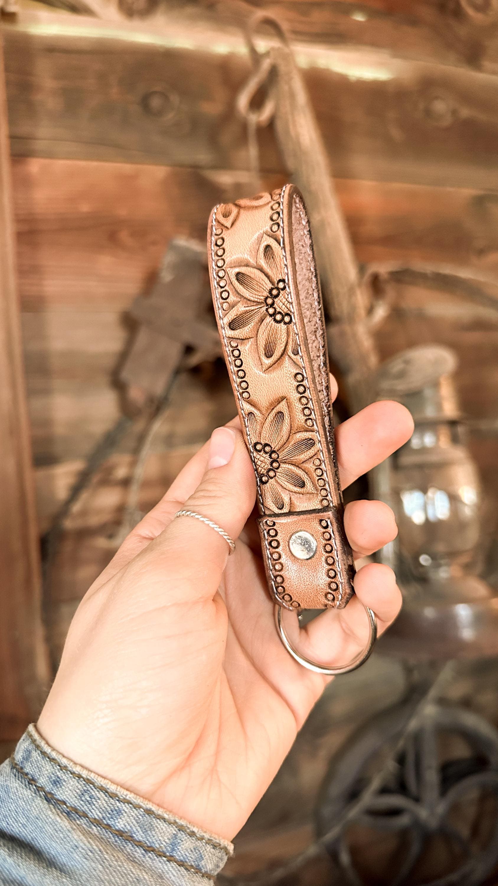 Our customizable stamped leather keychain is the perfect accessory to keep track of your keys. Customize it with your name or favorite phrase!