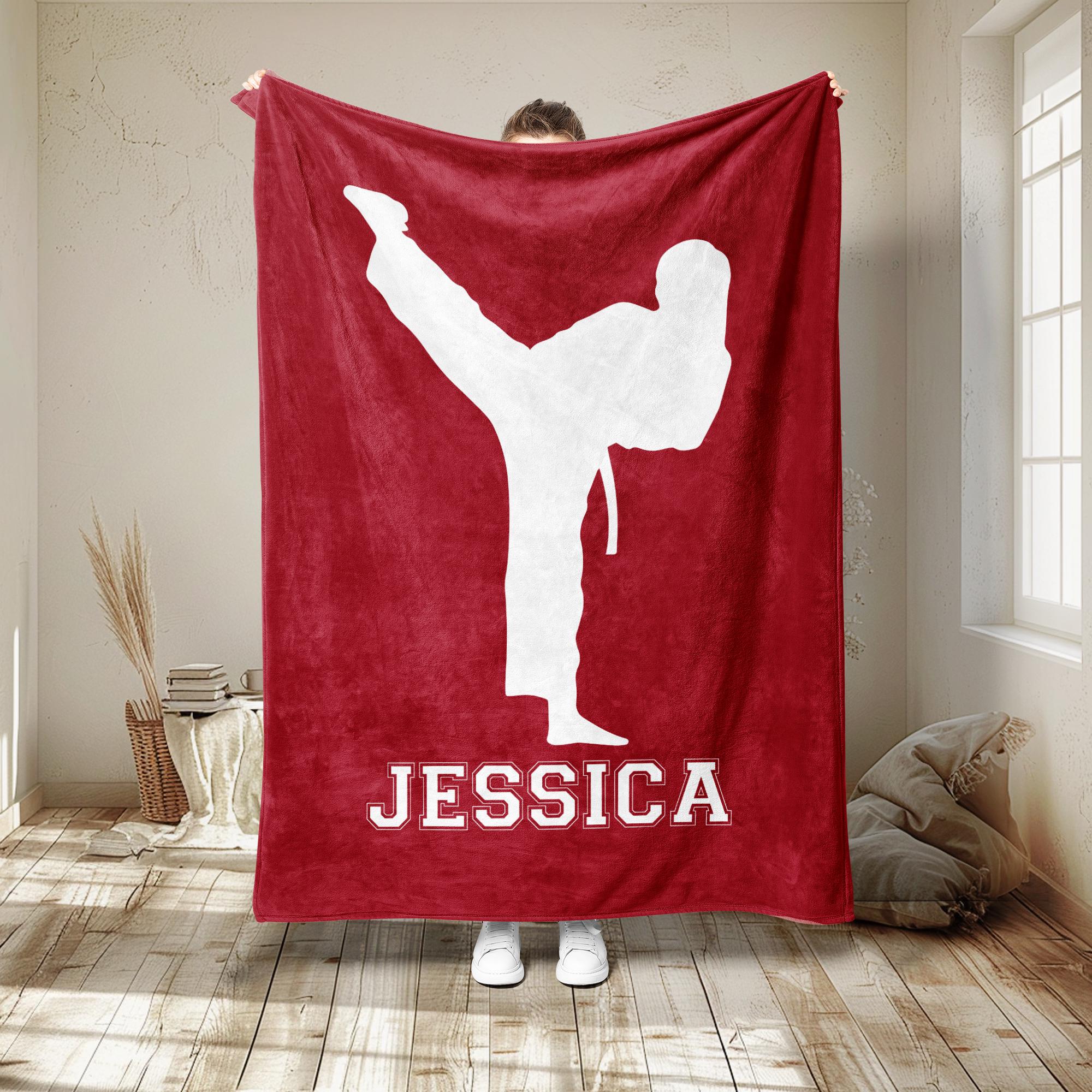 Wrap your loved one in the warmth of their favorite sport with this Personalized Taekwondo Blanket. Featuring dynamic martial arts artwork, it’s a unique tribute to their dedication and spirit.