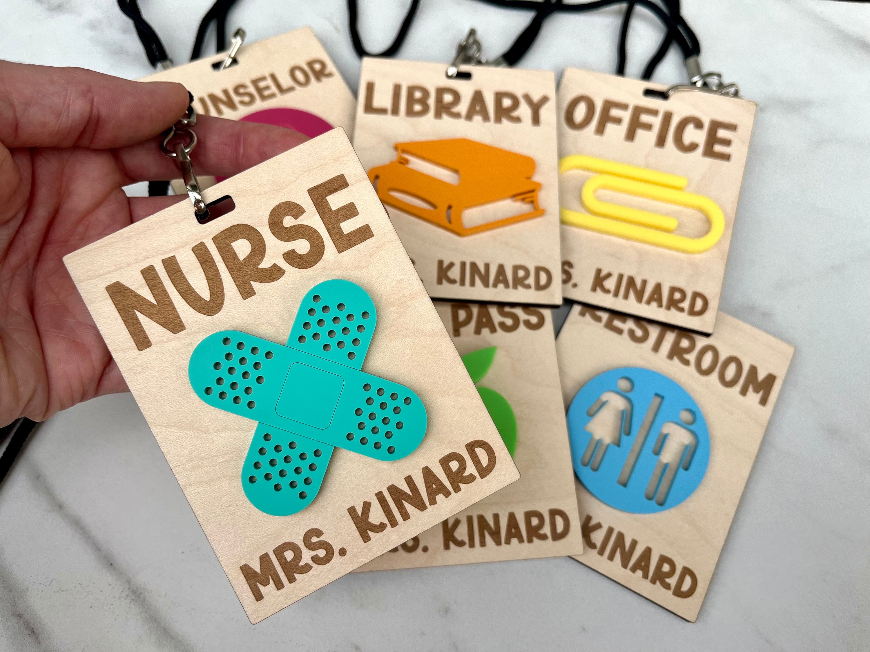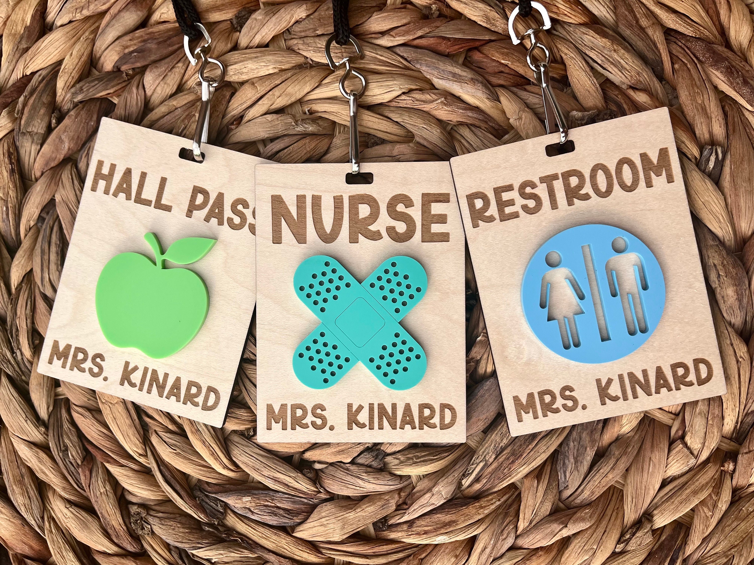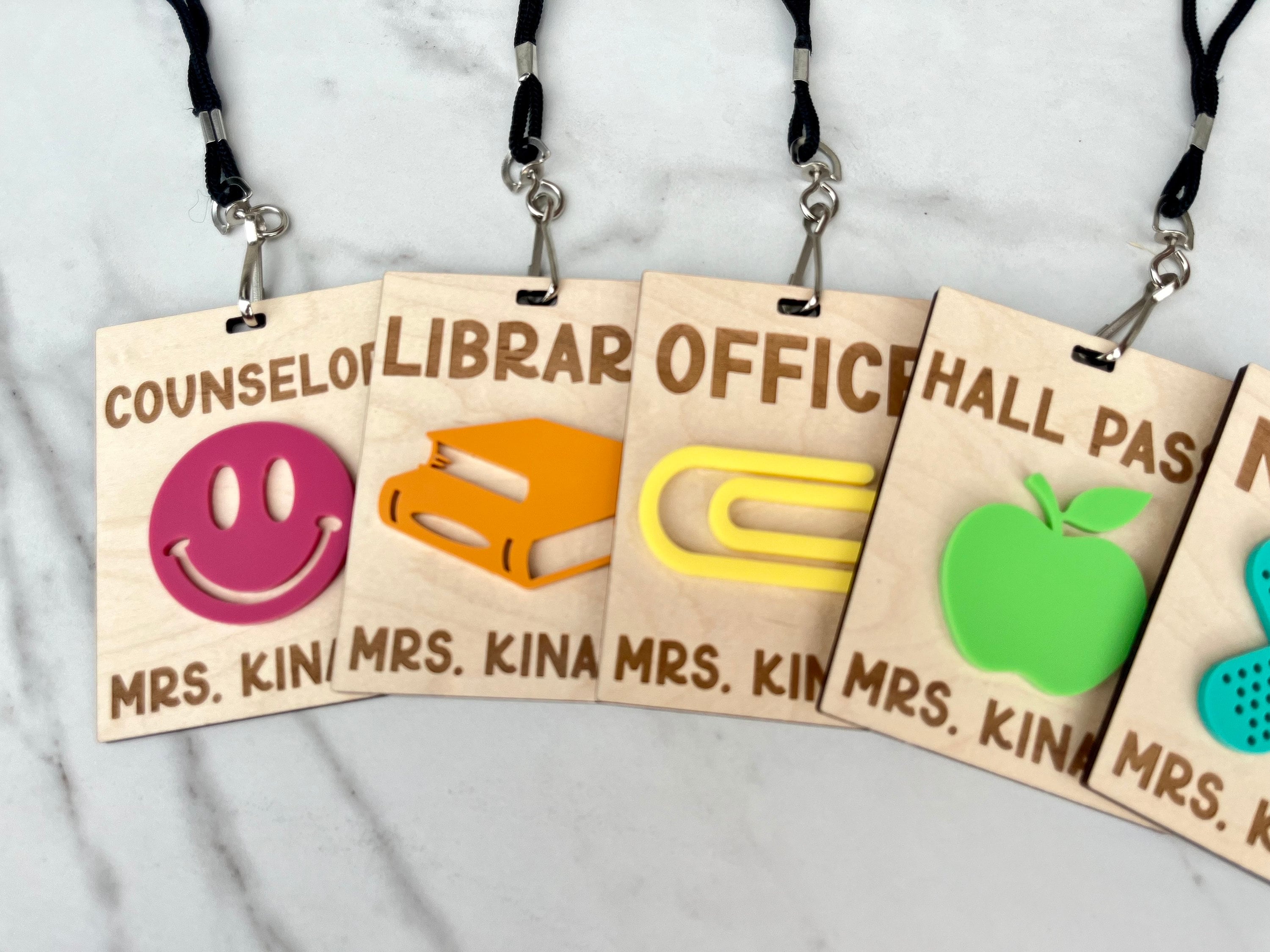 Personalized Wood and Acrylic Hall Pass Lanyards