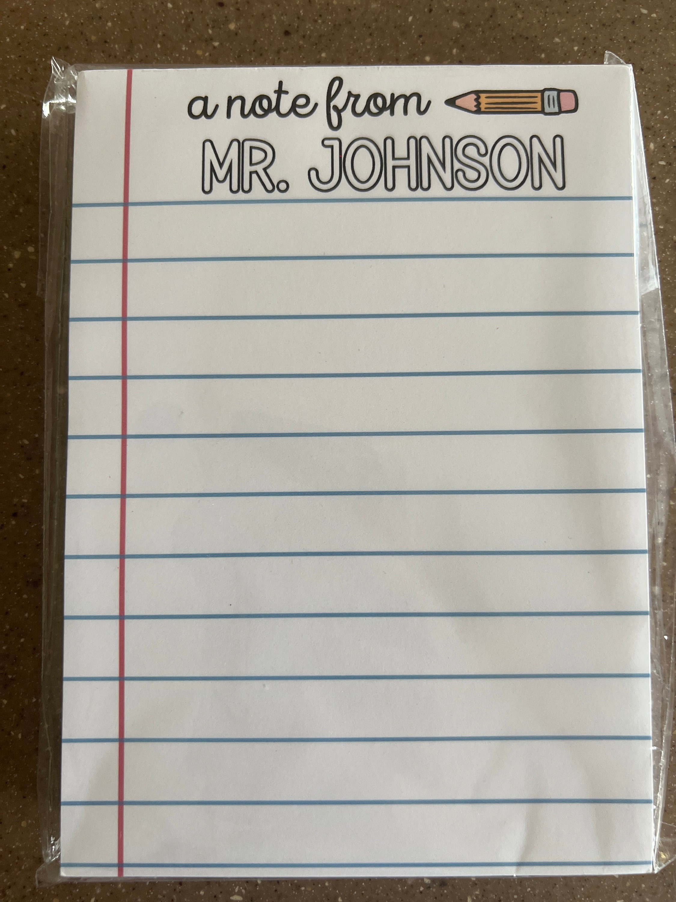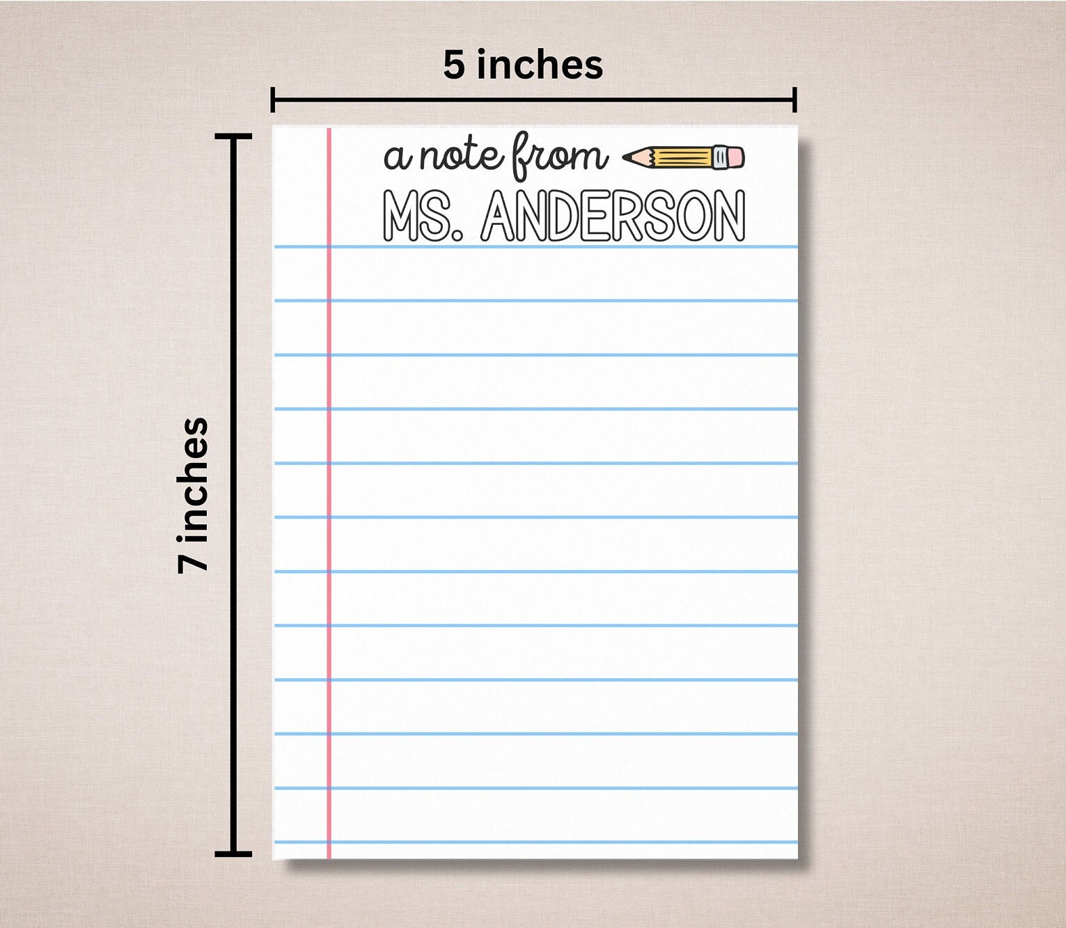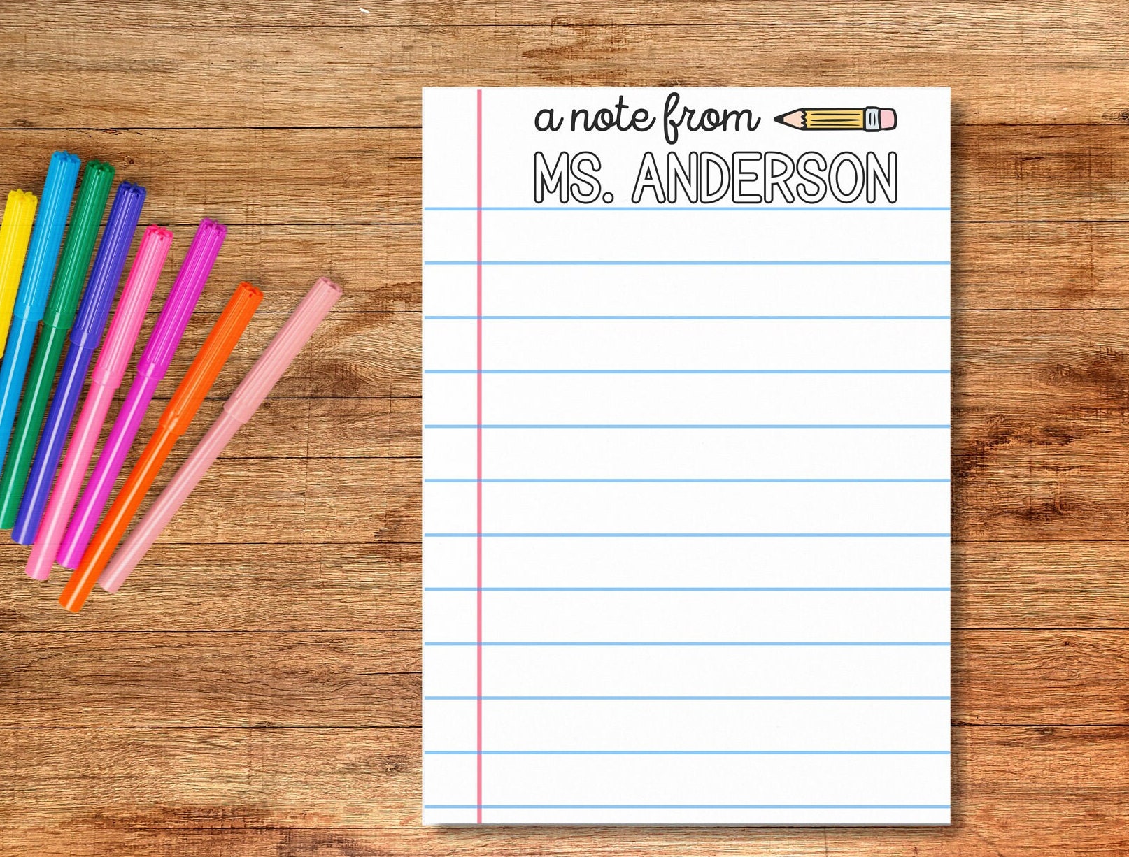 These handmade, personalized teacher notepads make the perfect gift! Personalize this notepad with the name of your choice. This makes a great gift for teachers on any occasion. Get one for yourself or as a teacher appreciation gift for your favorite teacher.