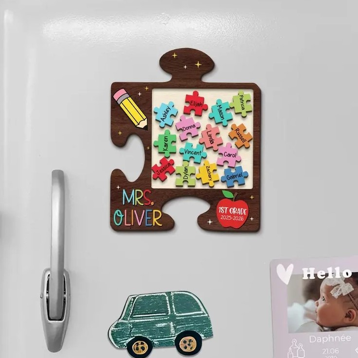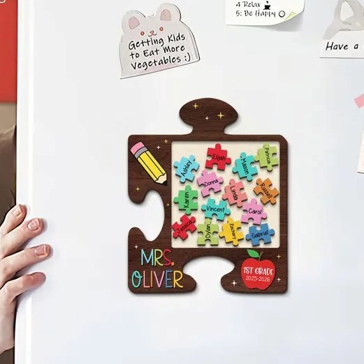 Show appreciation for your favorite teacher with this wooden or acrylic fridge magnet, a charming addition to their classroom or teacher’s lounge. Perfect for holding up notes, reminders, or student artwork, this magnet is both functional and meaningful. Whether placed on a fridge, a whiteboard, or a filing cabinet, it’s a daily reminder of the impact they make. A thoughtful Teacher Appreciation Week, end-of-year, or just-because gift, this little keepsake will bring a smile to any educator’s face!