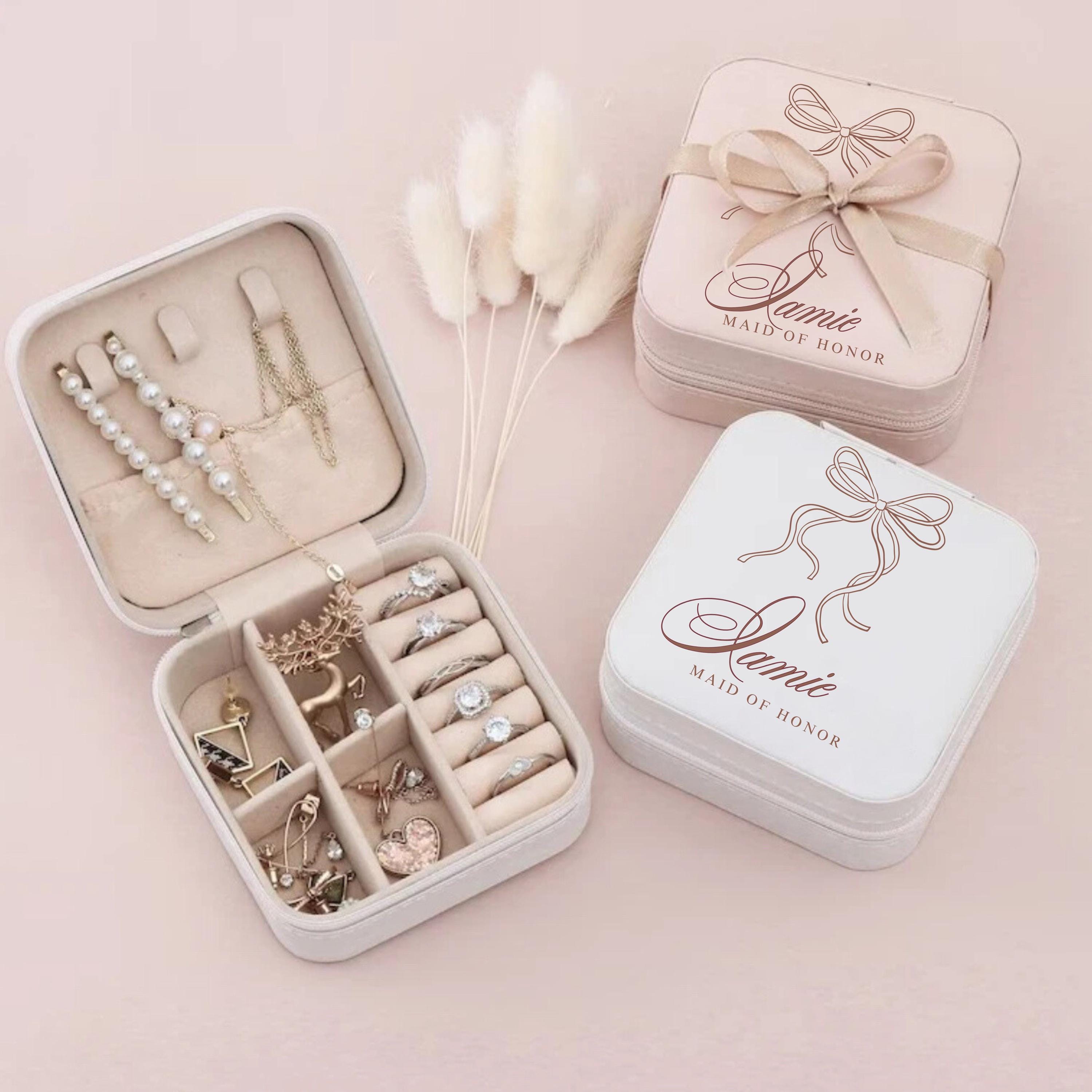 Personalized travel jewelry box, small square earring organizer, Custom bridesmaid gifts box for Friend sister Maid of Honor Mother Of Bride