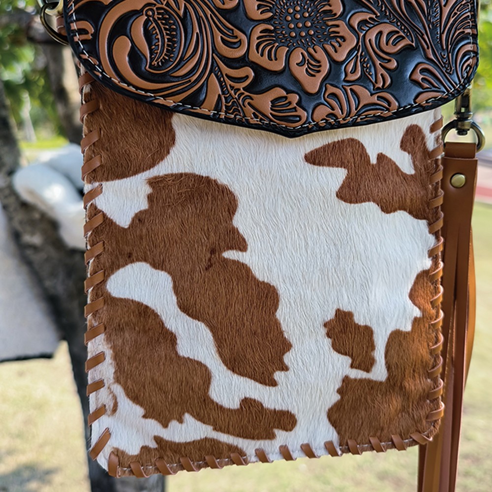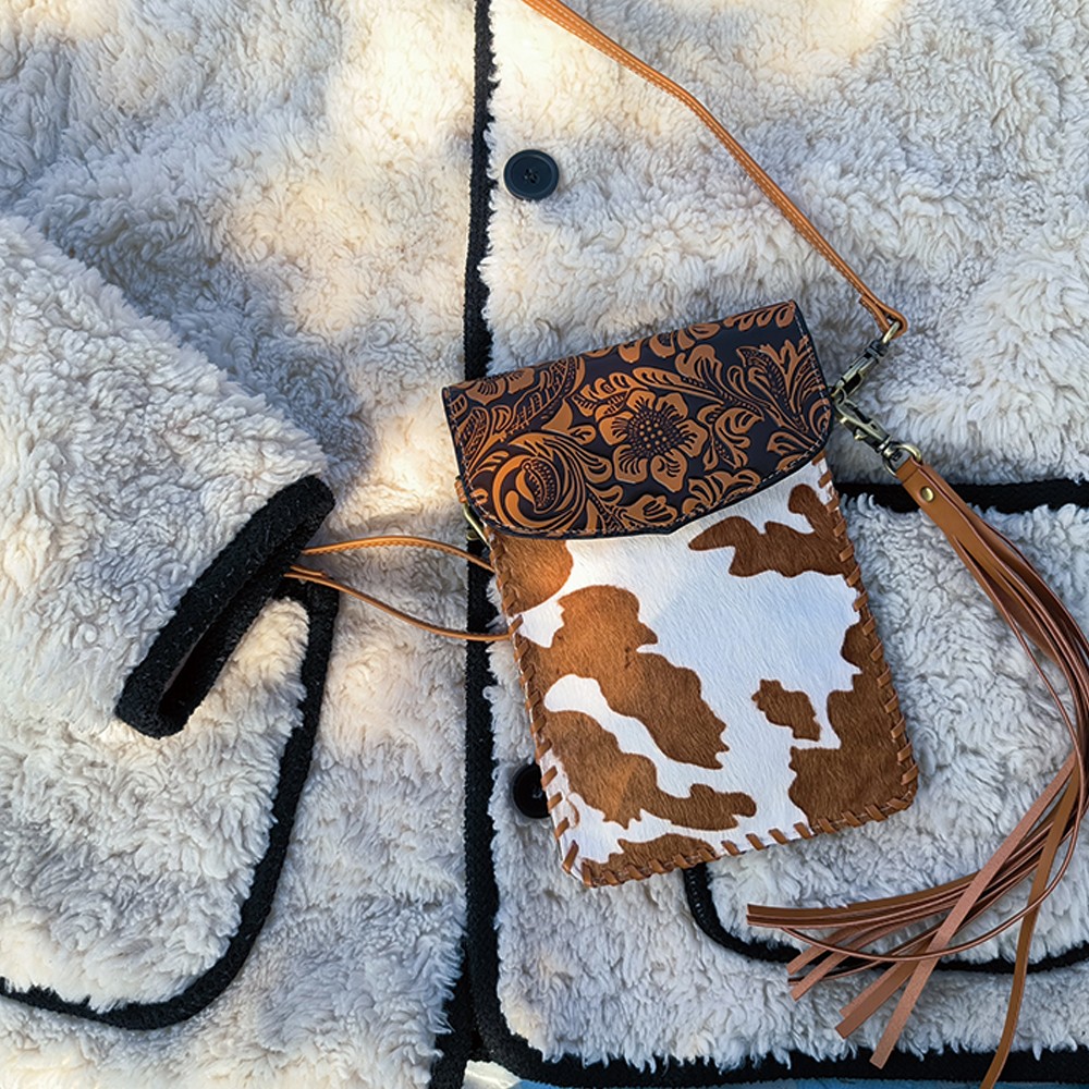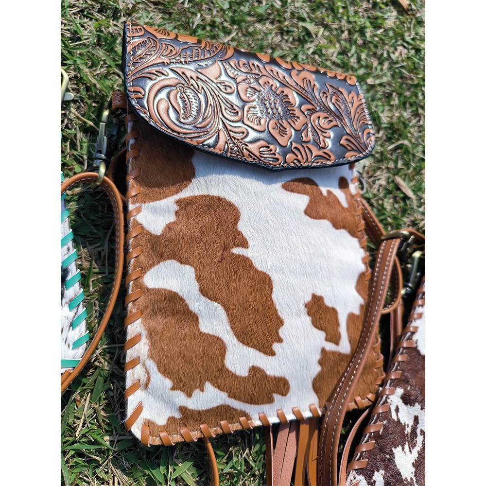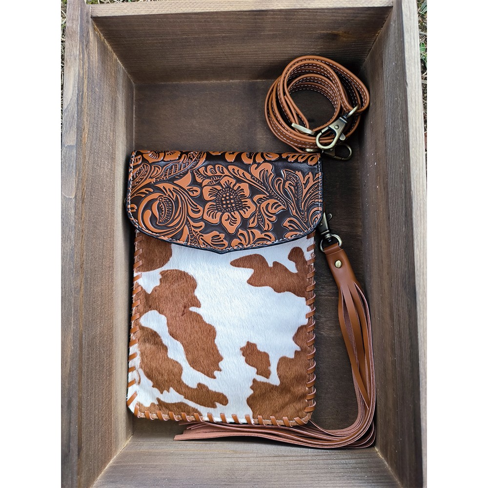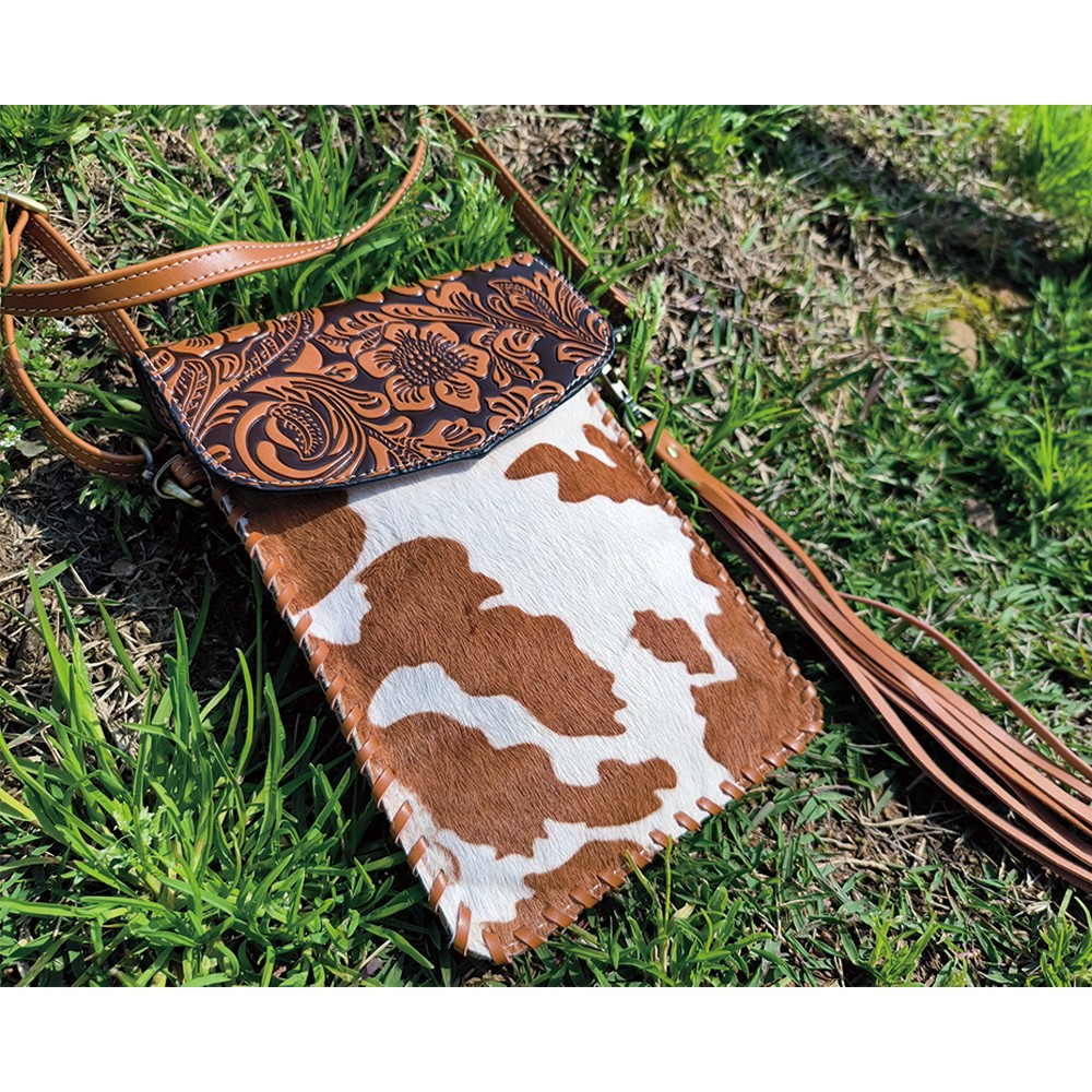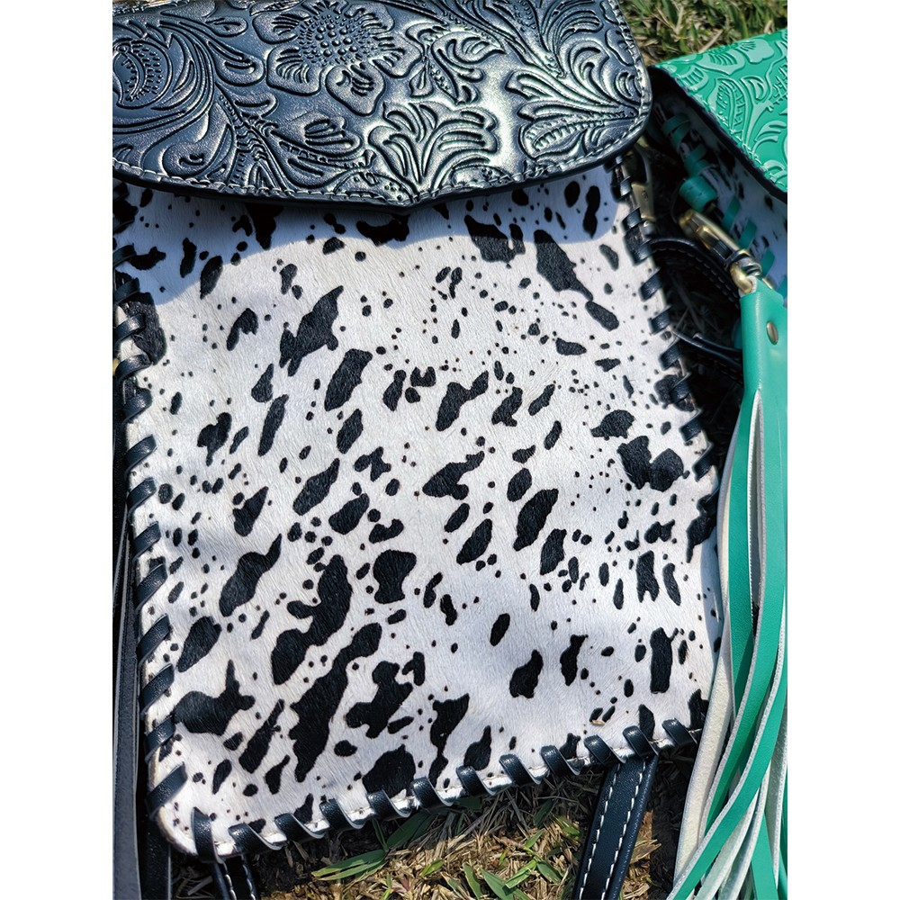 Every purse will be one of a kind as each purse contains a unique cowhide pattern.