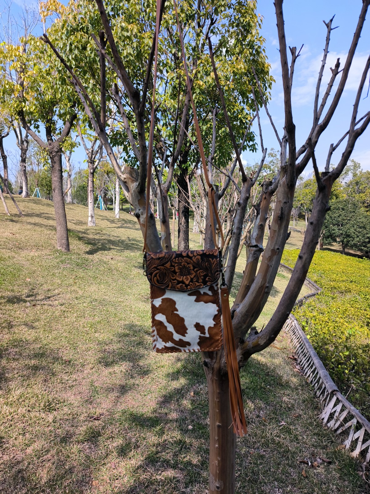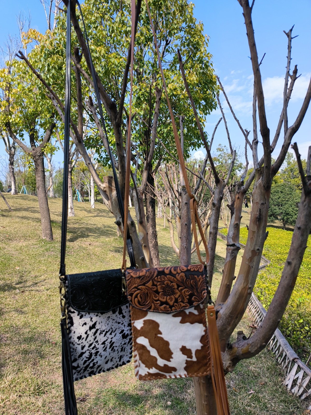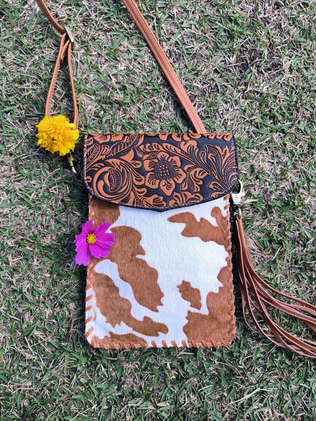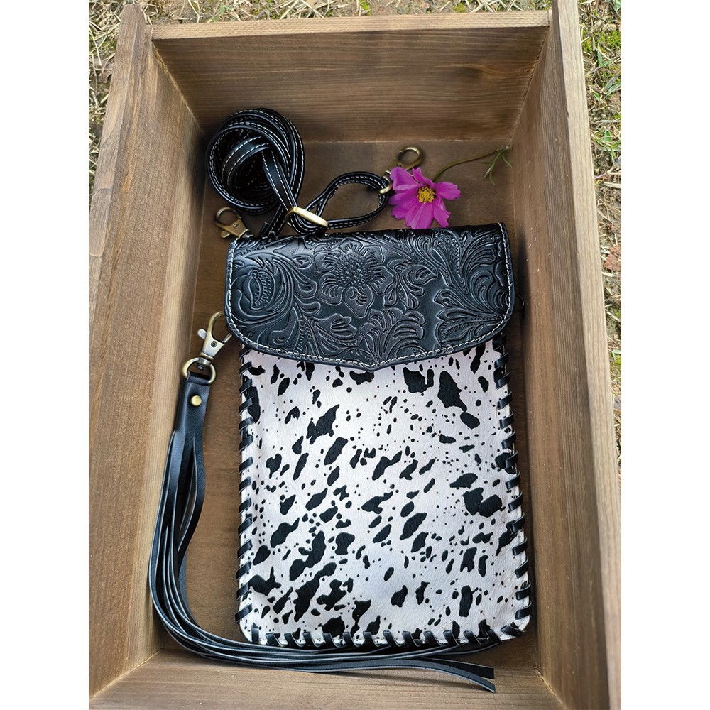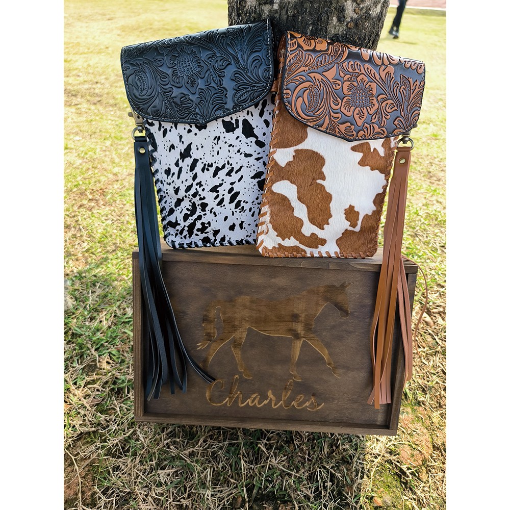 Every purse will be one of a kind as each purse contains a unique cowhide pattern.